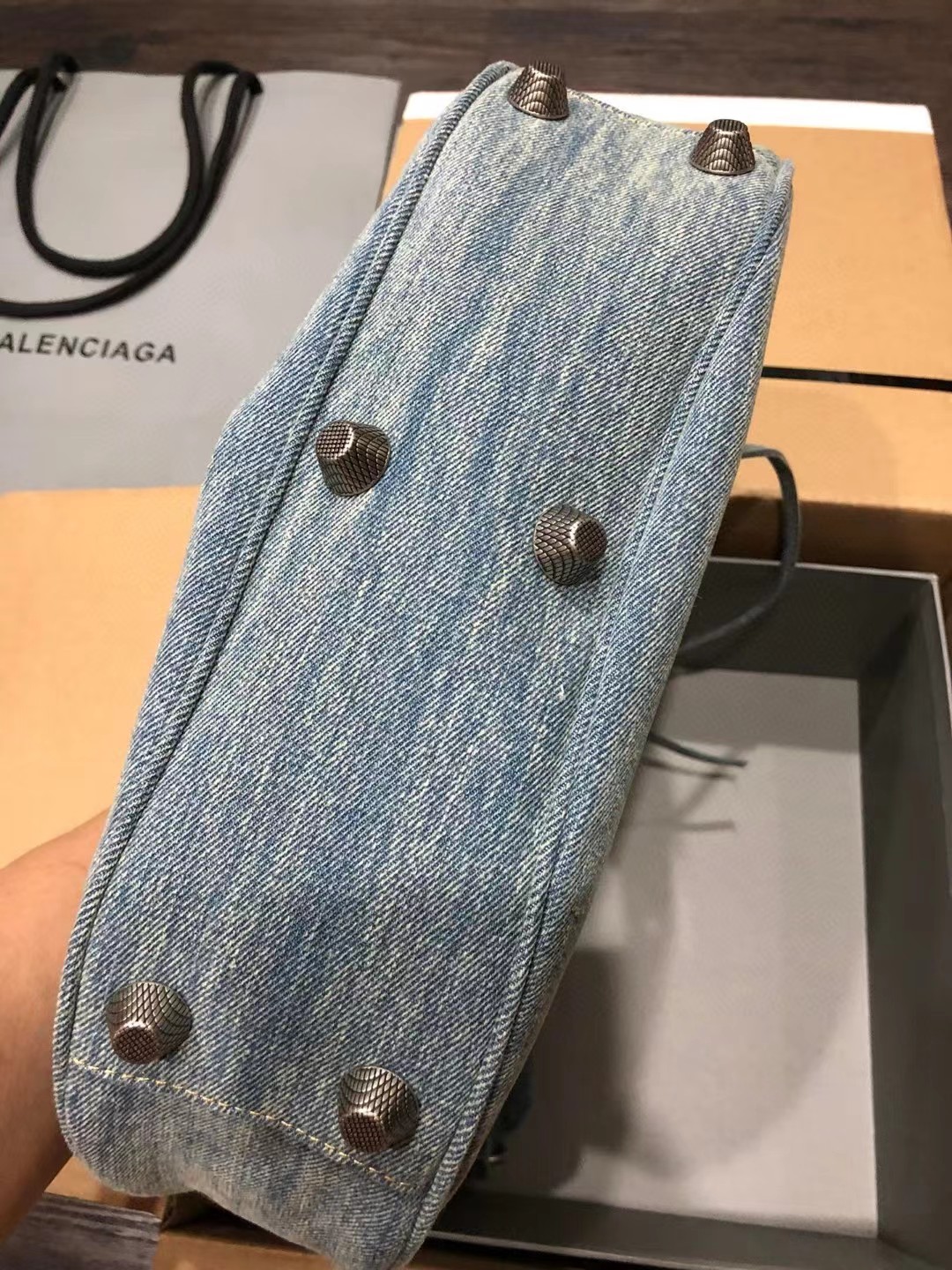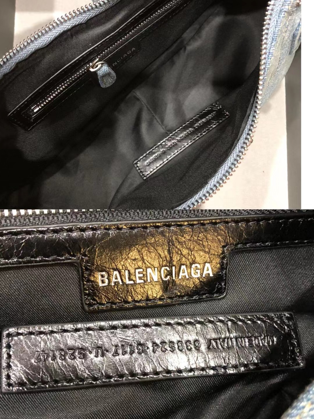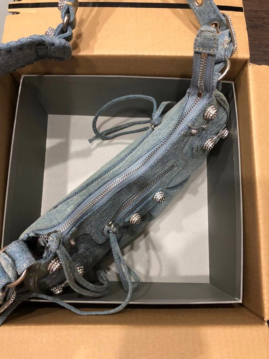 B家Le Cagole S做旧银配件心形化妆镜 机车月牙包单肩斜挎手提包 女款 牛仔