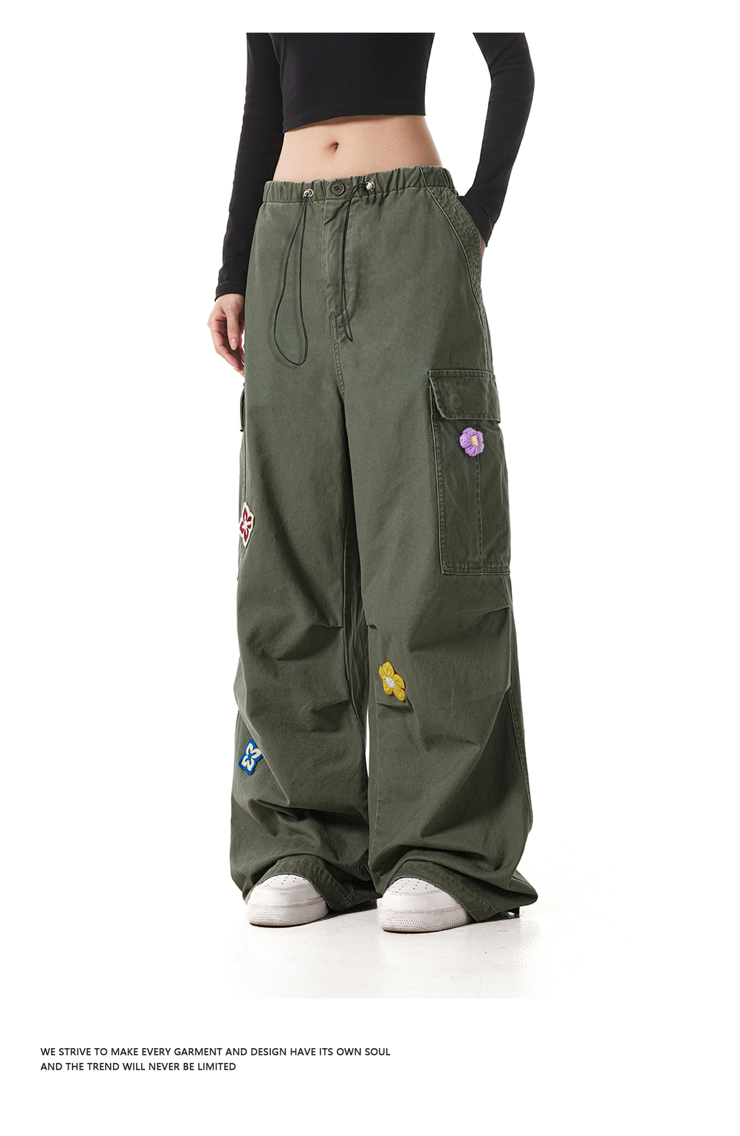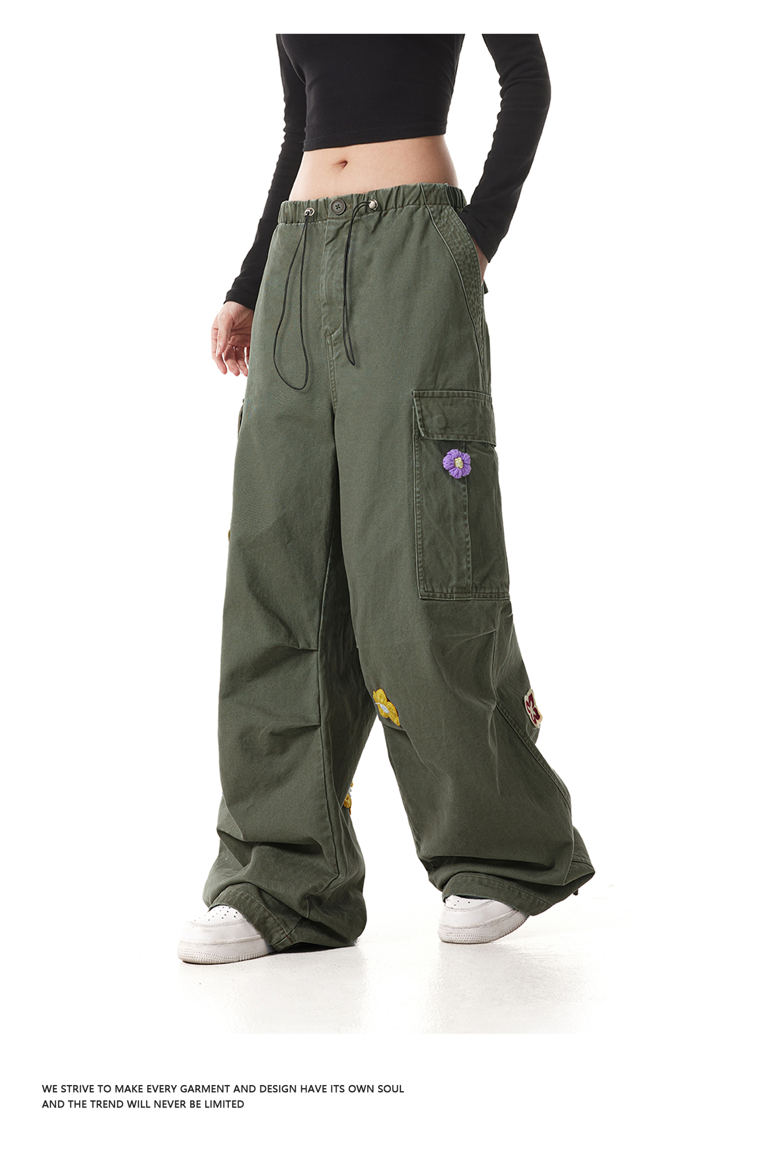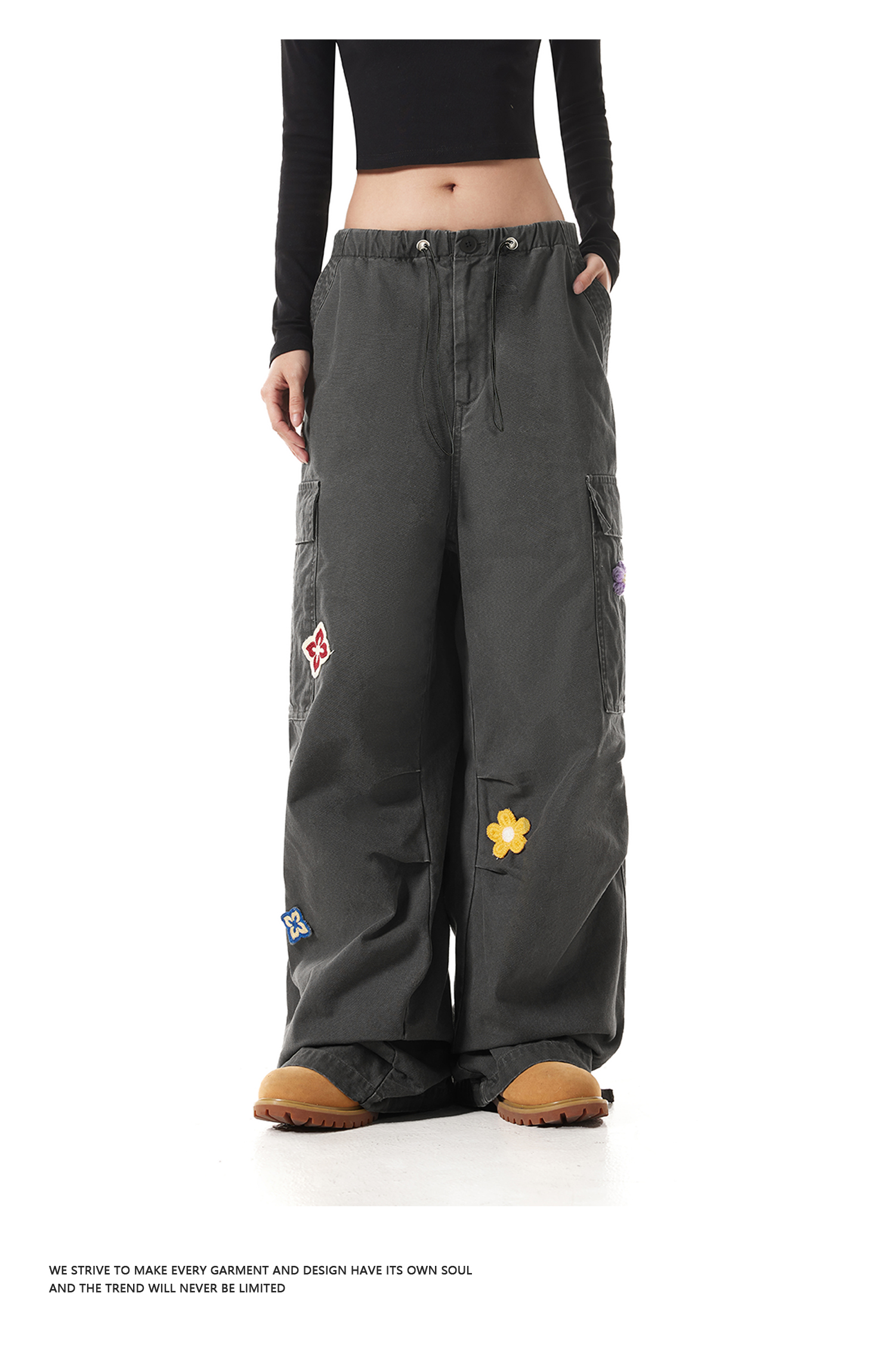 【限时7折】FDR官方店 美式菱形兰花工装裤男女情侣宽松休闲裤抽绳直筒长裤子