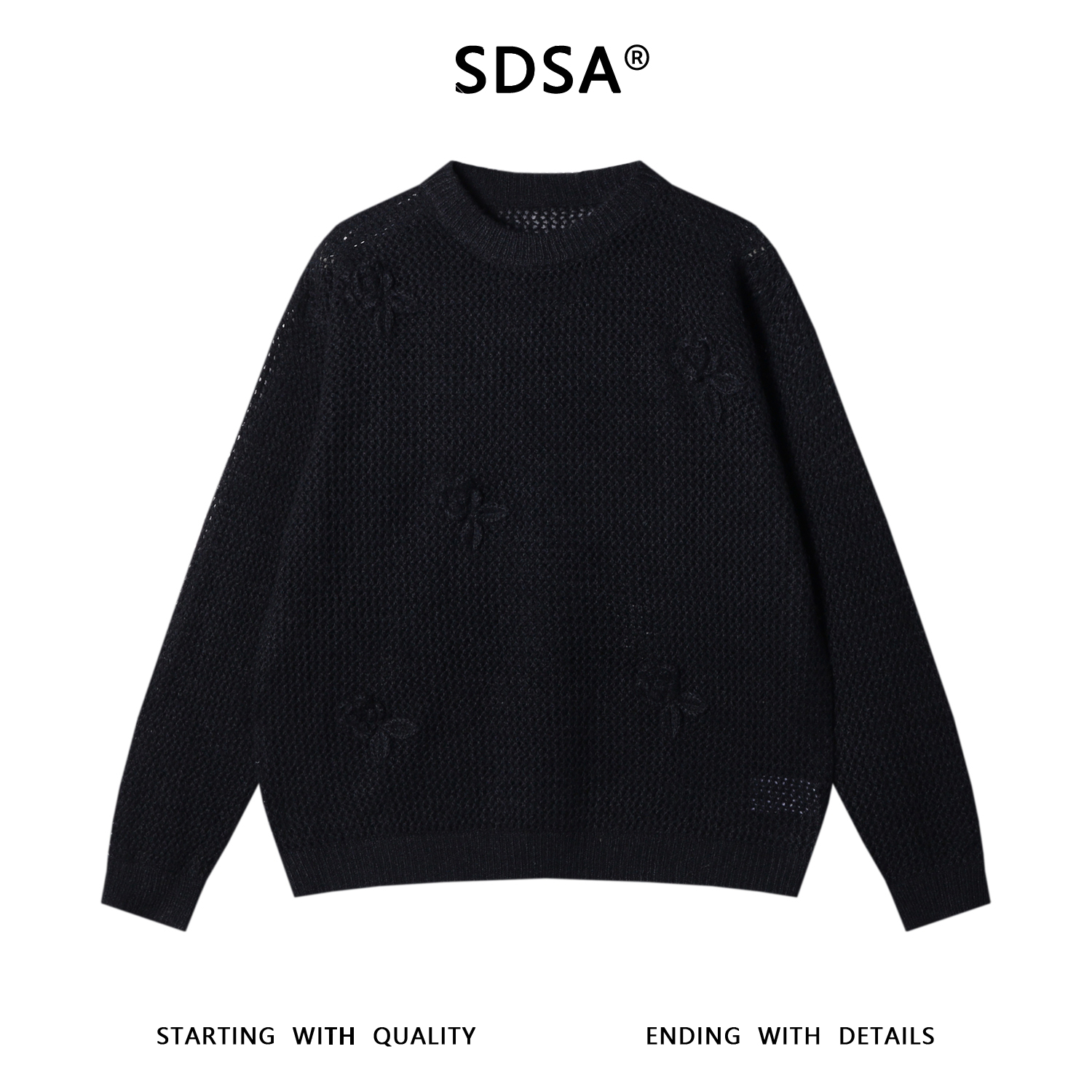 42543SDSA男士秋冬新款痞帅男装潮牌纯色立体针织花朵圆领毛衣百搭时尚