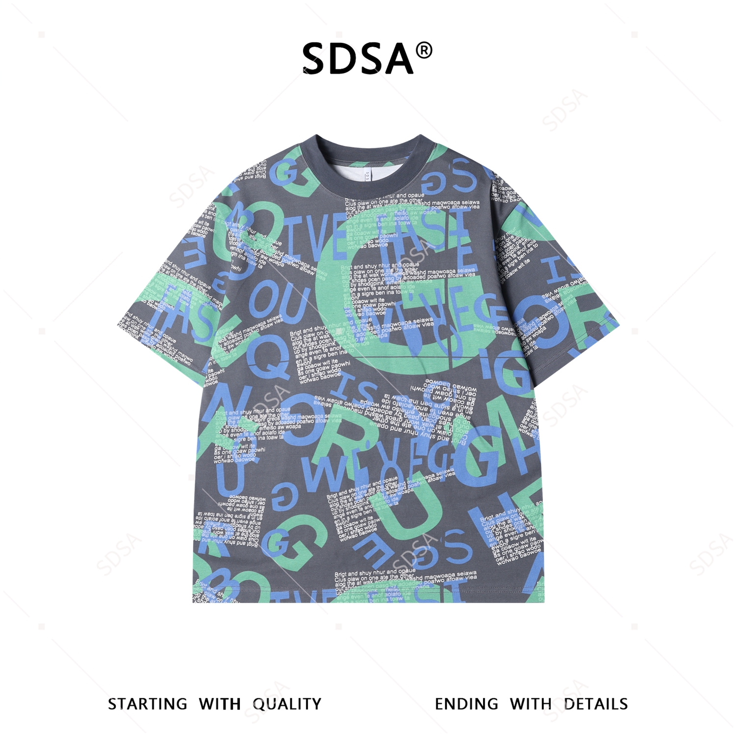 26T210SDSA男装2026新款高贵轻奢美式时尚满印字母设计圆领短袖T恤百搭