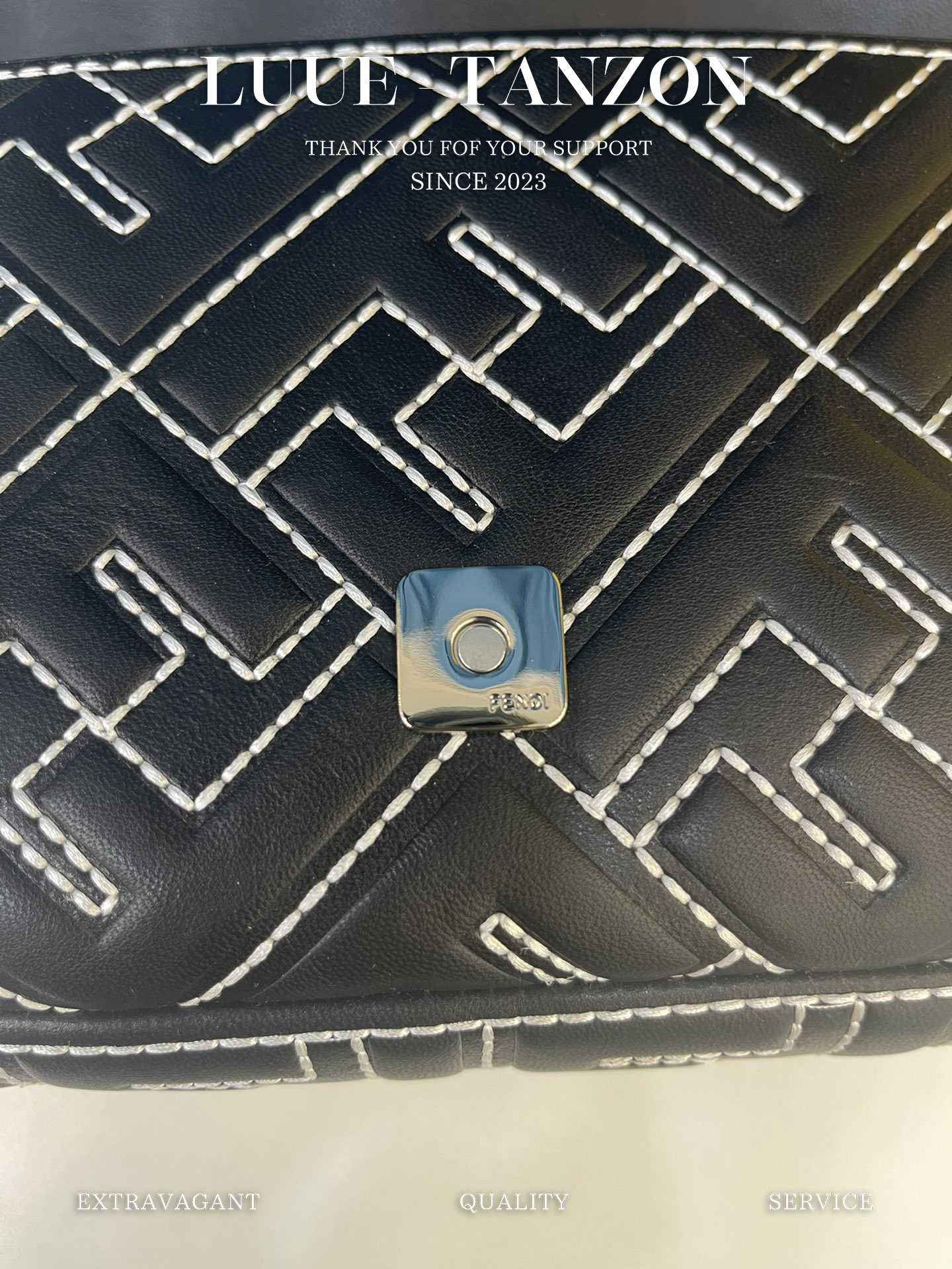 即将出货,一眼倾心,从此相随,IT girl的心头爱,三维纹理革面,绣线双F 点缀以闪耀FF银色磁扣,含蓄中不失俏皮和性感,翻盖斜挎手提包,压印全身 F设计,搭配可拆卸皮肩带及手提带。