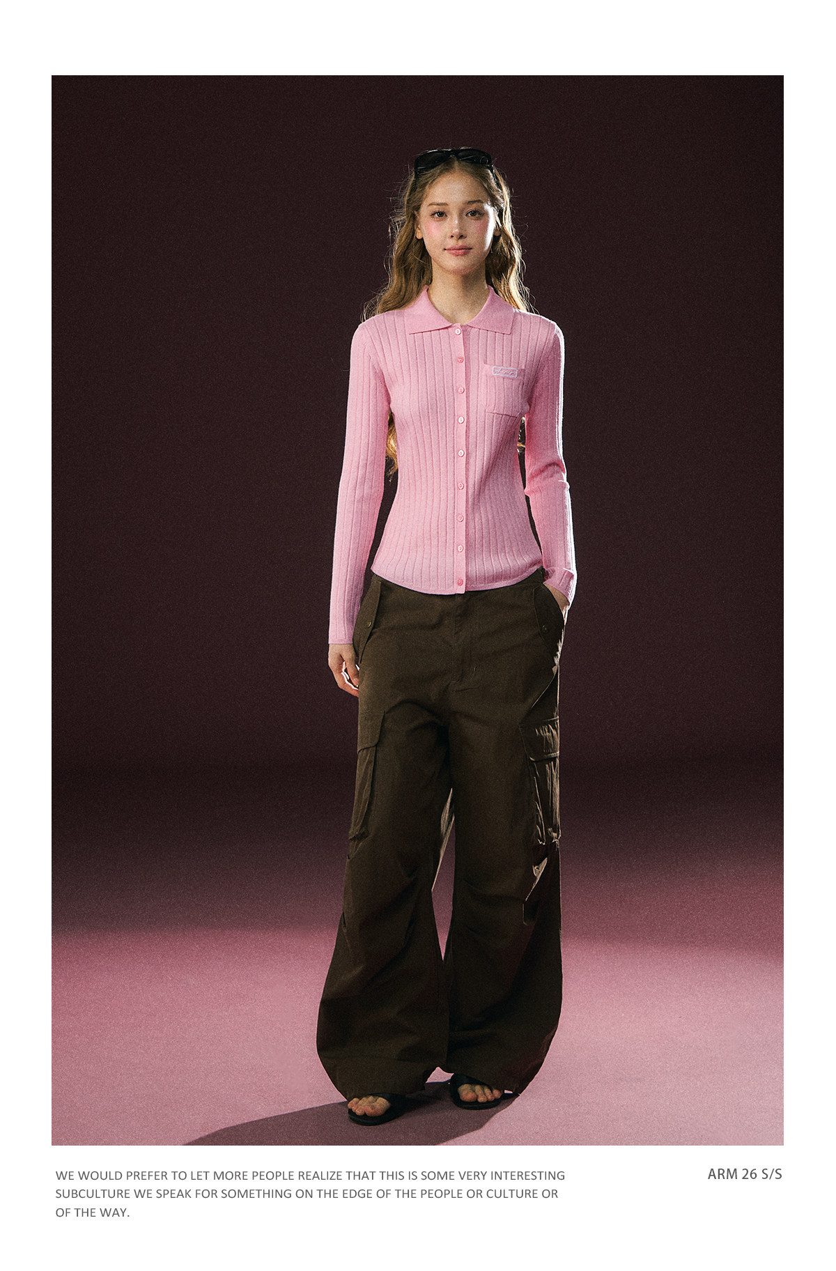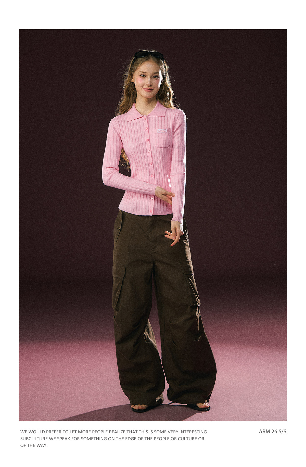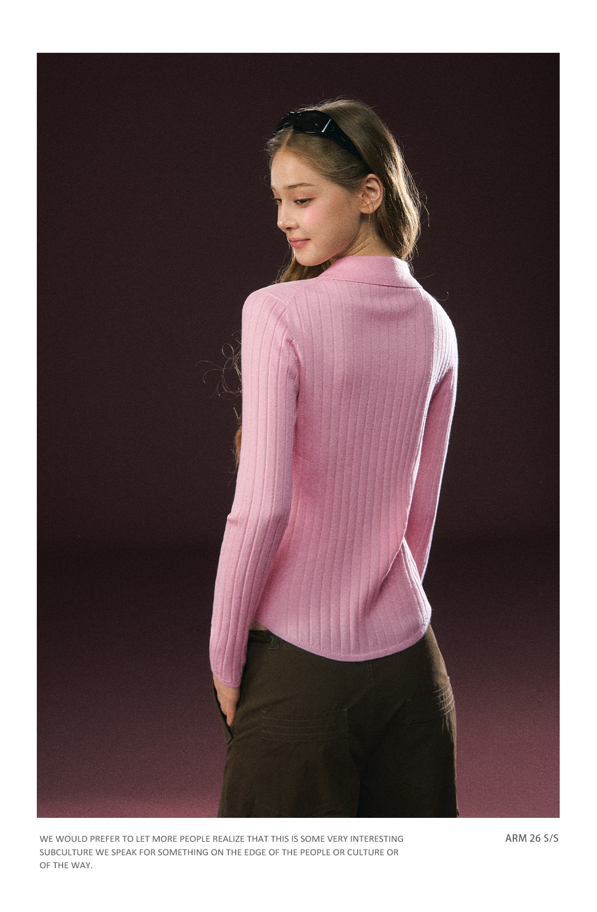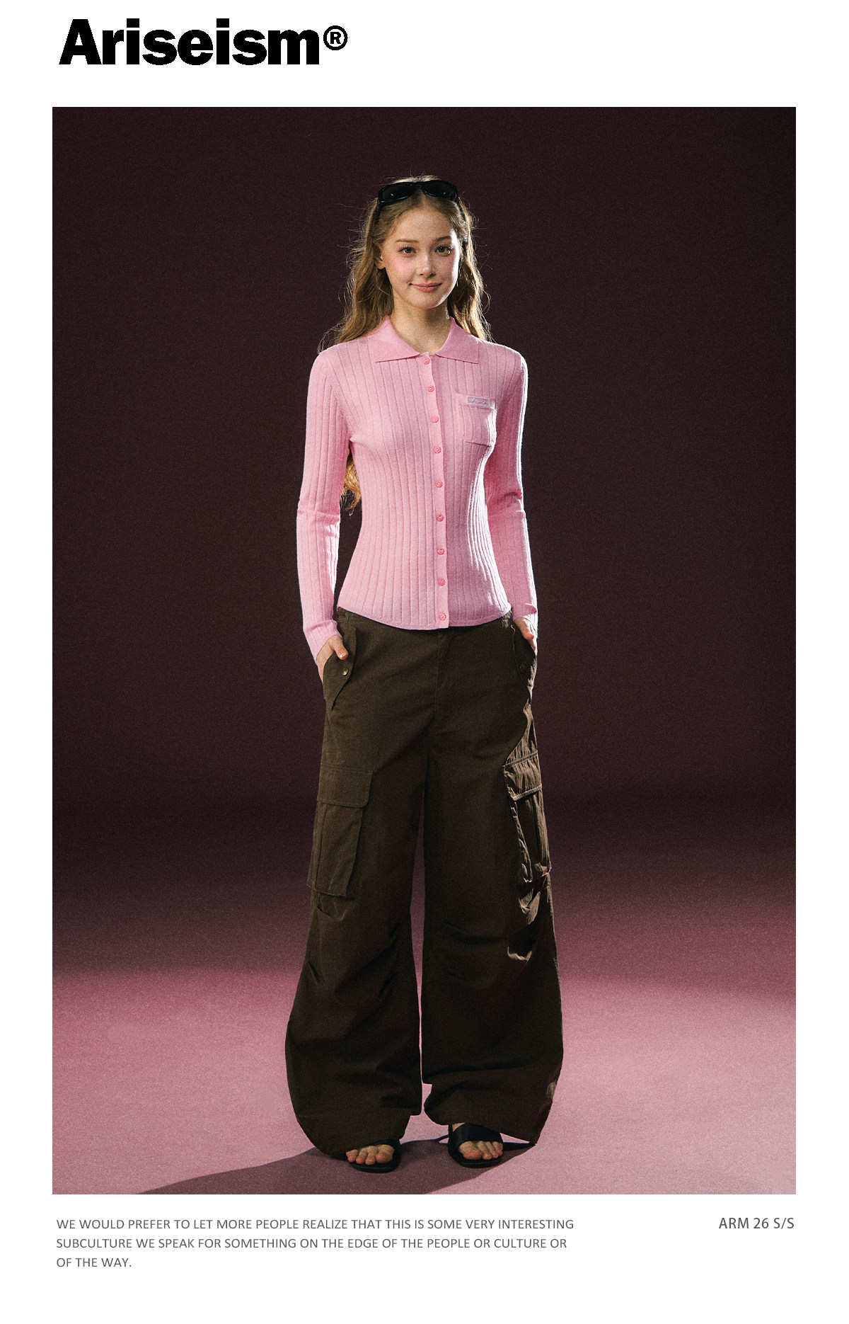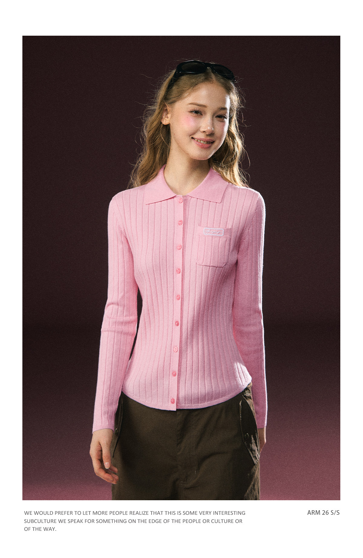Ariseism 美式复古粉色翻领长袖针织上衣女春季新款