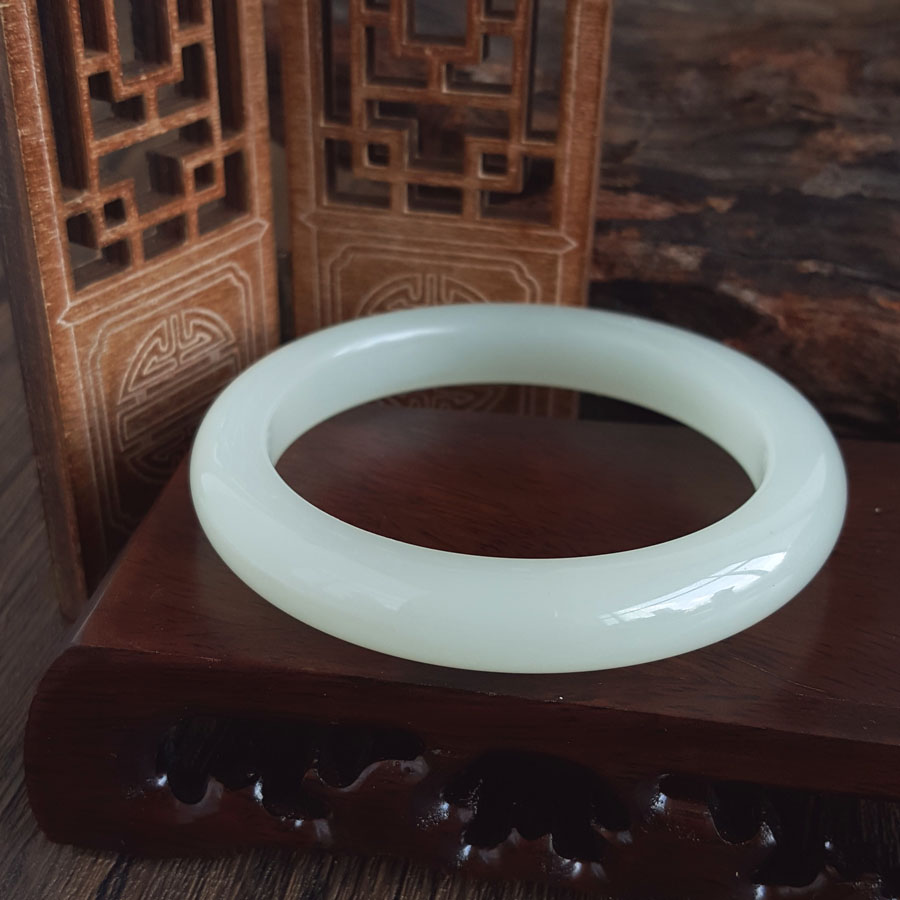 【天然正品】天然青海料细腻无杂裂油润度佳59号和田玉手镯59号(皆取最大值)女士现售价:2680!200625NJM02