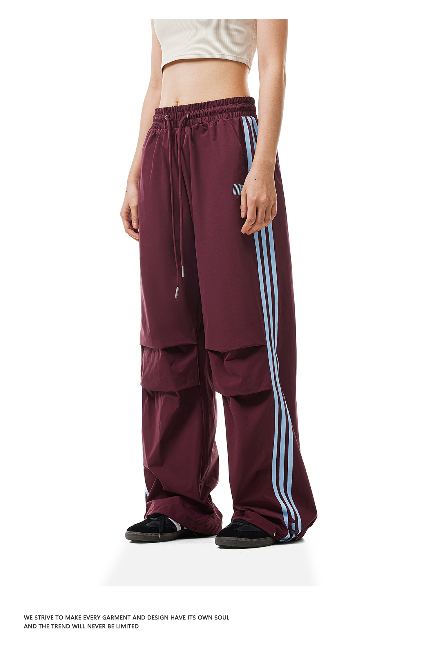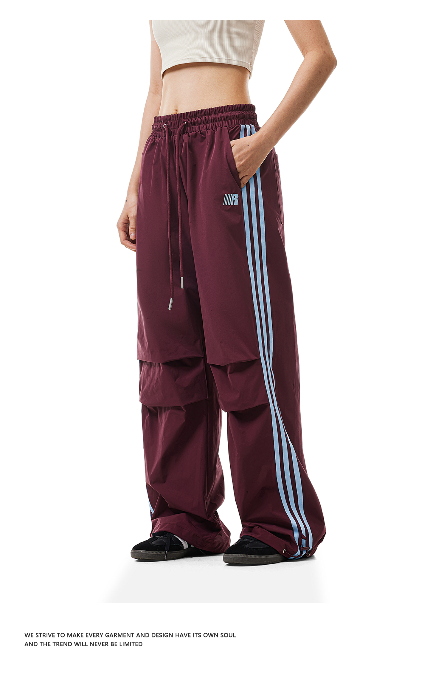 FDR官方店 美式复古织带撞色R字伞兵裤男女春季运动宽松直筒长裤