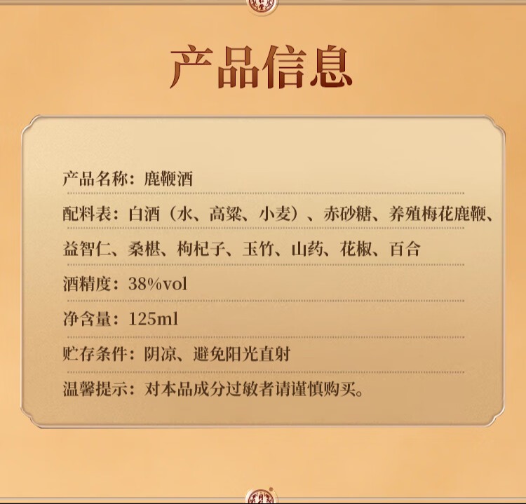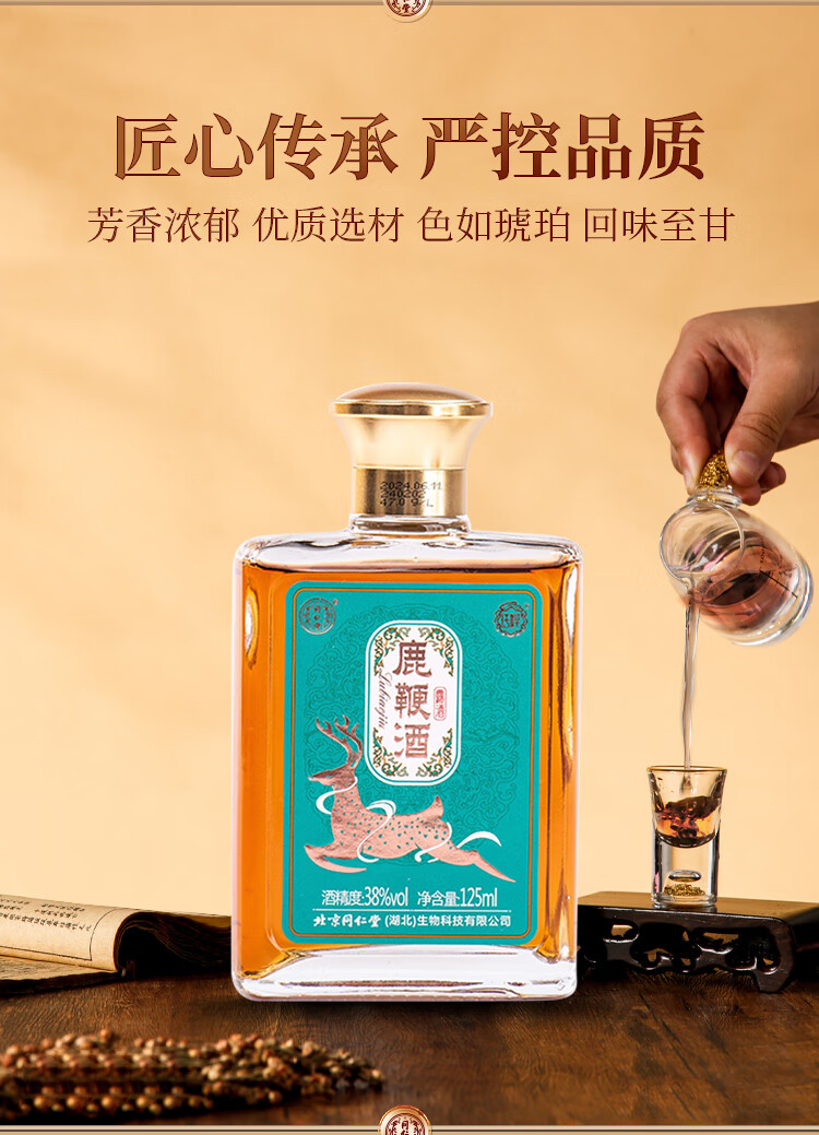 同仁堂鹿鞭酒男性养殖梅花鹿鞭鹿鞭酒38度125ml* 6瓶/24瓶 【滋补佳品鹿鞭酒香】