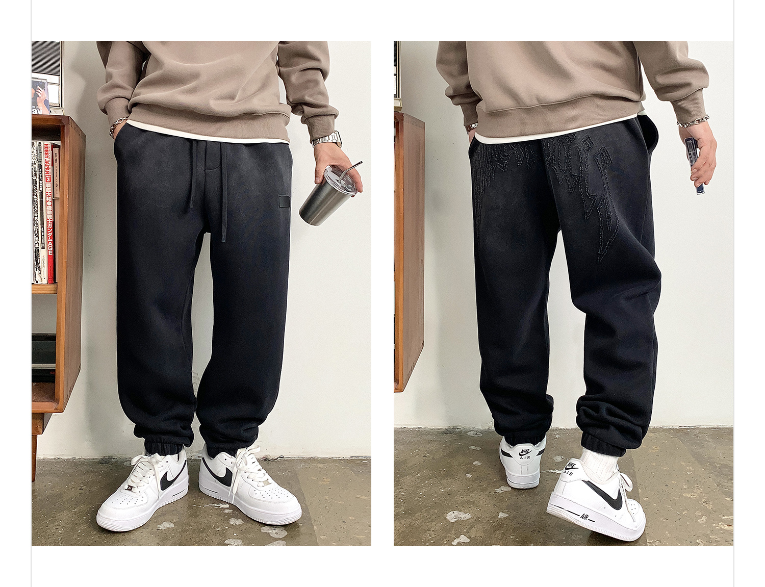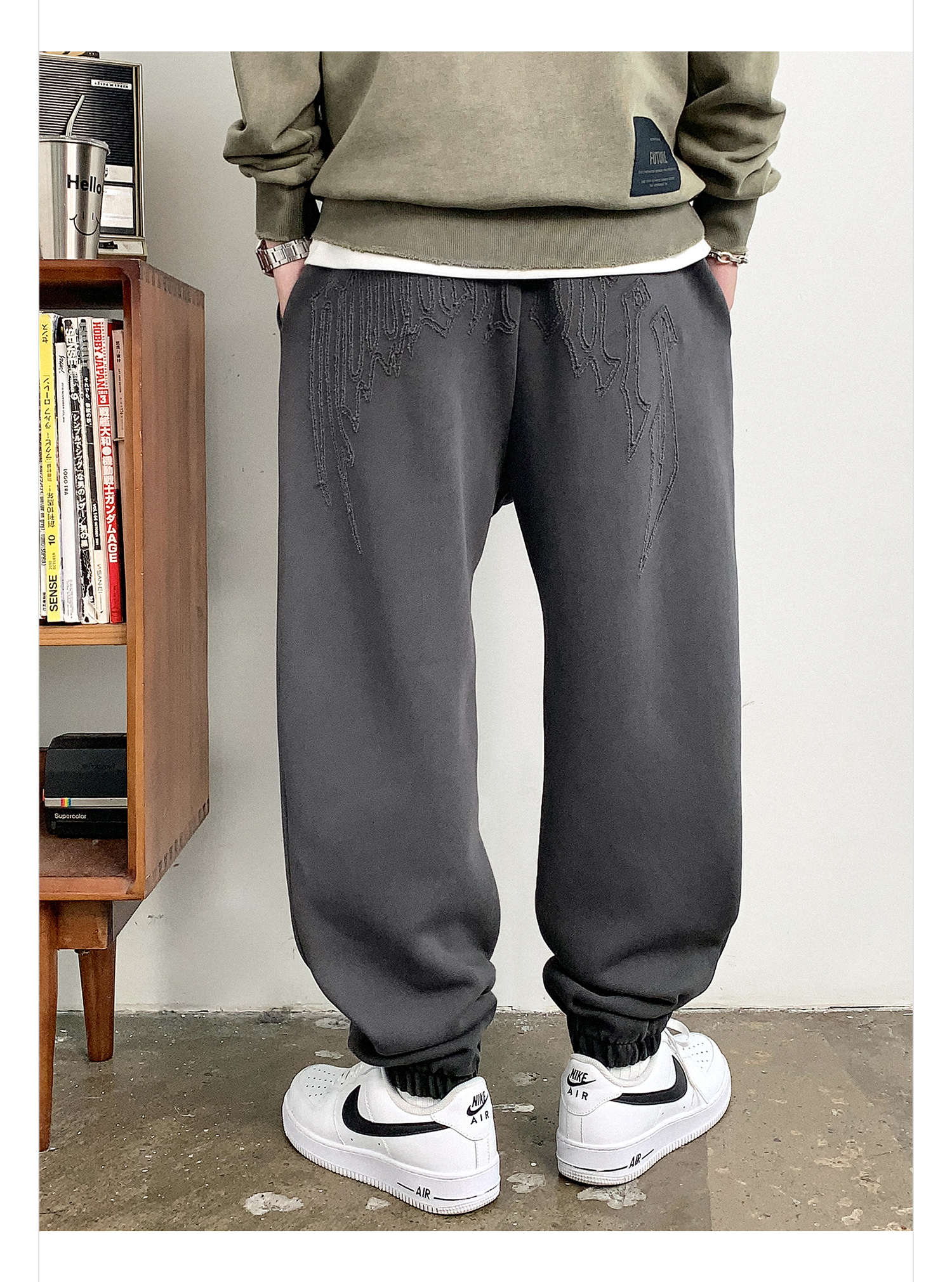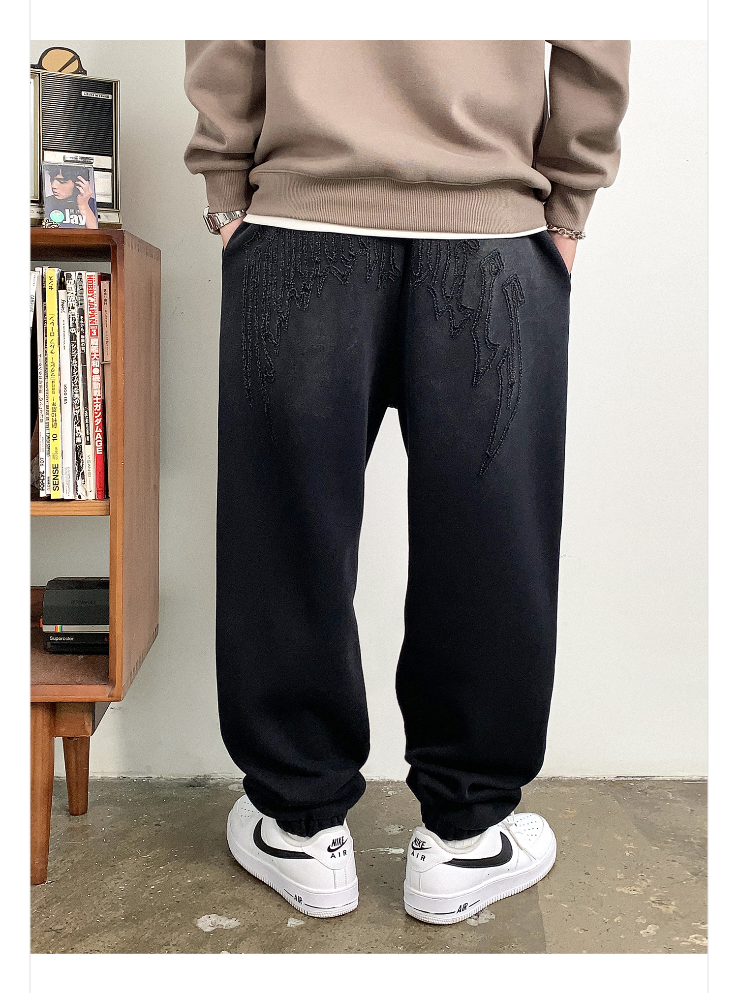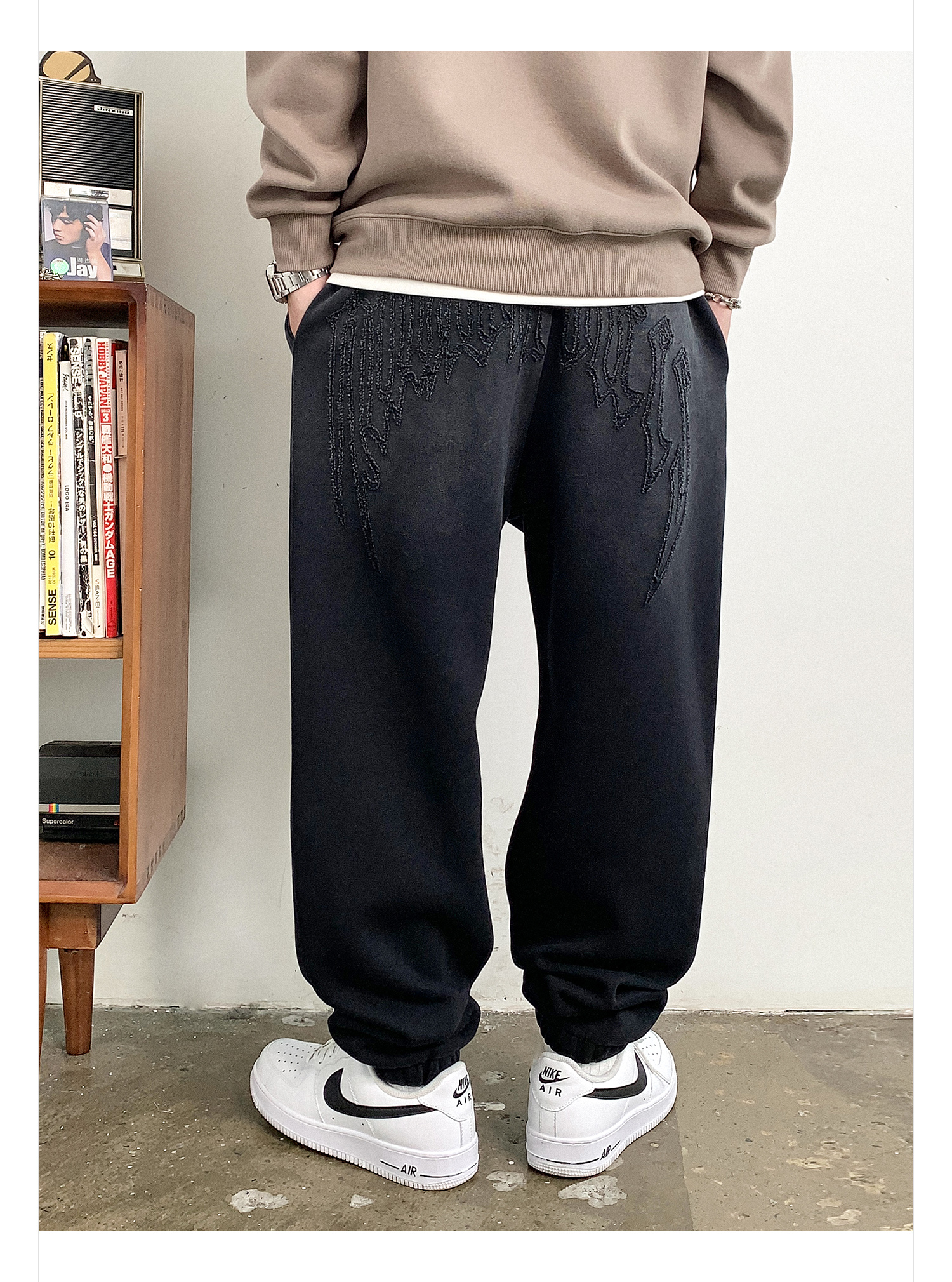 徐太浪设计感水洗烧花运动卫裤男秋冬内里磨毛保暖运动裤大码长裤