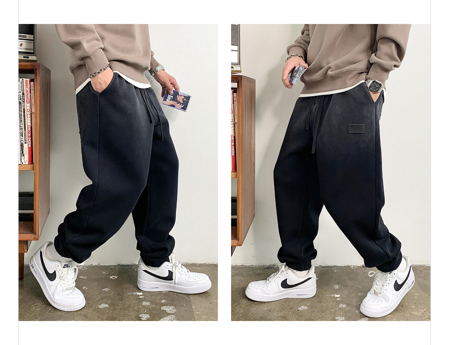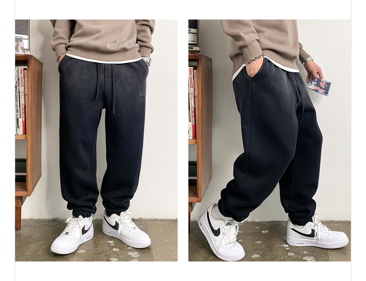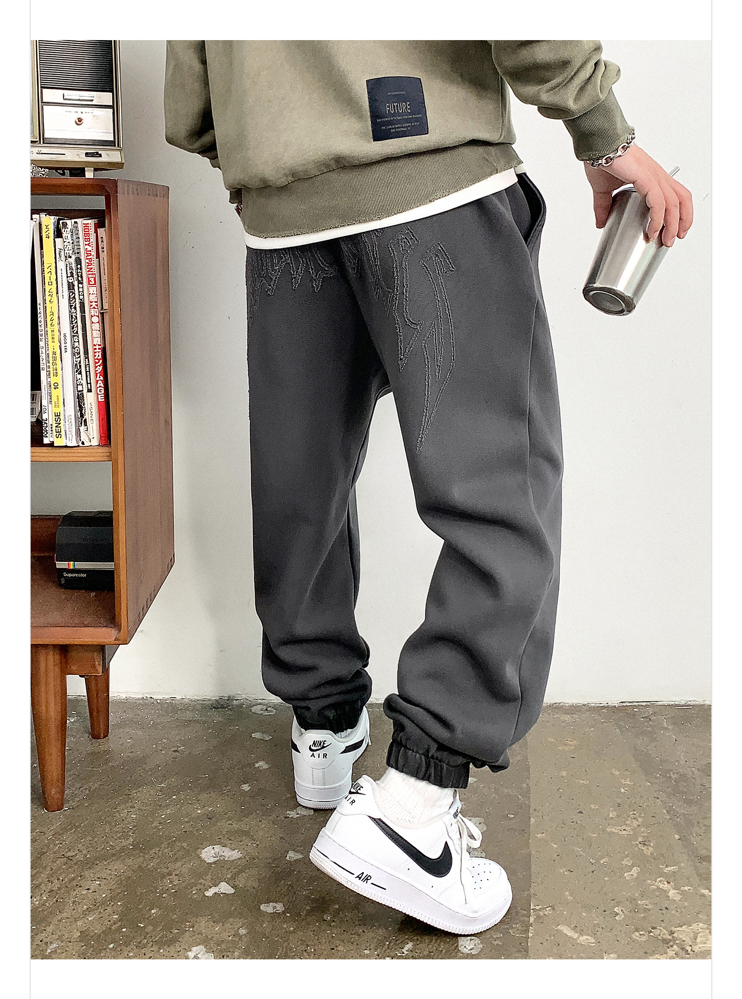 徐太浪设计感水洗烧花运动卫裤男秋冬内里磨毛保暖运动裤大码长裤