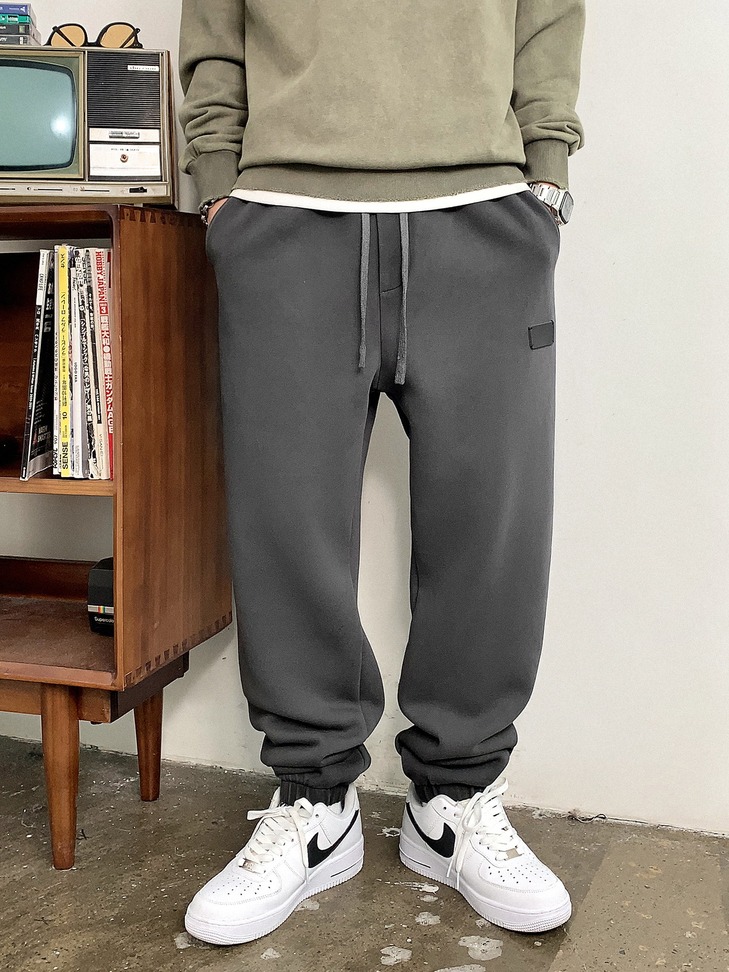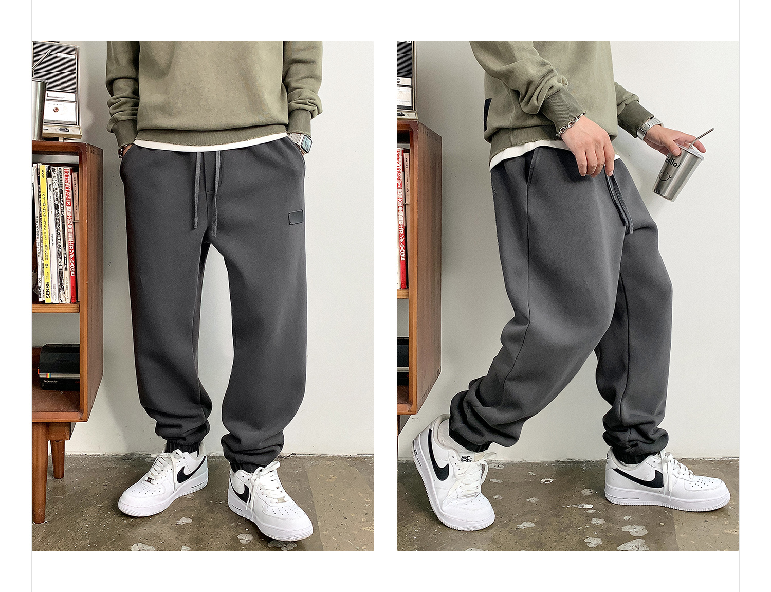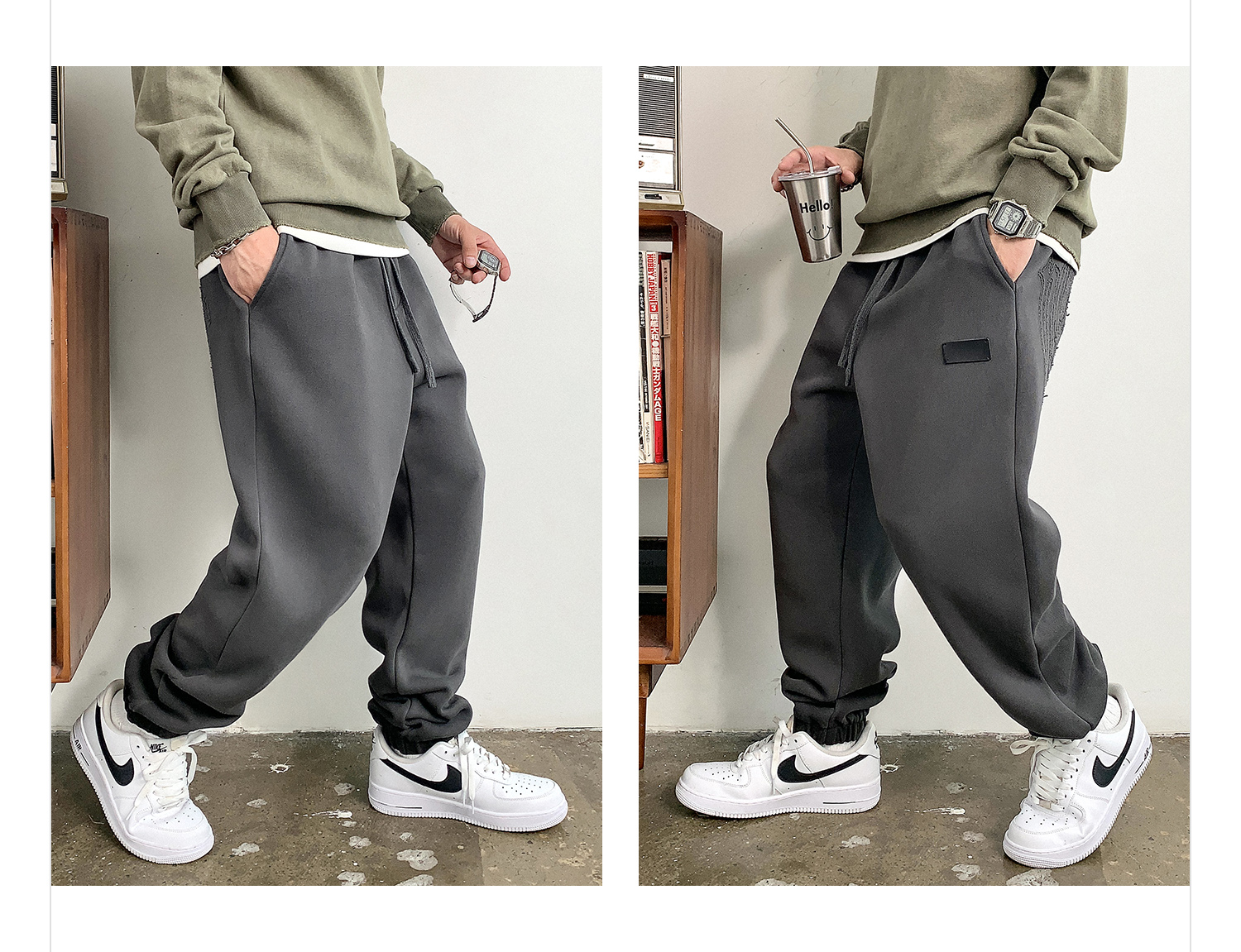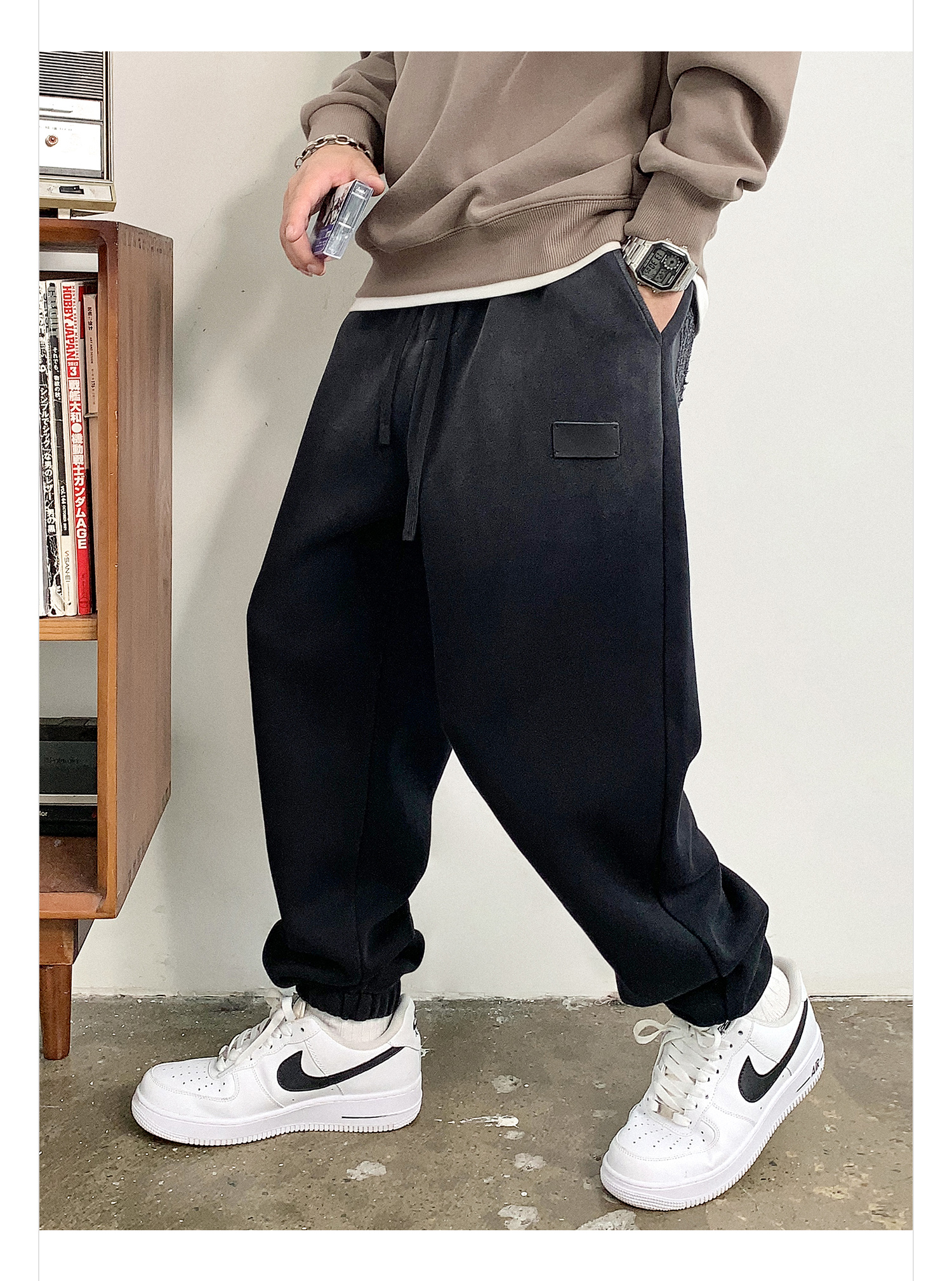 徐太浪设计感水洗烧花运动卫裤男秋冬内里磨毛保暖运动裤大码长裤