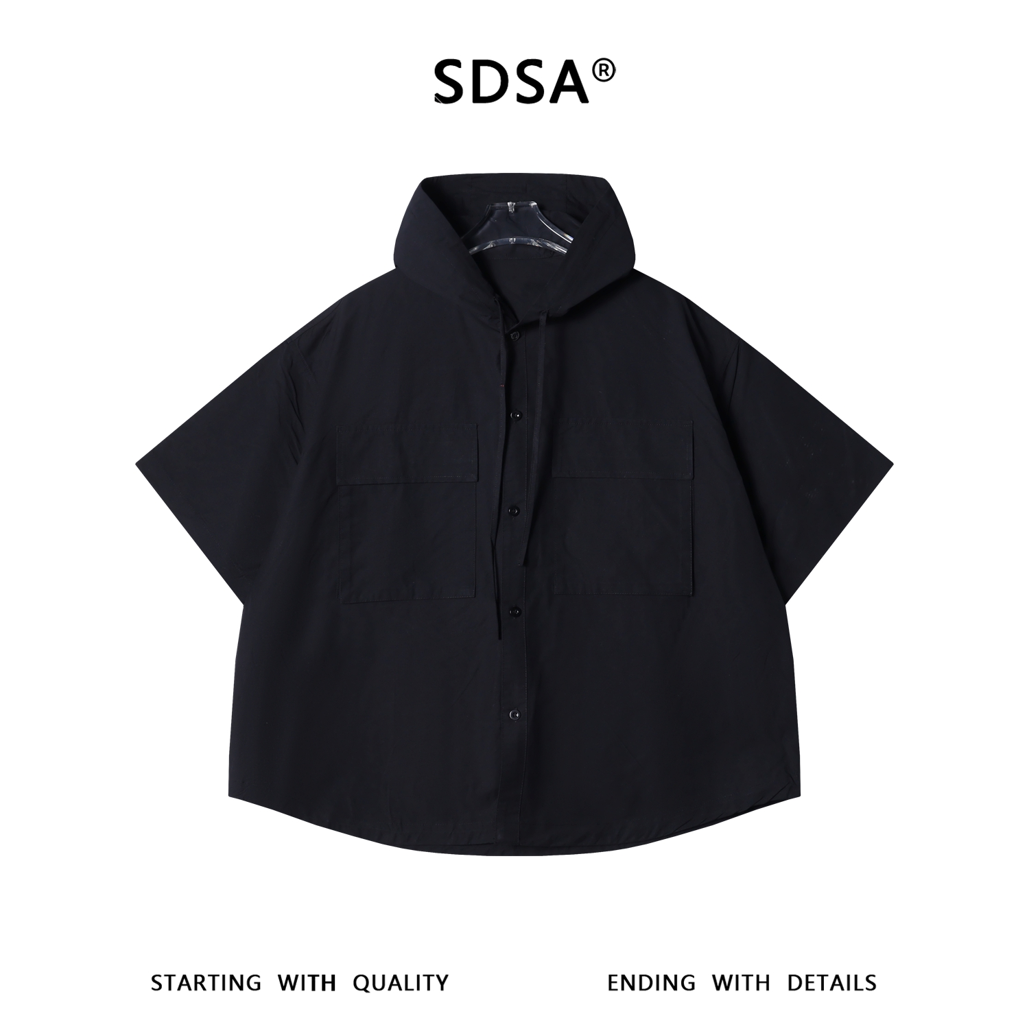 SDSA男装2026新款高贵轻奢连帽多口袋短袖衬衫宽松休闲上衣