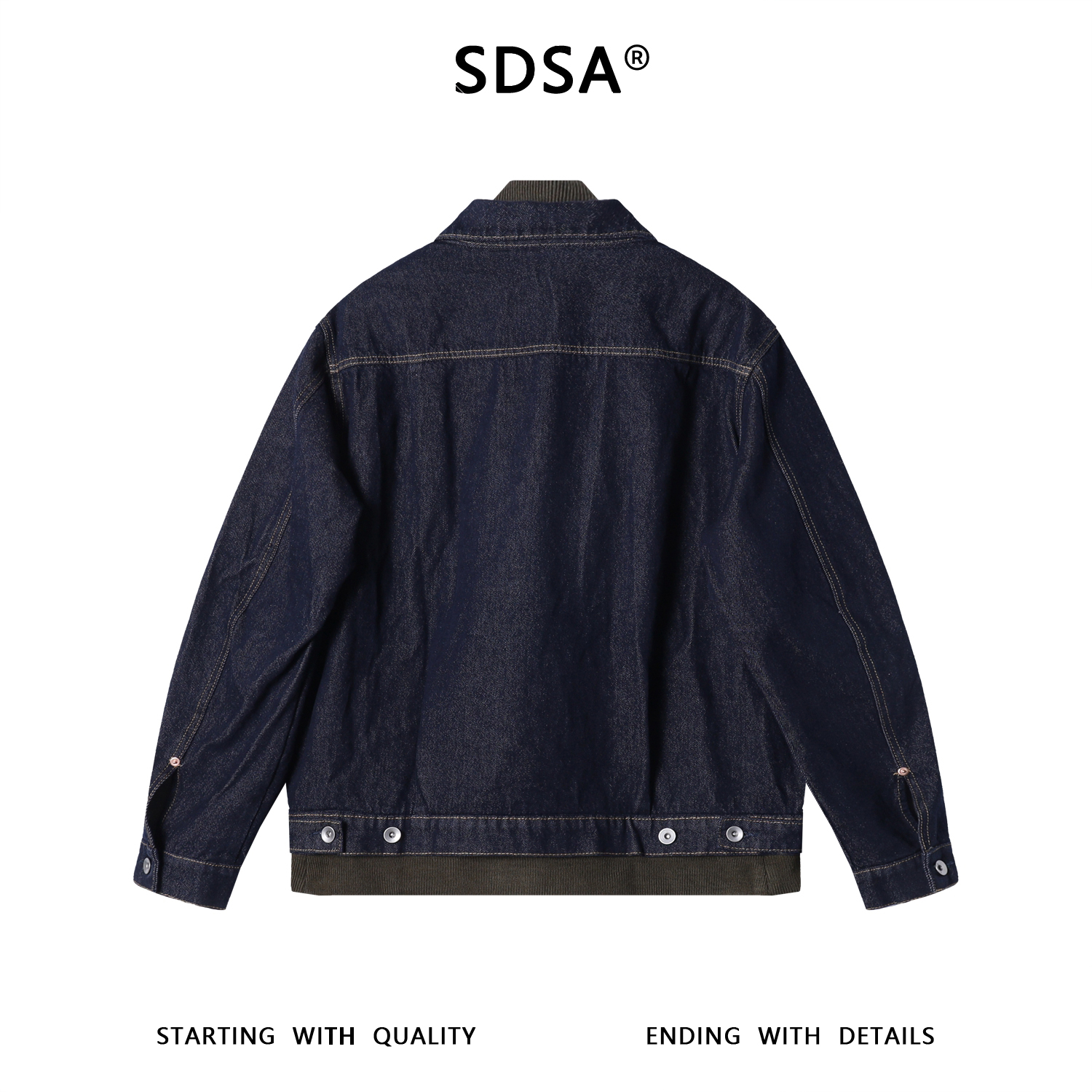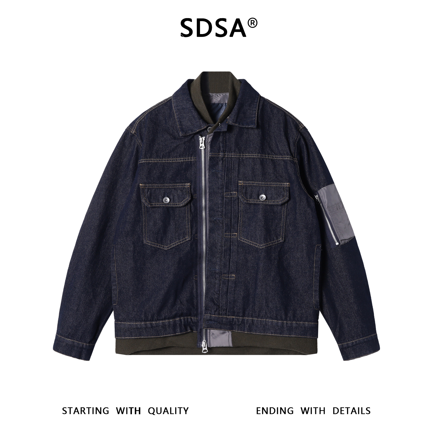 25102SDSA秋冬新款痞帅男装潮牌撞色拼接立领翻领拉链牛仔工装外套百搭