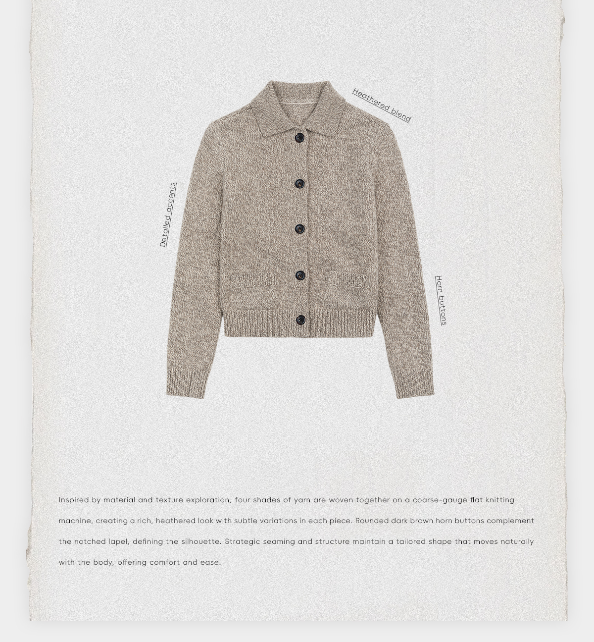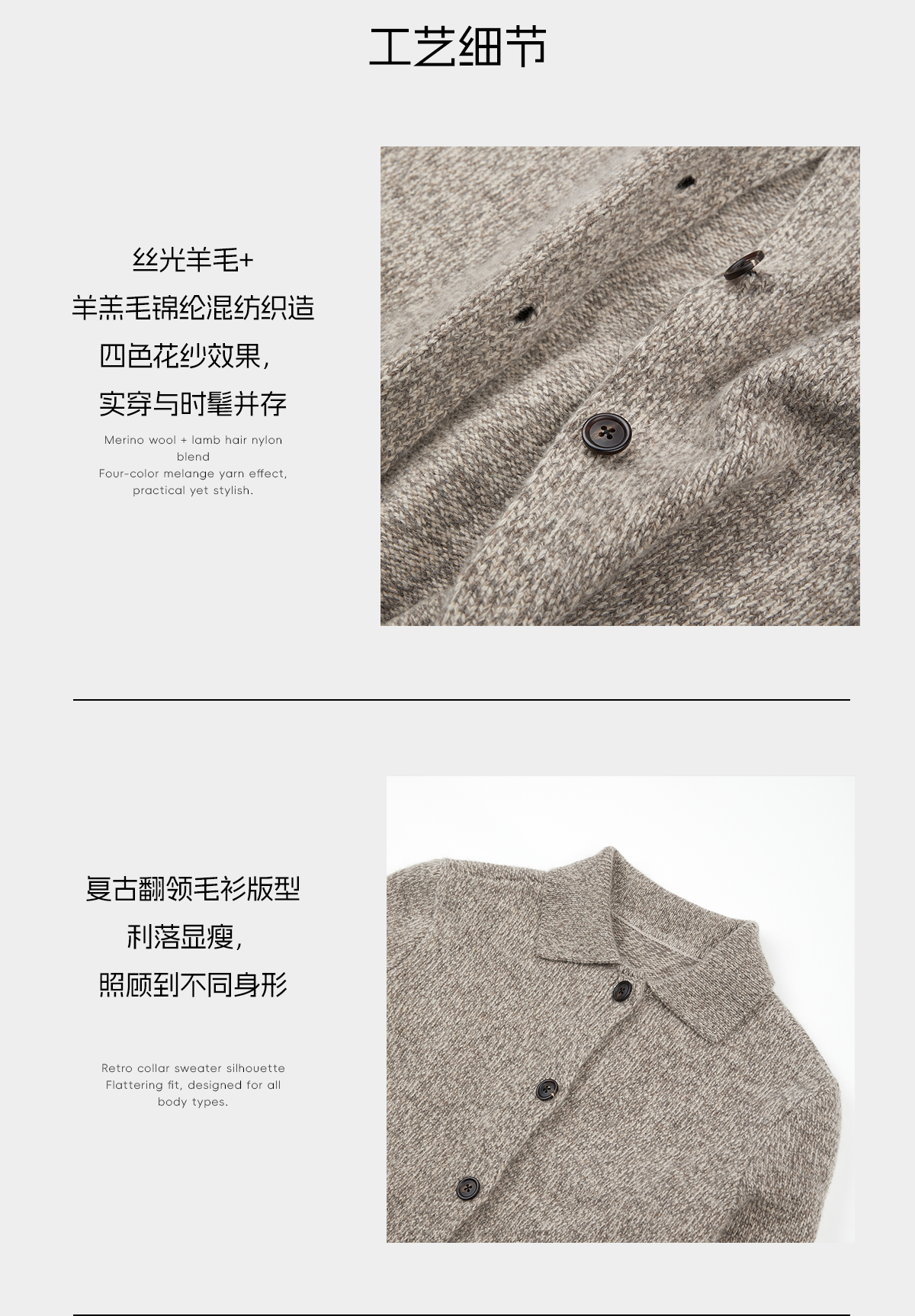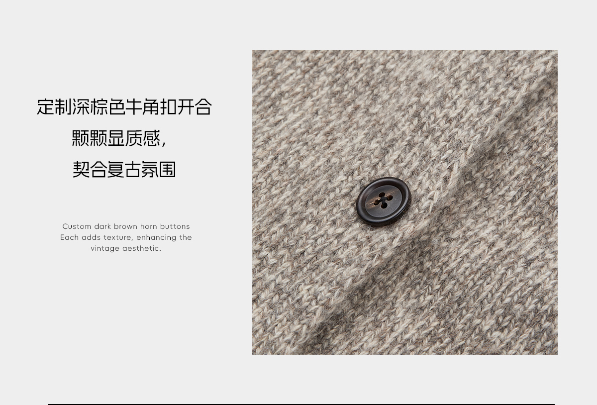 ROMI STUDIO“老钱腔调”丝光羊毛混纺牛角扣开襟毛衫 RWCWSG7200