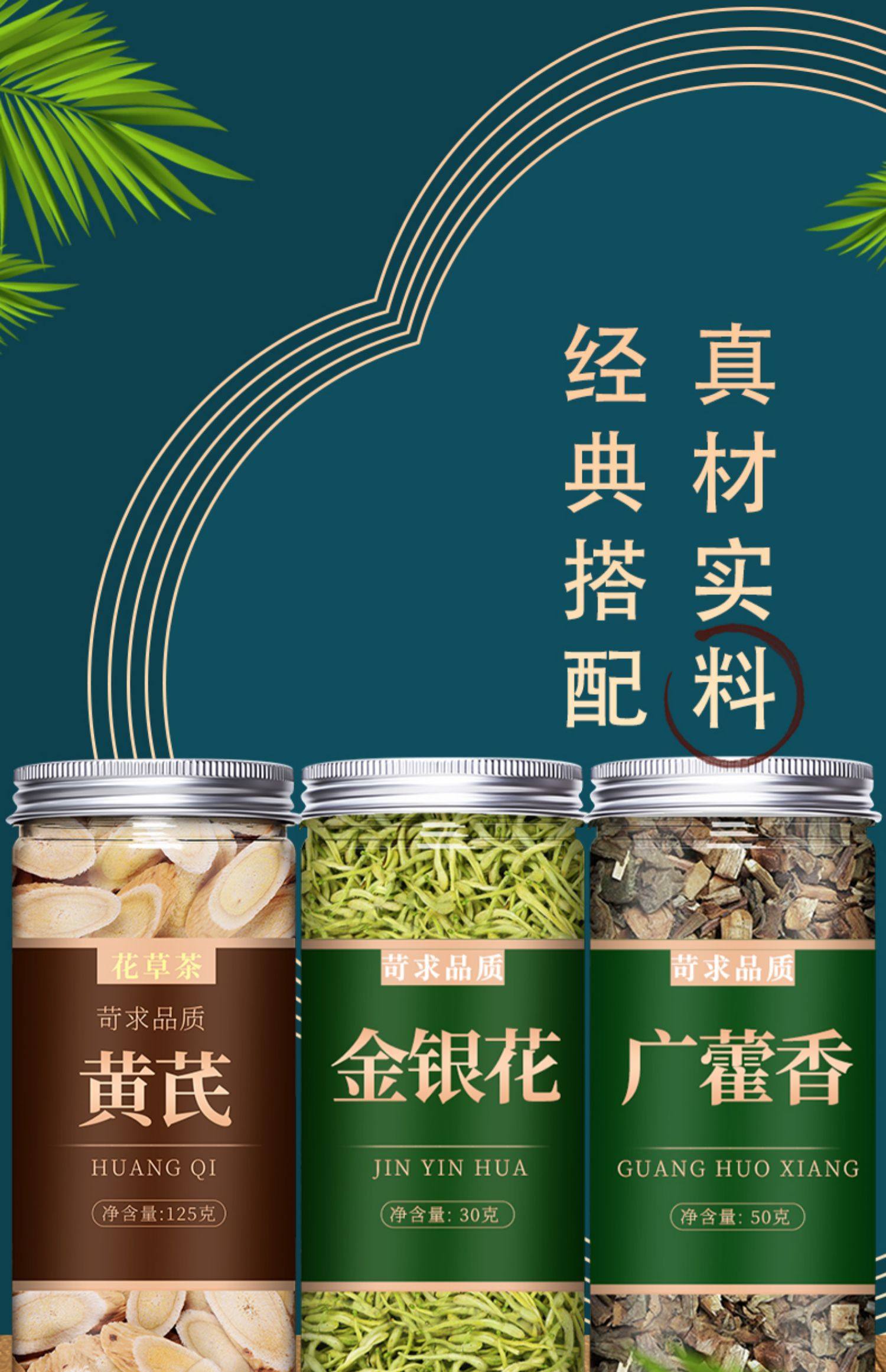 生黄芪9g金银花5g广藿香3g中药材茶正品土藿香霍香叶官方旗舰店粉
