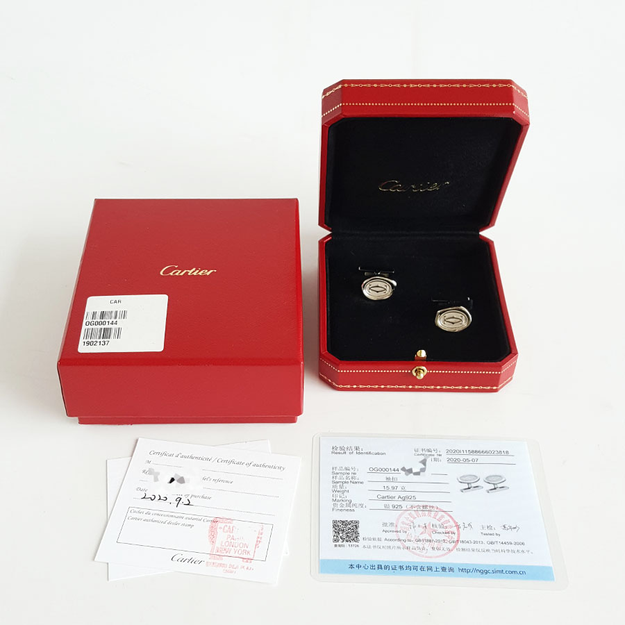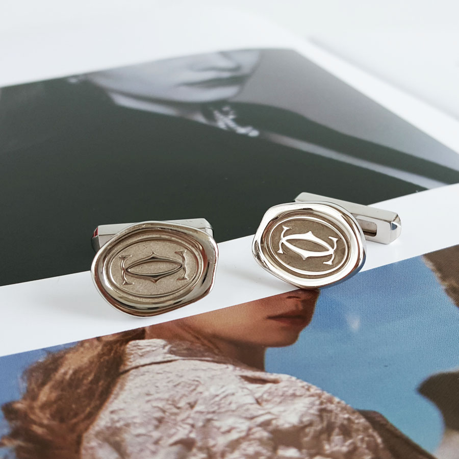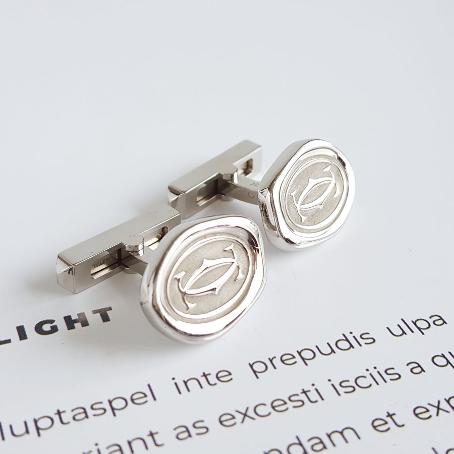 【95新】Cartier卡地亚OG000144925银双C封蜡章袖扣男士现售价:2080!240625NJS13