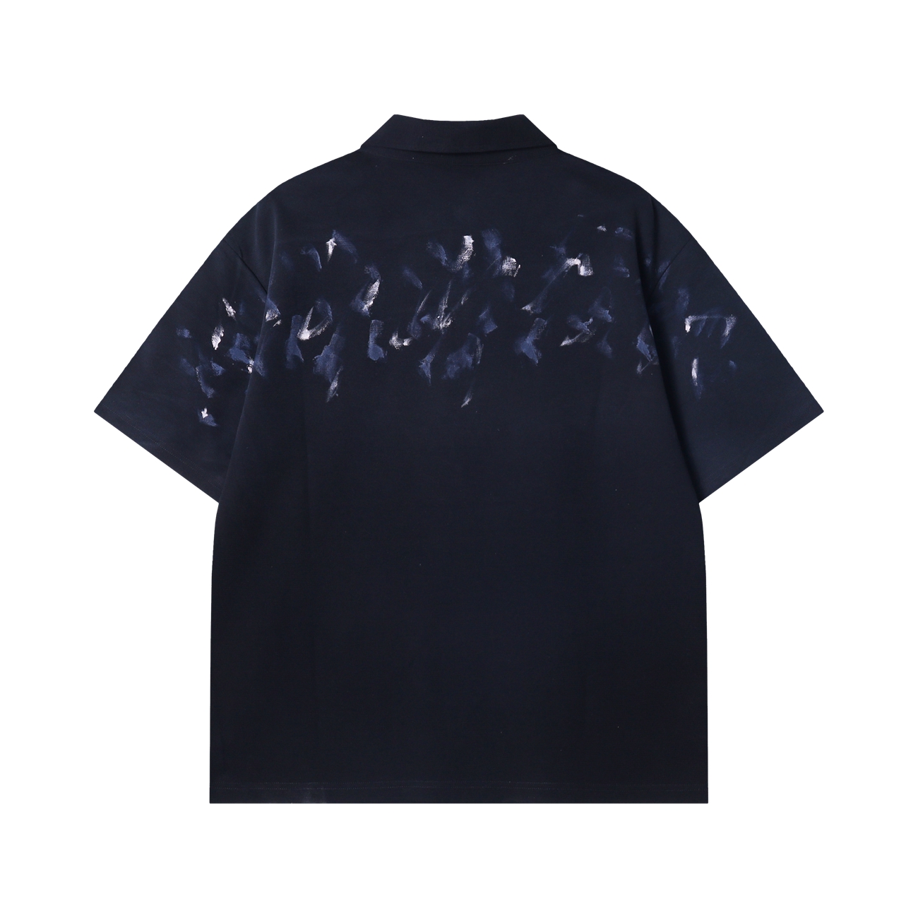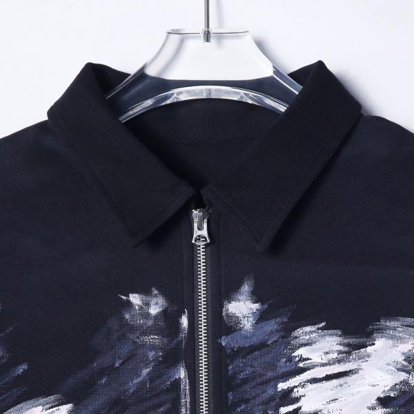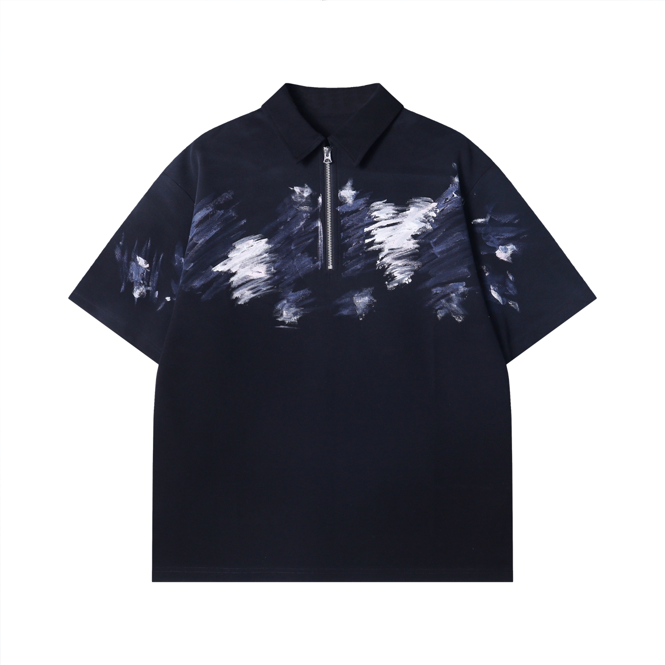 2526638夏季高级感新款韩版彩绘印刷拉链polo领休闲宽松通勤百搭短袖
