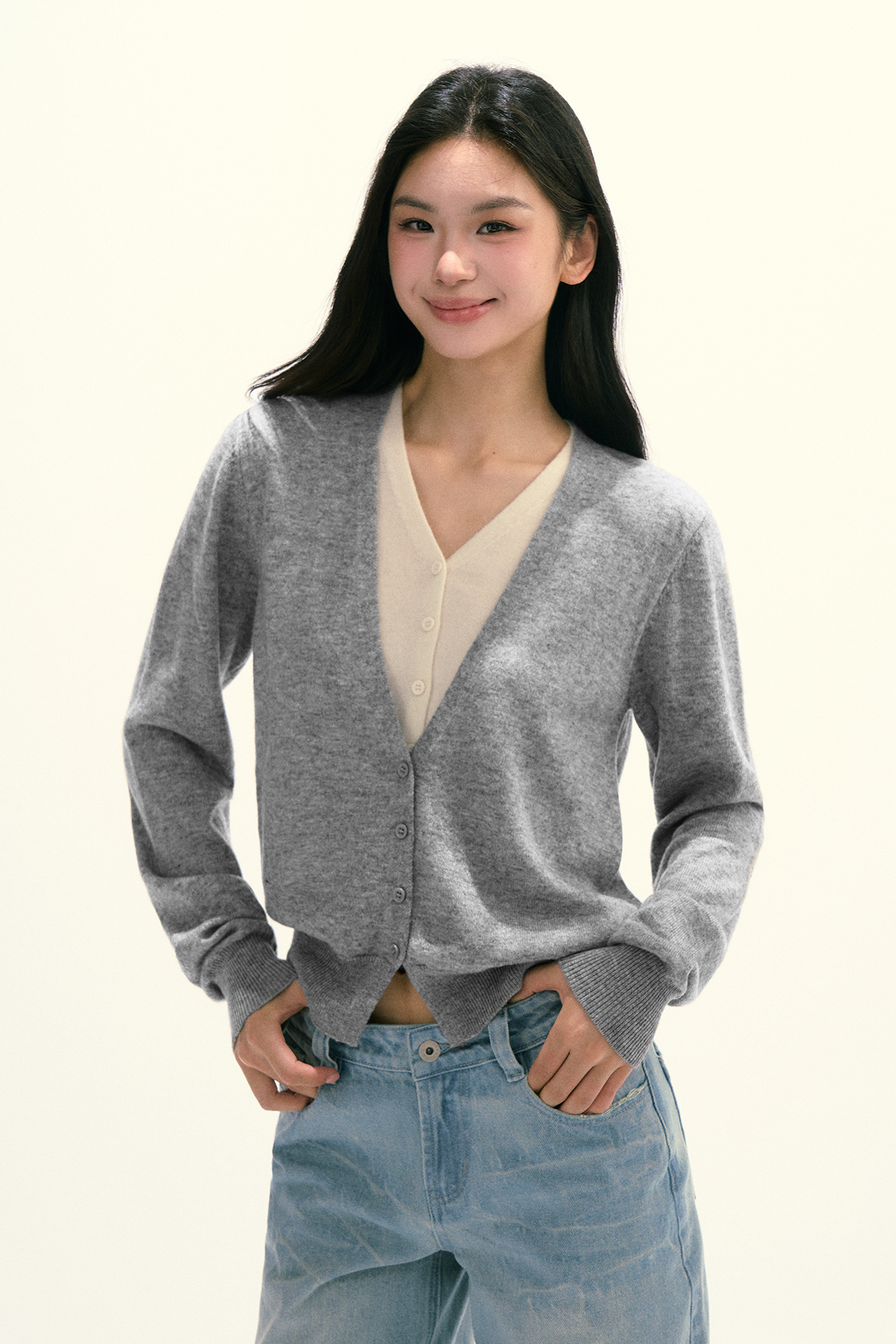 Ariseism 美式复古绵羊毛假两件针织衫女秋季新款修身长袖上衣
