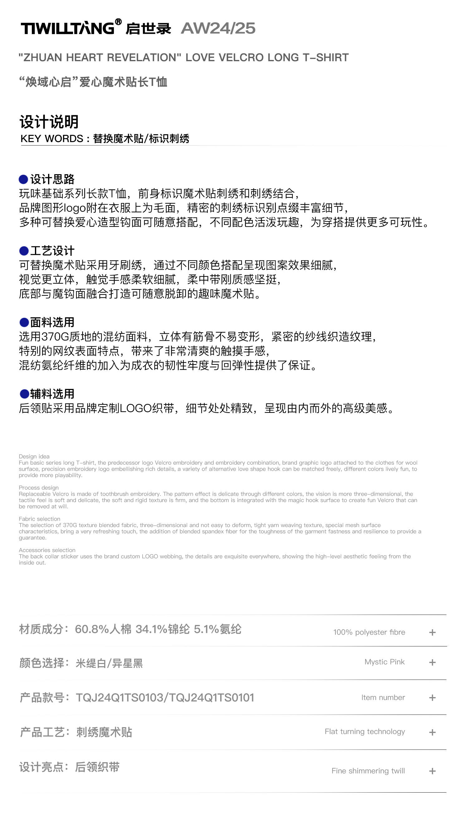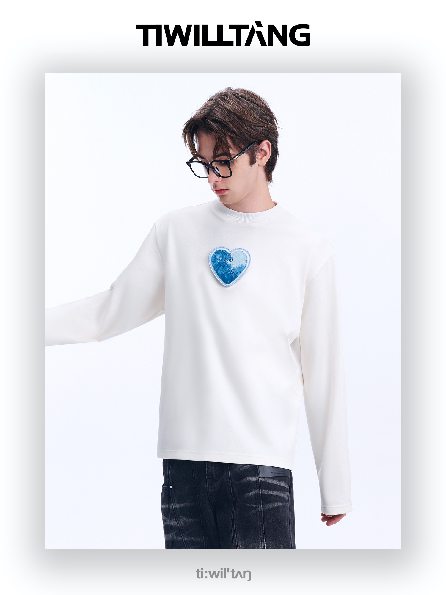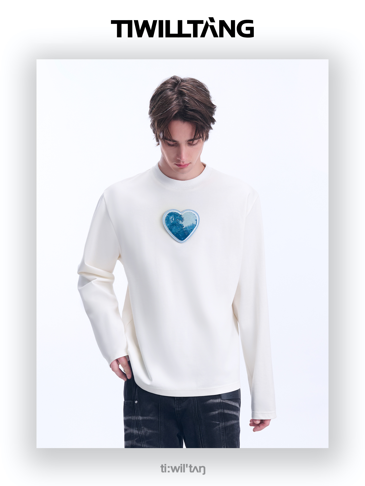 TIWILLTANG启世录“焕域心启”休闲白色圆领卫衣宽松长袖T恤上衣