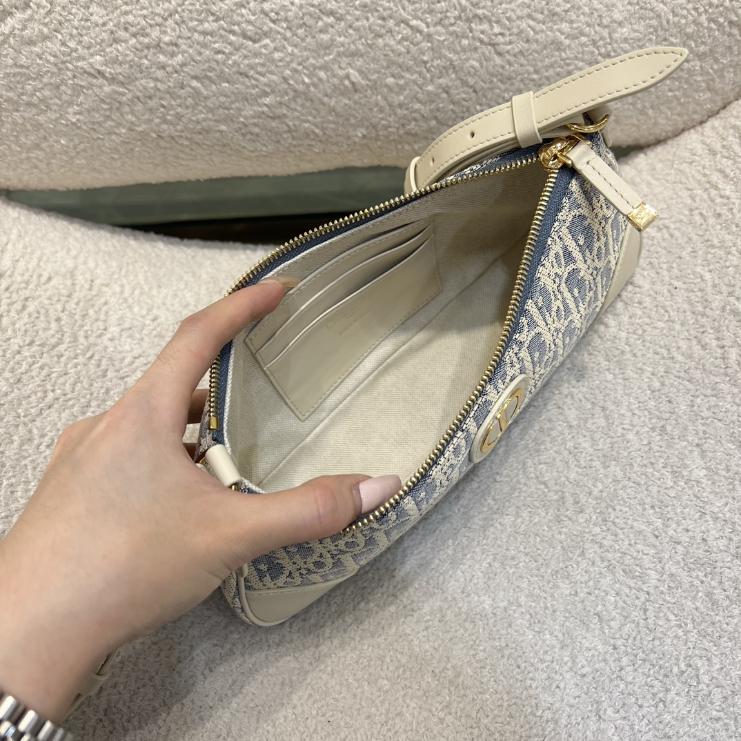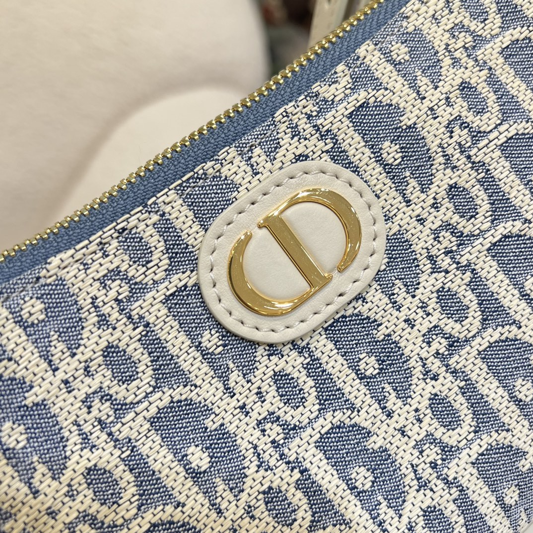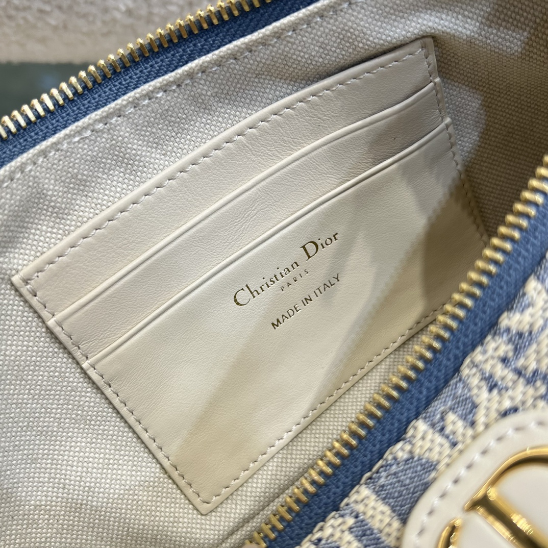 DIOR迪奥 30 Montaigne 金色饰面金属CD标志 单肩包 迷你女款牛仔蓝拼米色