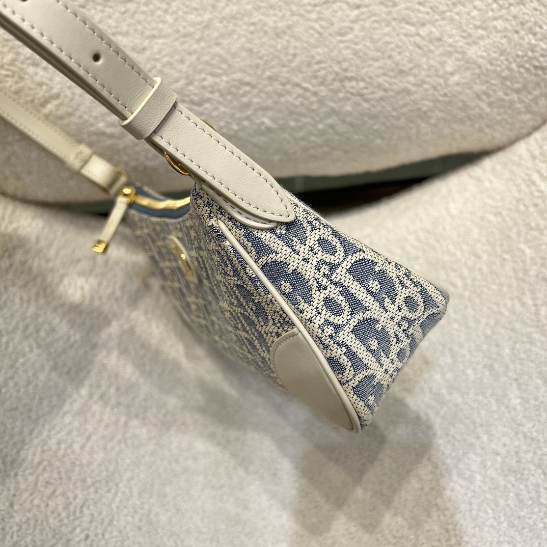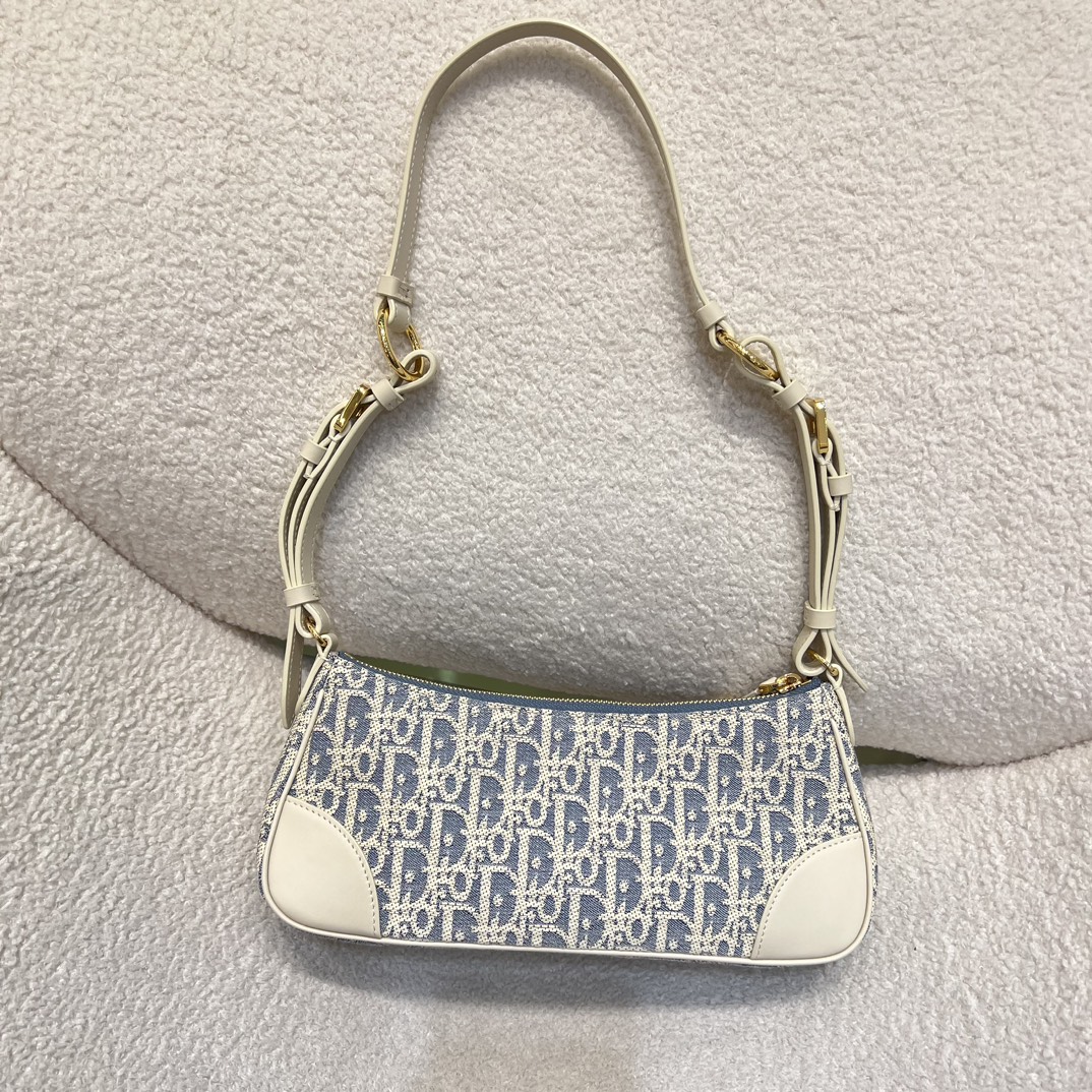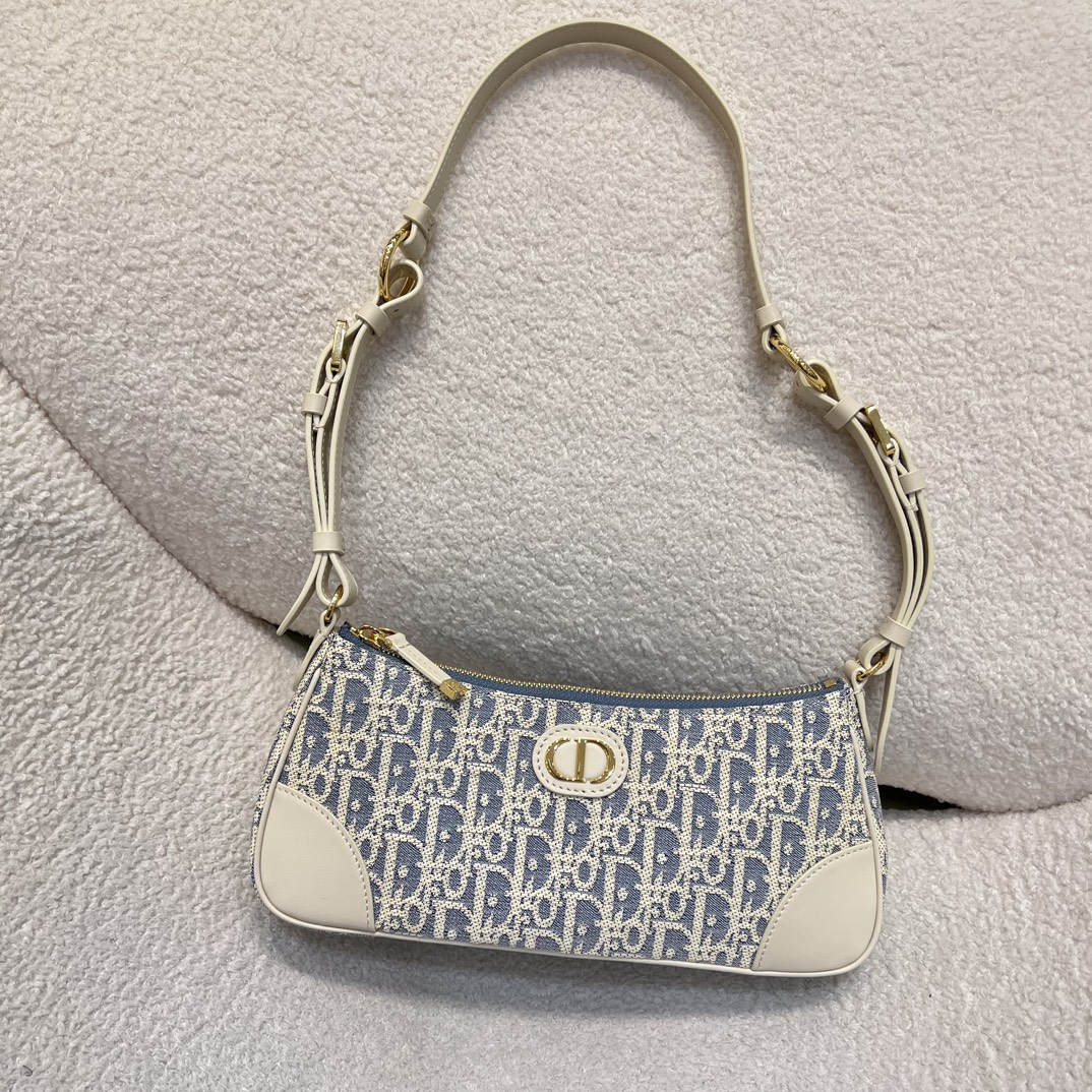 DIOR迪奥 30 Montaigne 金色饰面金属CD标志 单肩包 迷你女款牛仔蓝拼米色