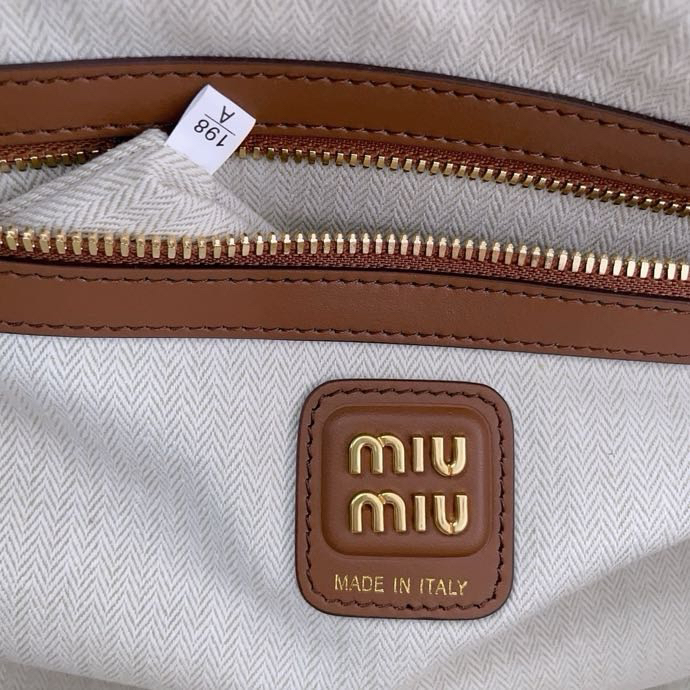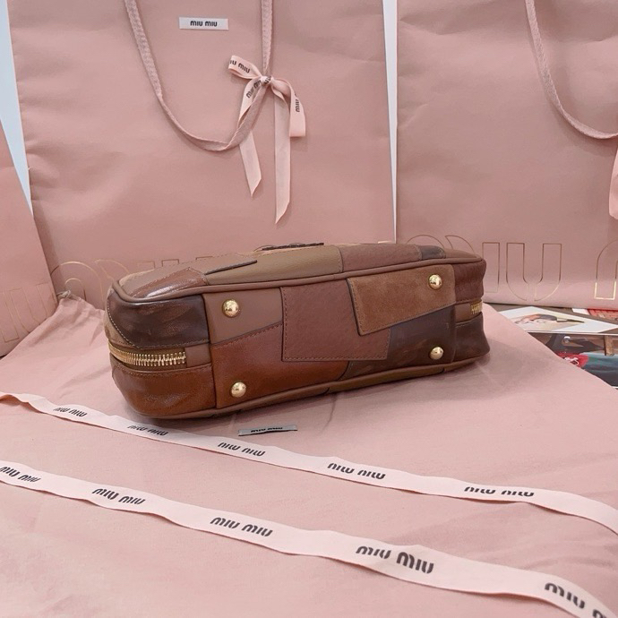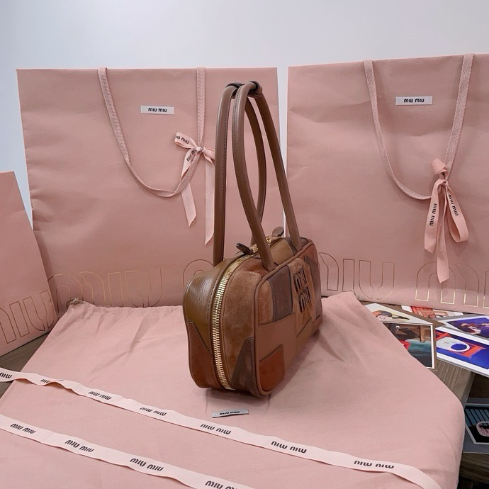 MIU MIU缪缪 Arcadie系列 徽标刺绣几何图案 牛皮革和羊皮革 保龄球包斜挎手提单肩包 女款 干异色(HH)