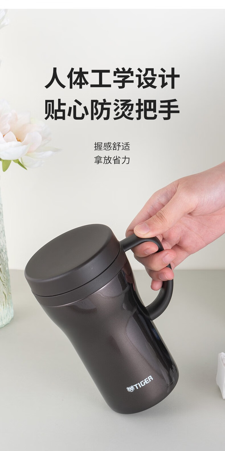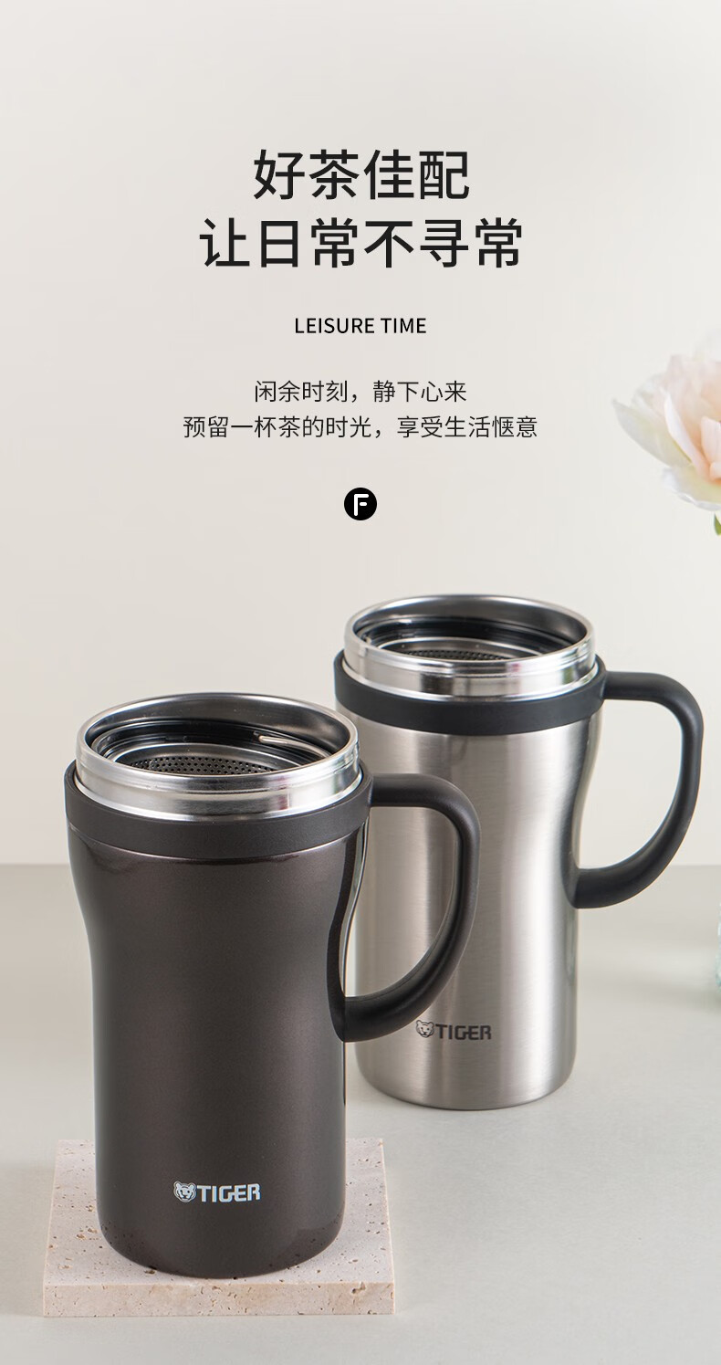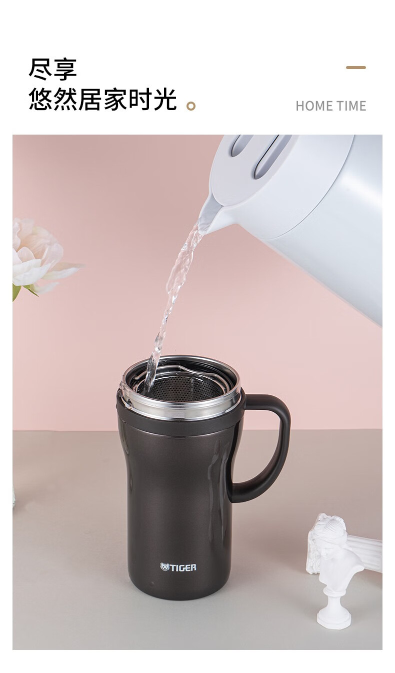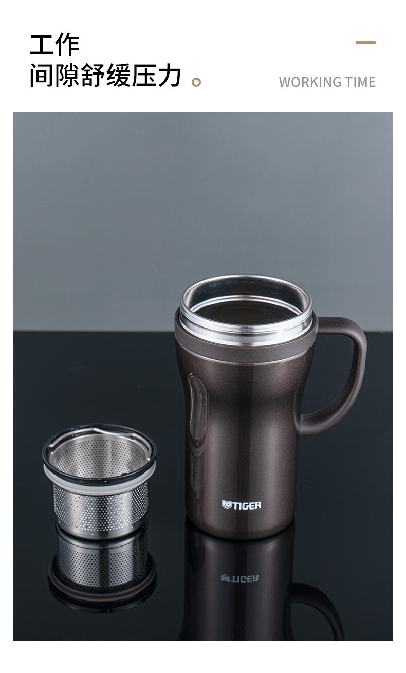虎牌(TIGER) 保温杯不锈钢480ml真空办公杯男女时尚泡茶水杯带茶滤网CWN-A48C 咖啡色TV