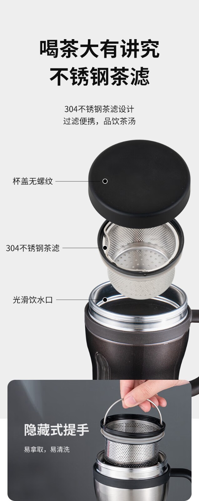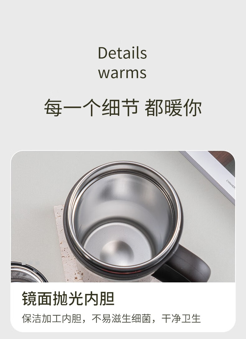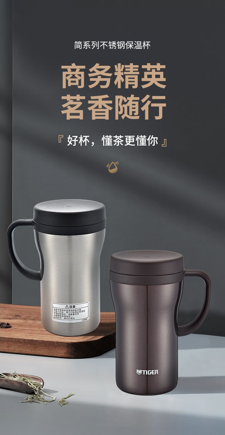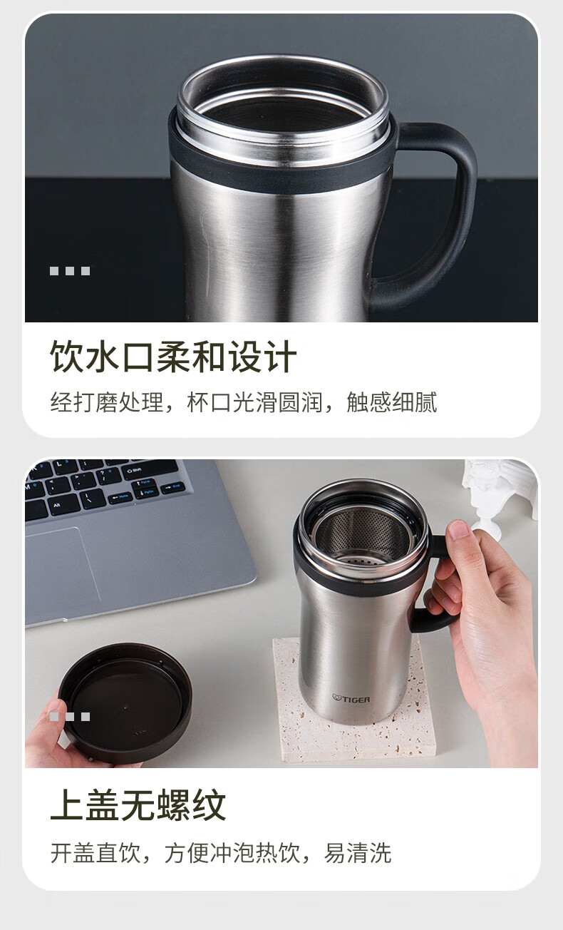 虎牌(TIGER) 保温杯不锈钢480ml真空办公杯男女时尚泡茶水杯带茶滤网CWN-A48C 咖啡色TV
