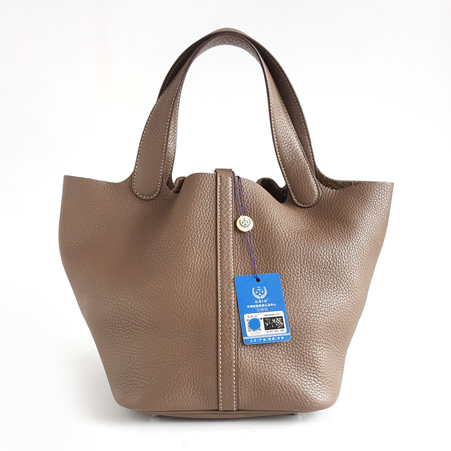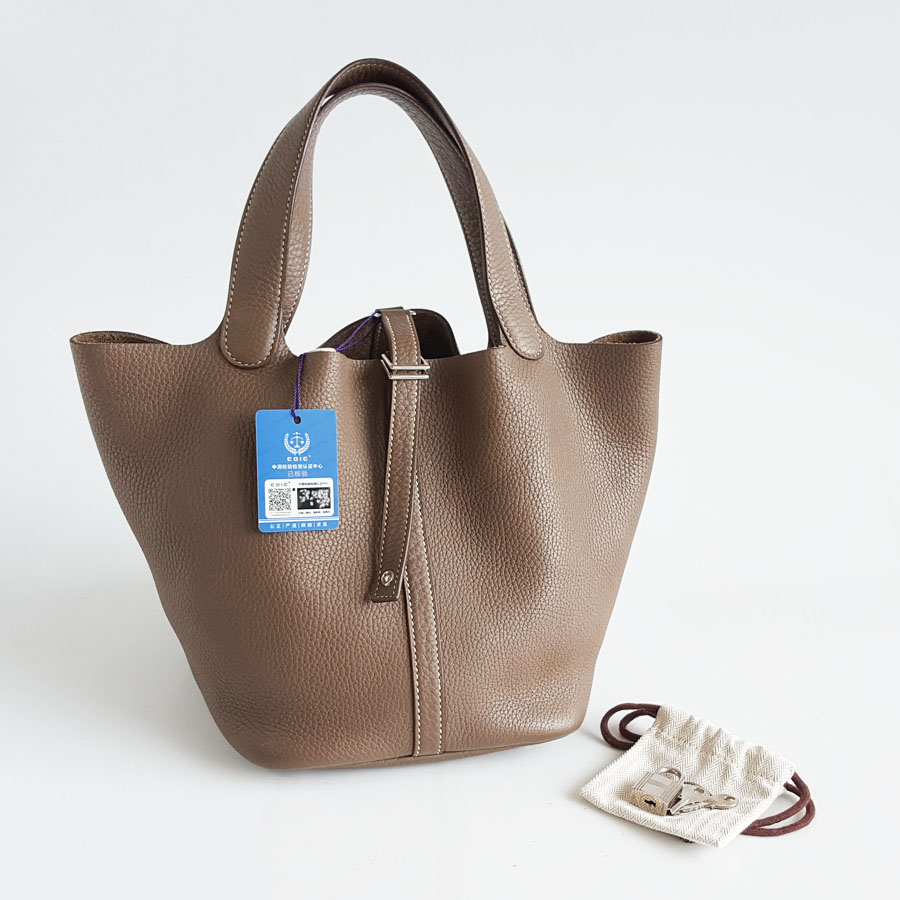【95新】HERMES爱马仕Picotin大象灰银扣Picotin菜篮子22手提包女士260326NJS06