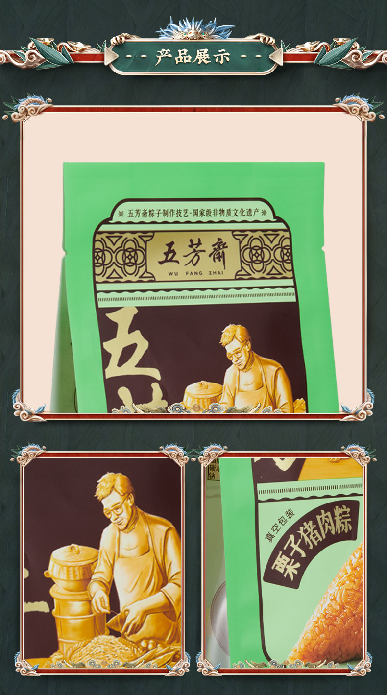 五芳斋 真空现剥栗子鲜肉粽5袋装 栗子现剥入馅 家庭量贩装(140g*2只/袋)