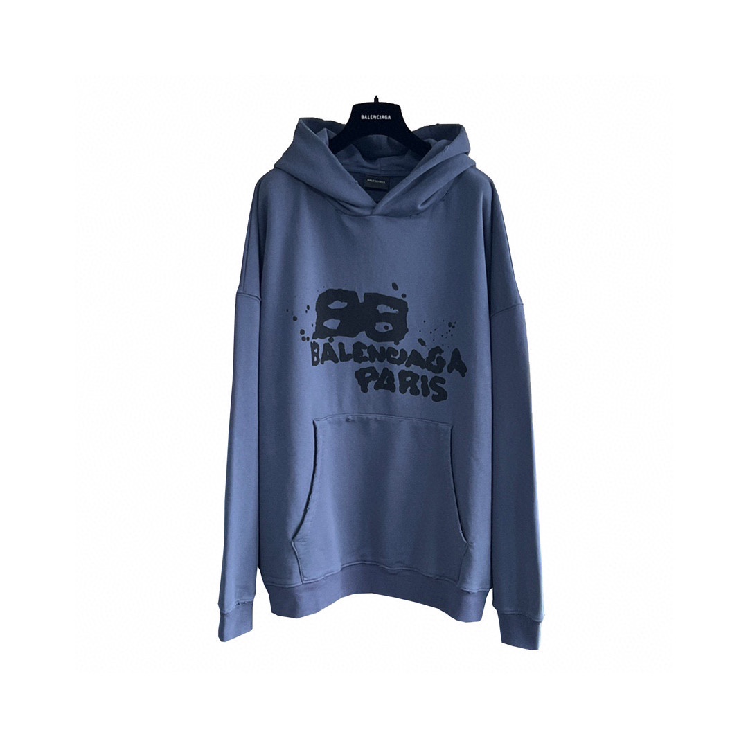 巴黎世家BalenciagaBB手绘涂鸦连帽卫衣 进口椭圆机访手绘效果 印花无牙边 袖口 螺纹 下摆的磨破效果 真的太好看了 前后效果完美 采用420g净布纯棉大卫衣 过水克重可达460 厚实感十足 工艺感十足 大货三标齐+码数贴+带Logo防尘纸