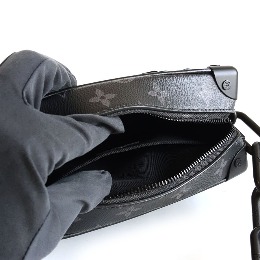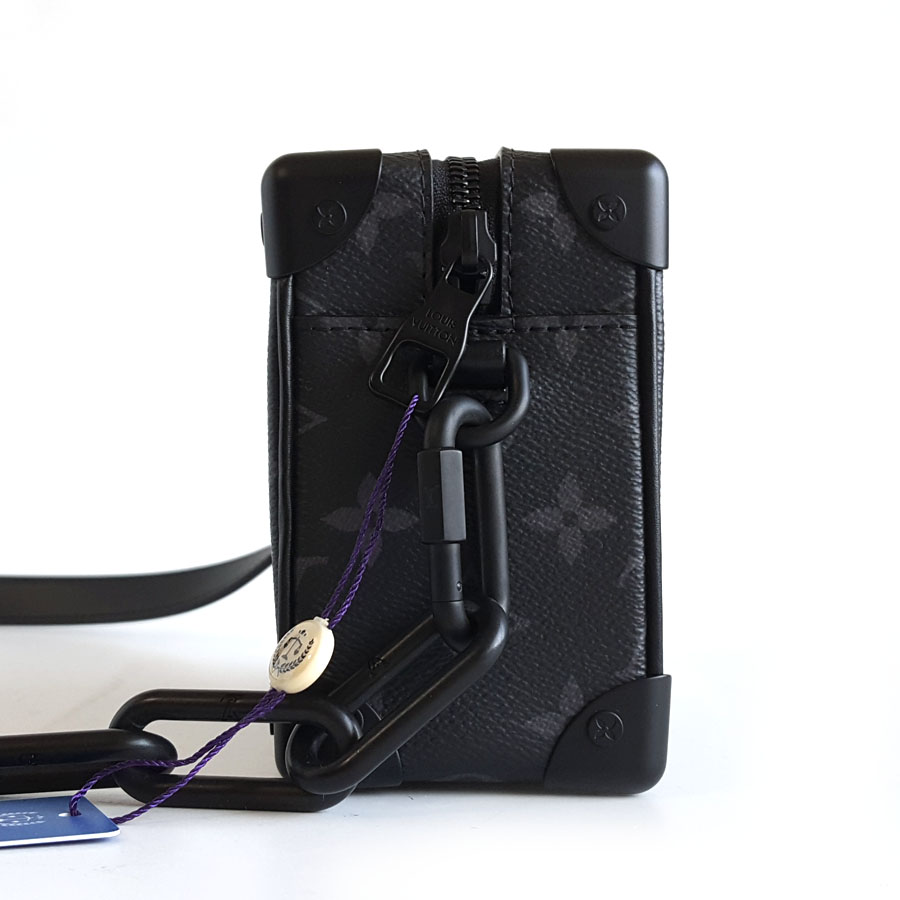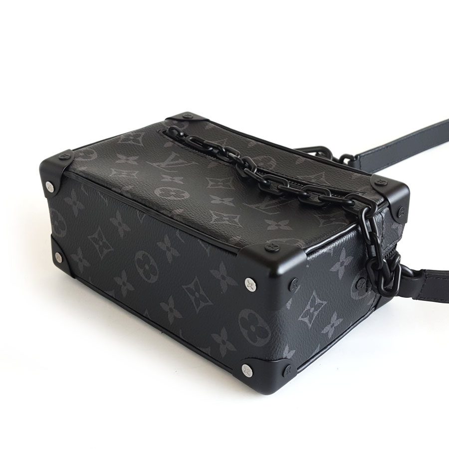 【95新】LV路易威登M44735黑老花黑武士mini soft trunk软盒子包单肩斜挎包中性款130326TB16