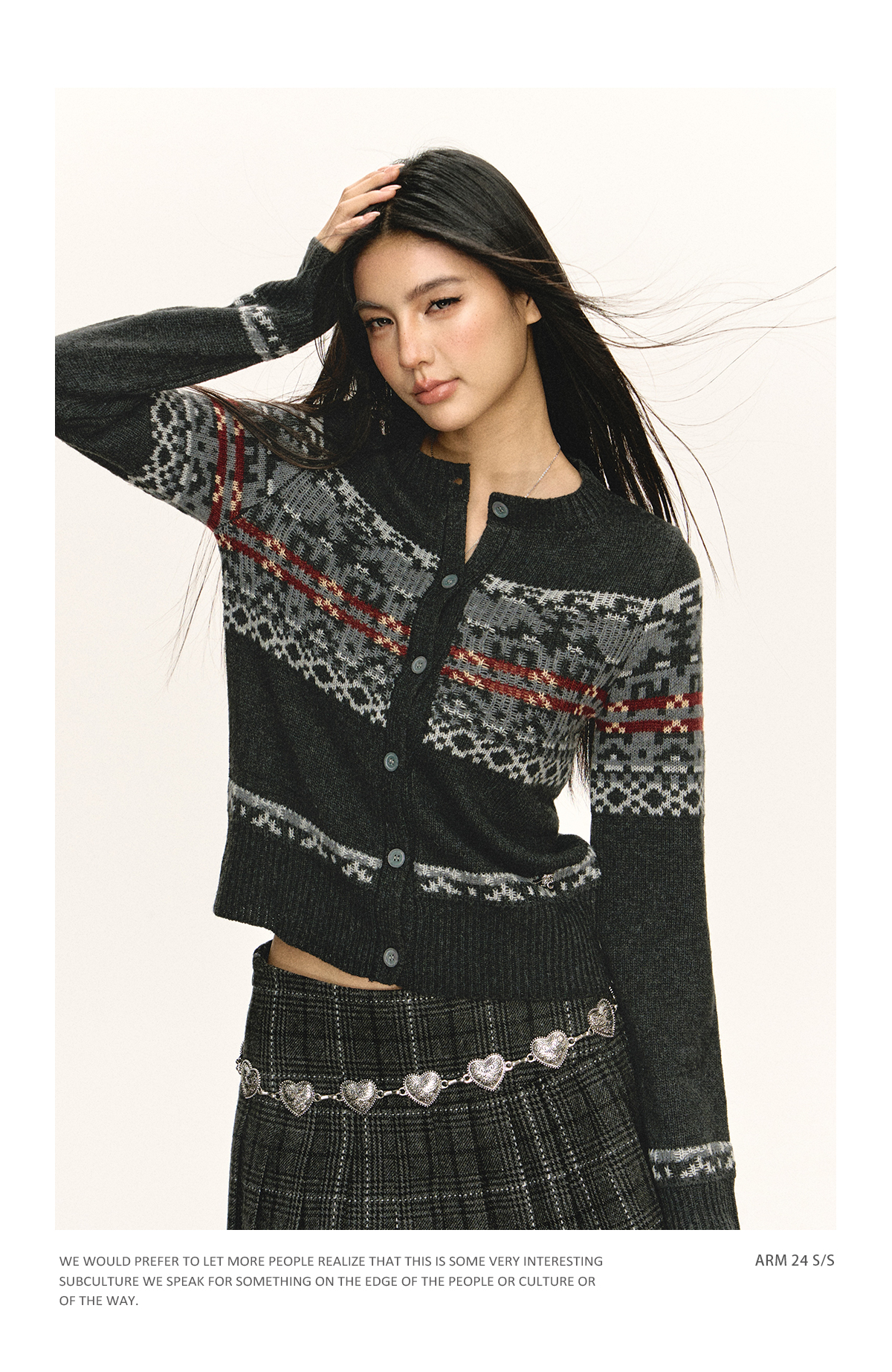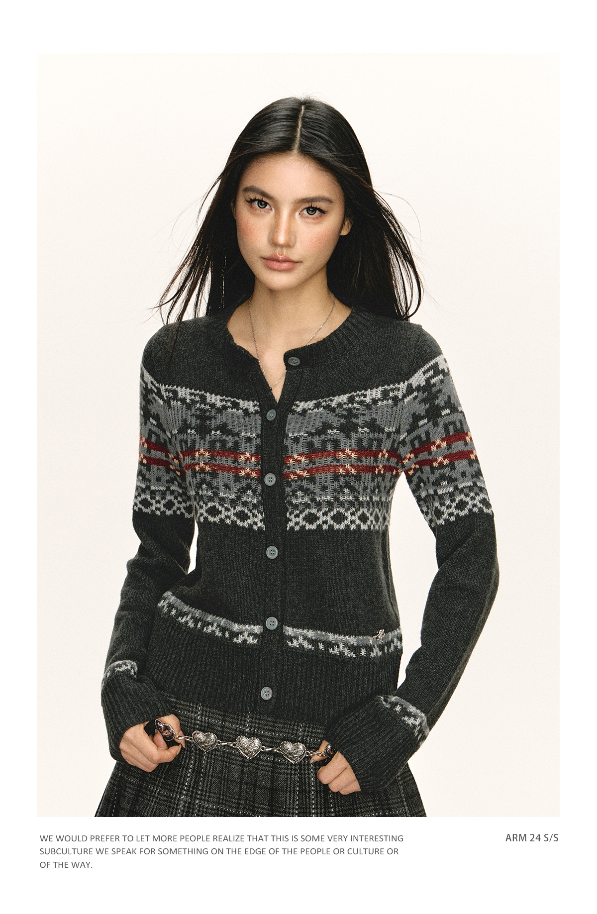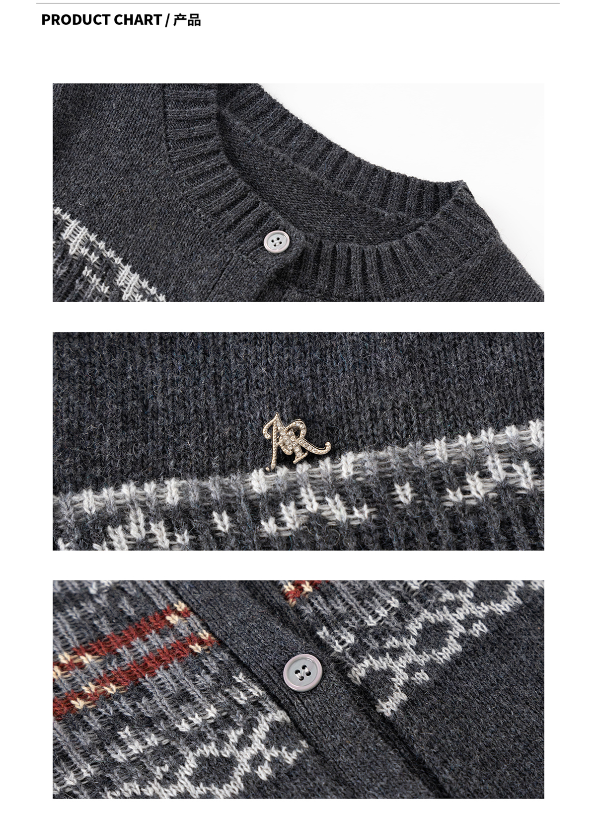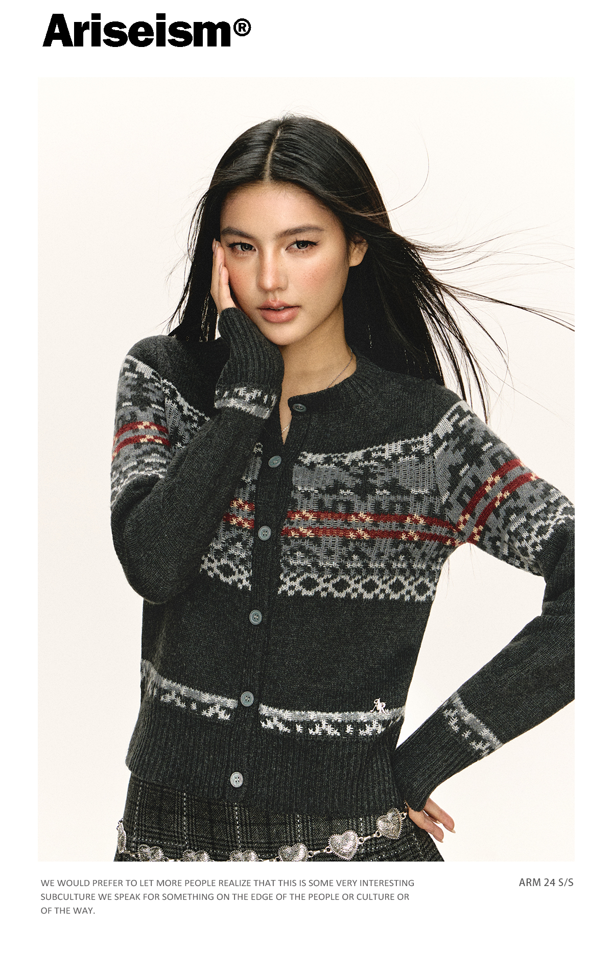Ariseism 美式复古圆领针织开衫毛衣女春秋新款上衣