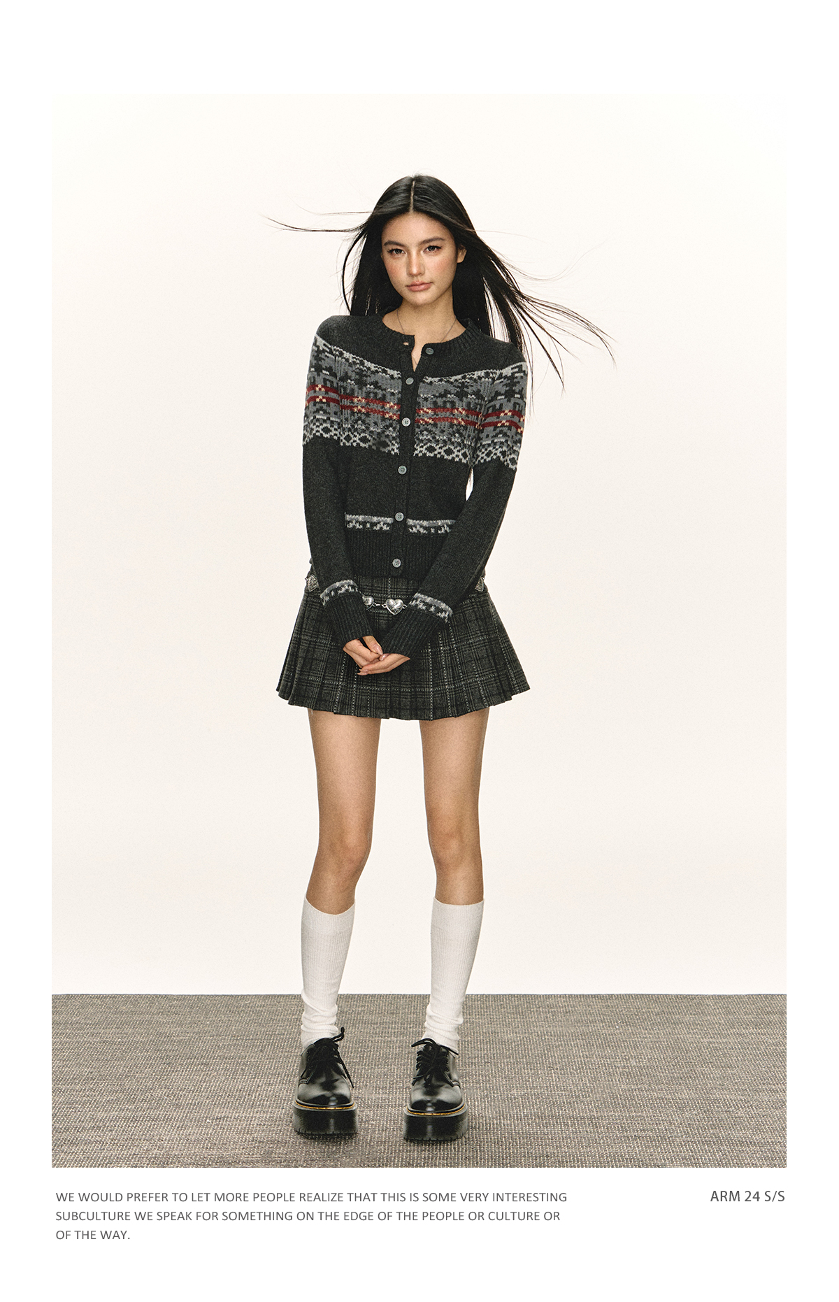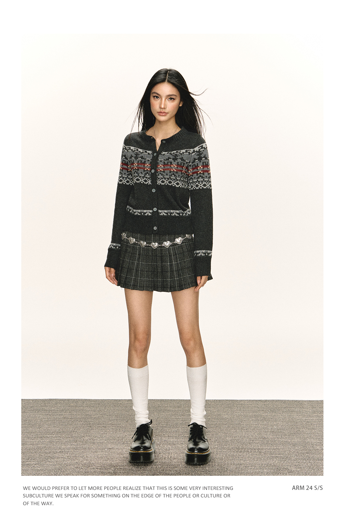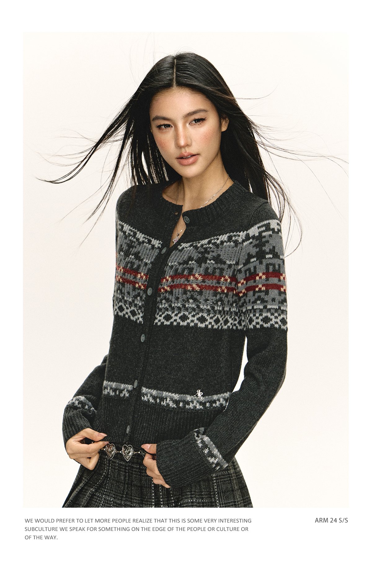 Ariseism 美式复古圆领针织开衫毛衣女春秋新款上衣