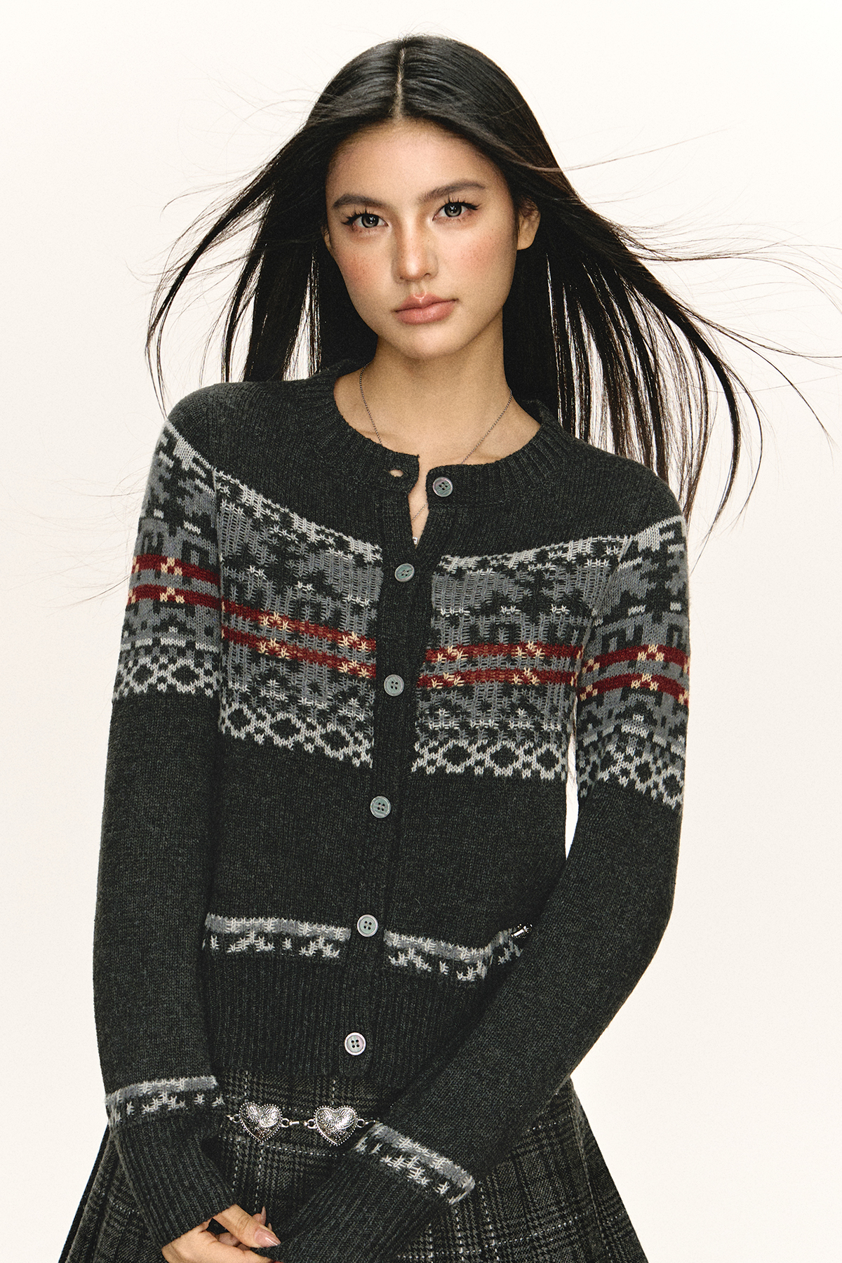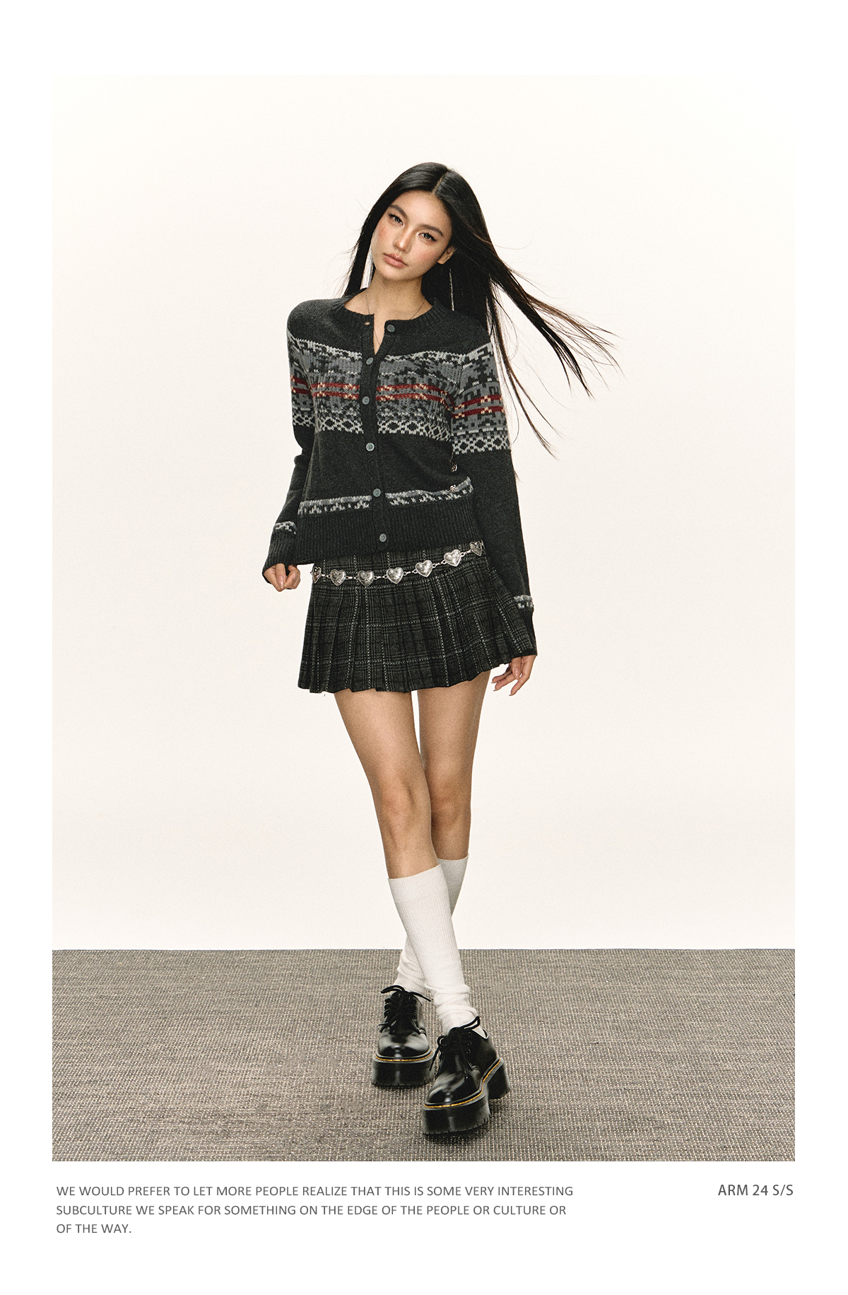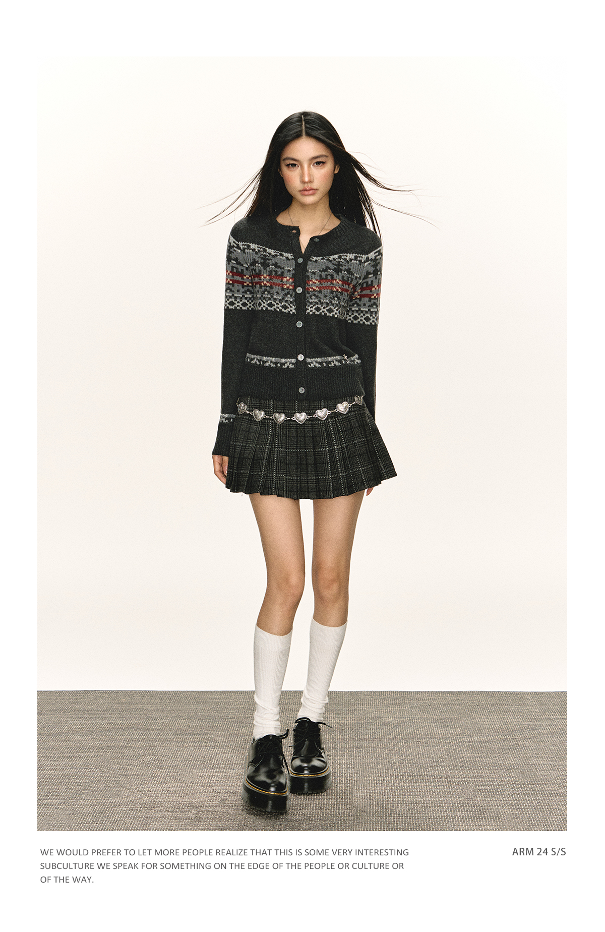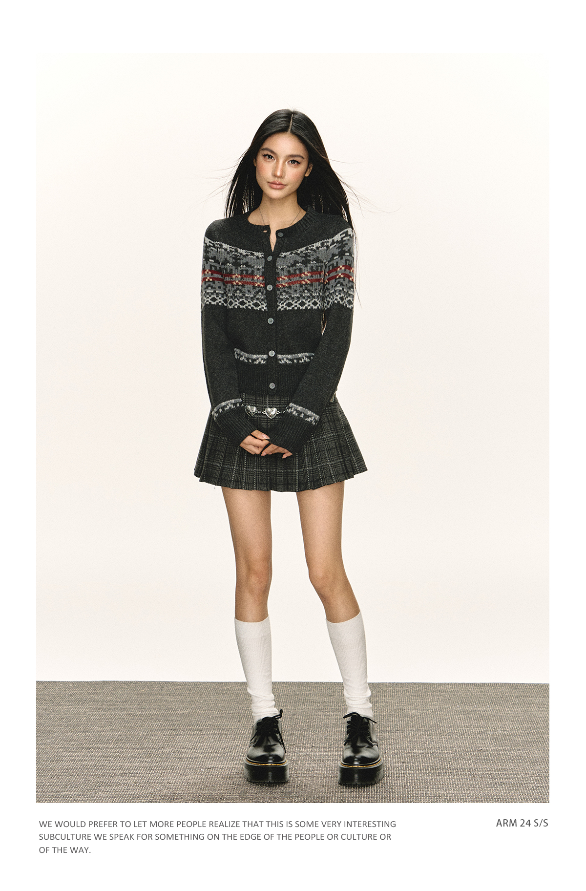 Ariseism 美式复古圆领针织开衫毛衣女春秋新款上衣