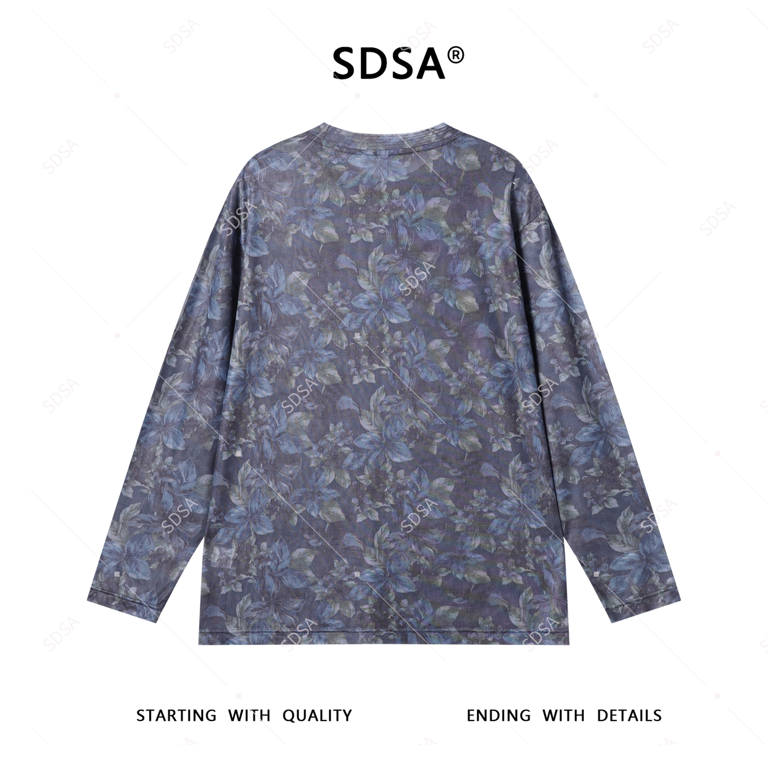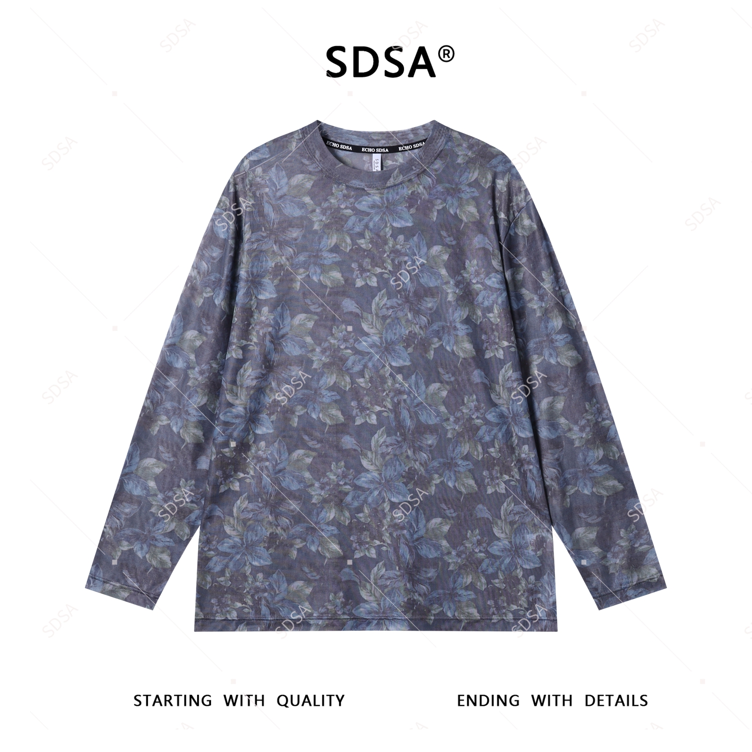 T4481SDSA秋季新款男士痞帅简约休闲植物花卉圆领长袖T恤宽松百搭时尚