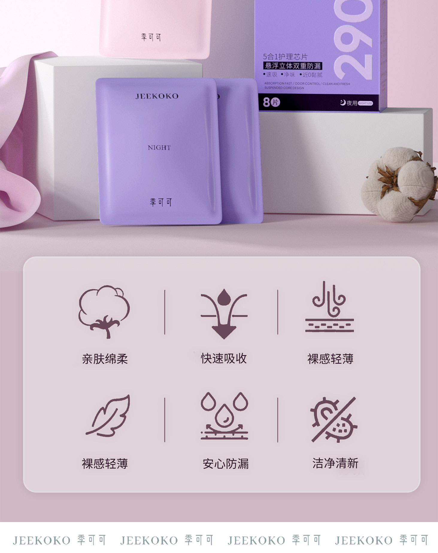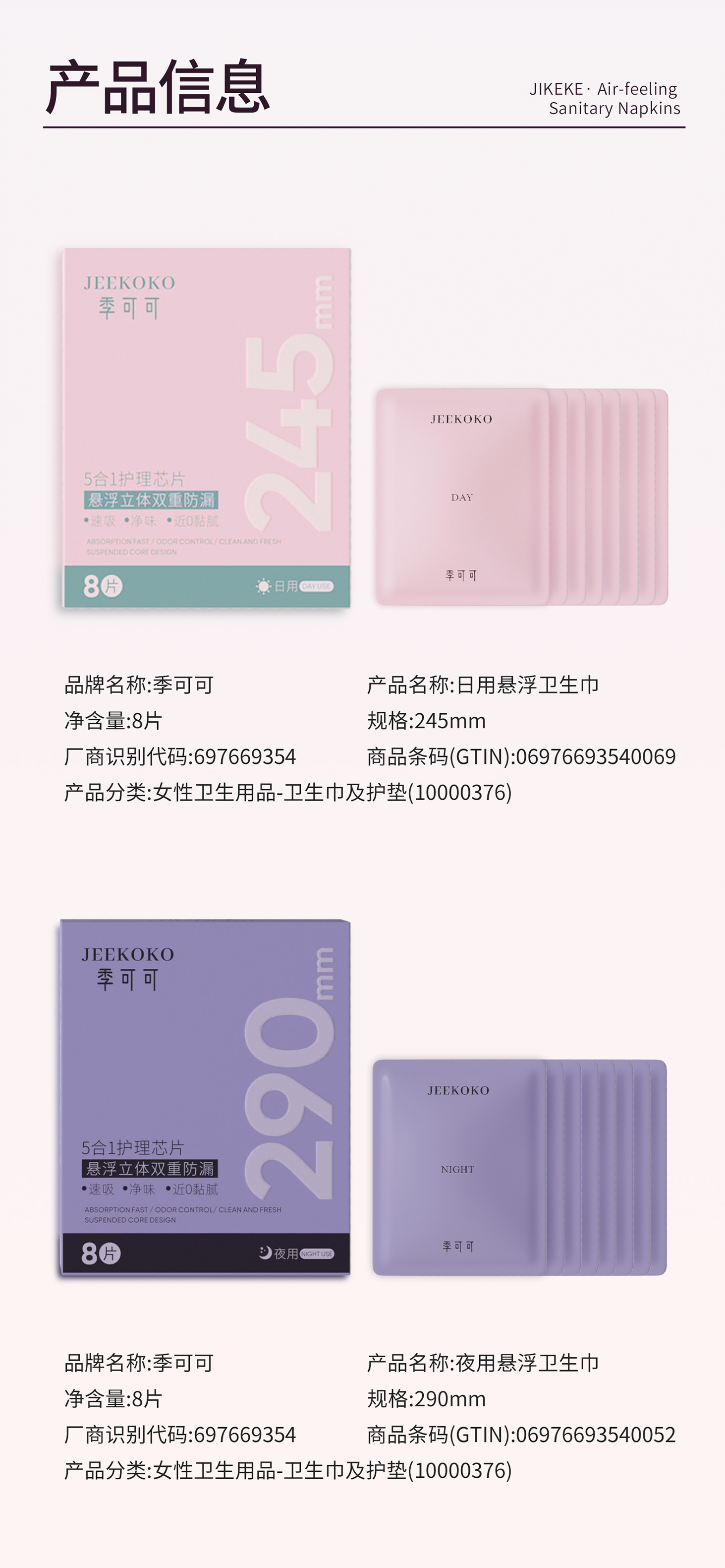 季可可卫生巾超薄悬浮芯体干爽透气日用夜用姨妈巾绵柔防漏组合装