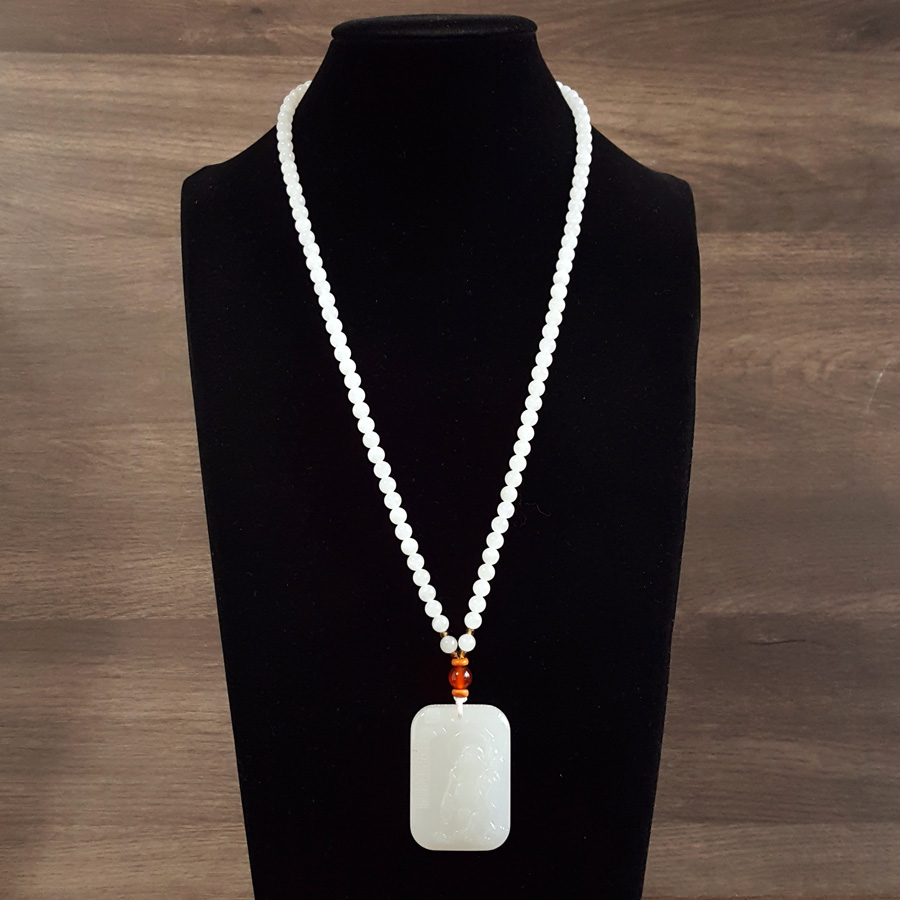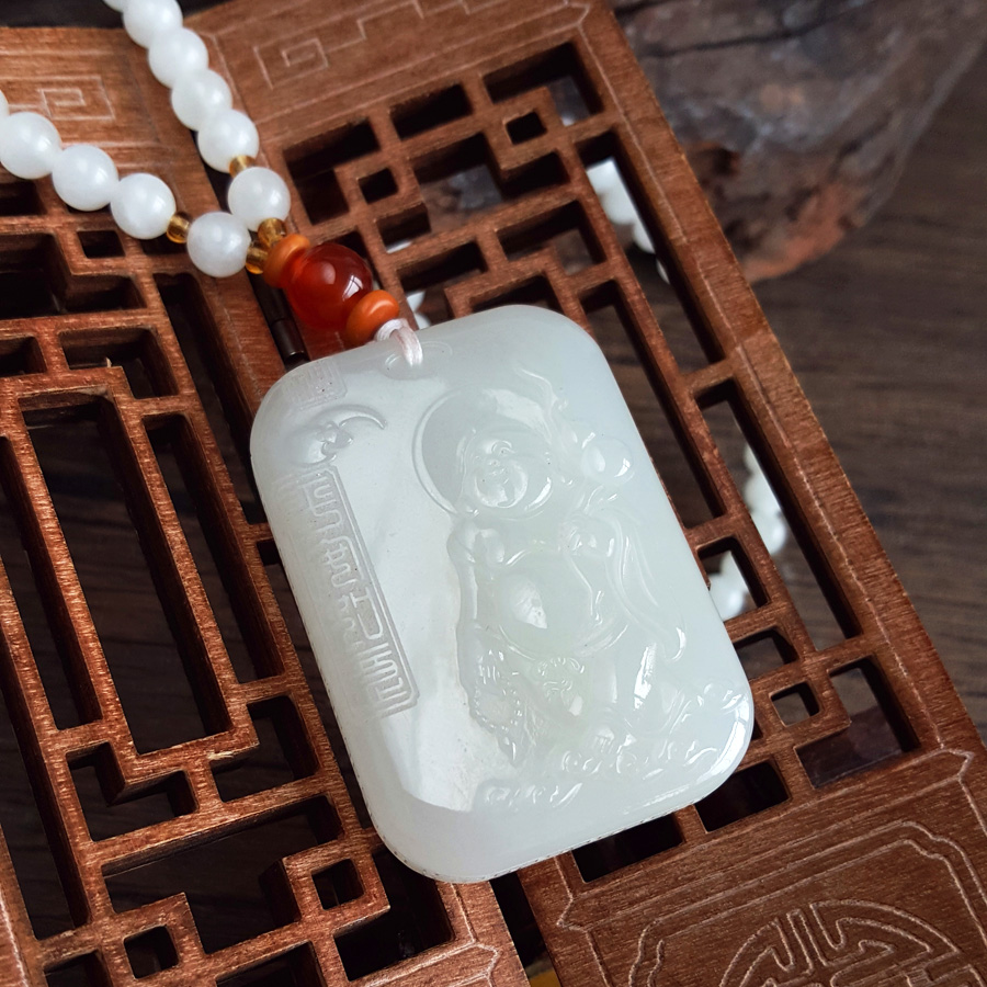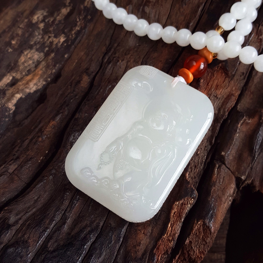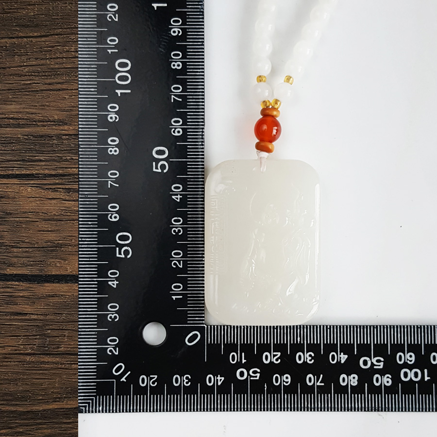 名称 | 天然青海料细腻一级白雕佛公平安无事牌和田玉珠串项链 |