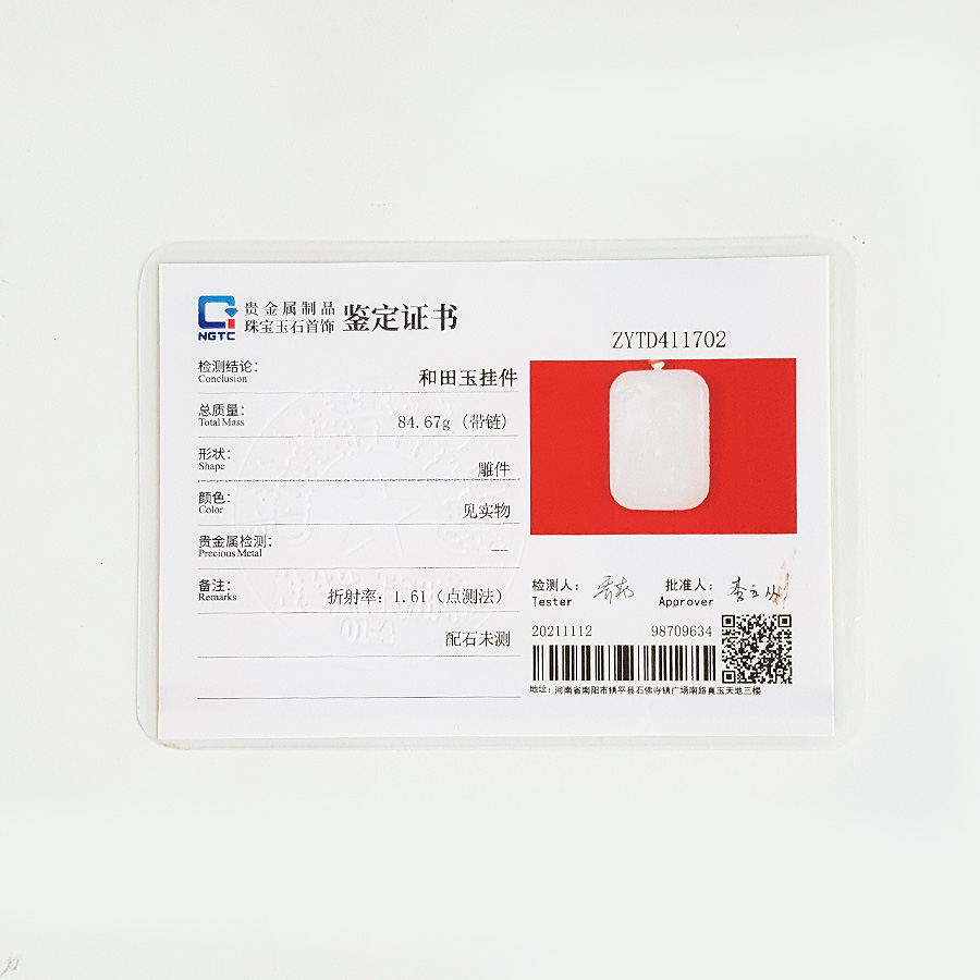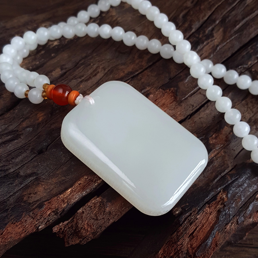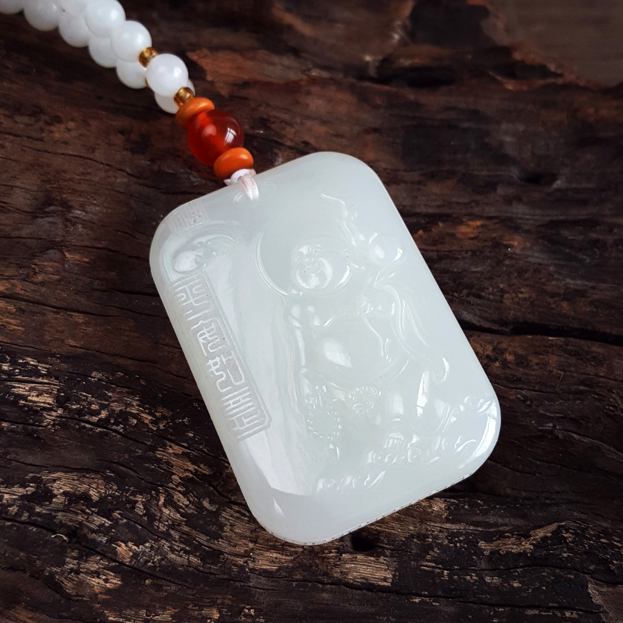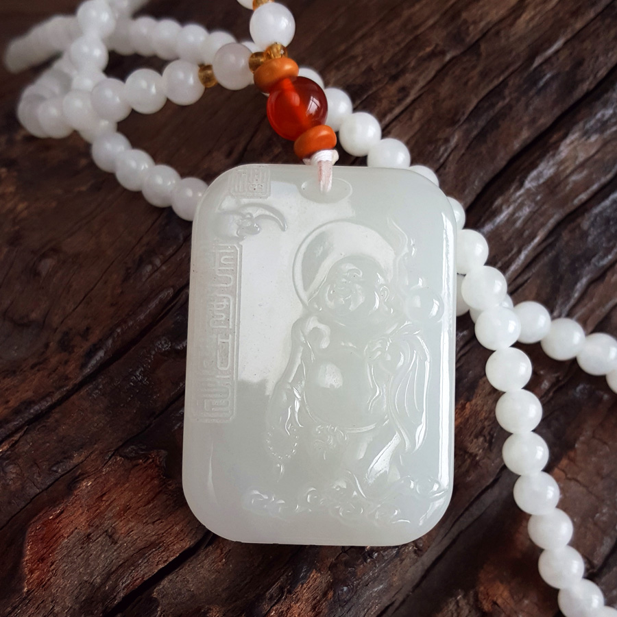 名称 | 天然青海料细腻一级白雕佛公平安无事牌和田玉珠串项链 |