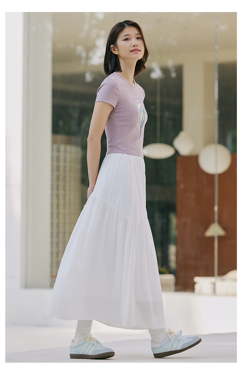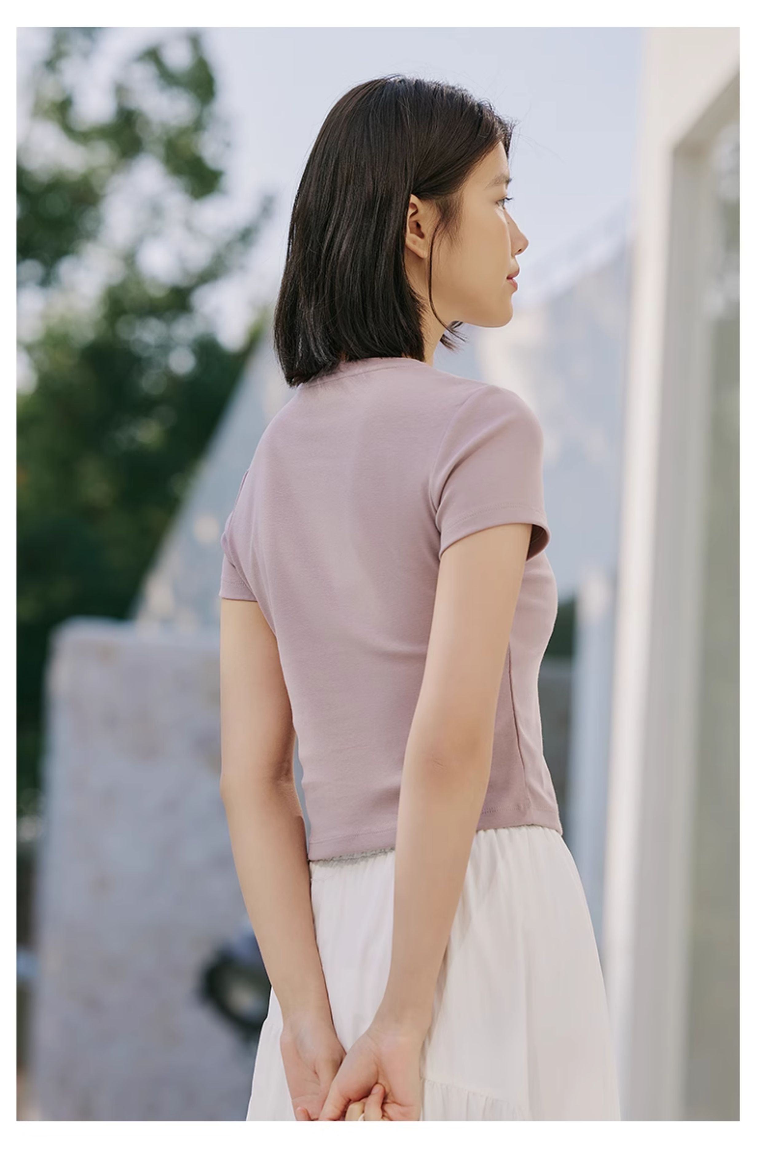 【家居】女装爽滑轻薄船领弧形下摆T恤 1N2427105