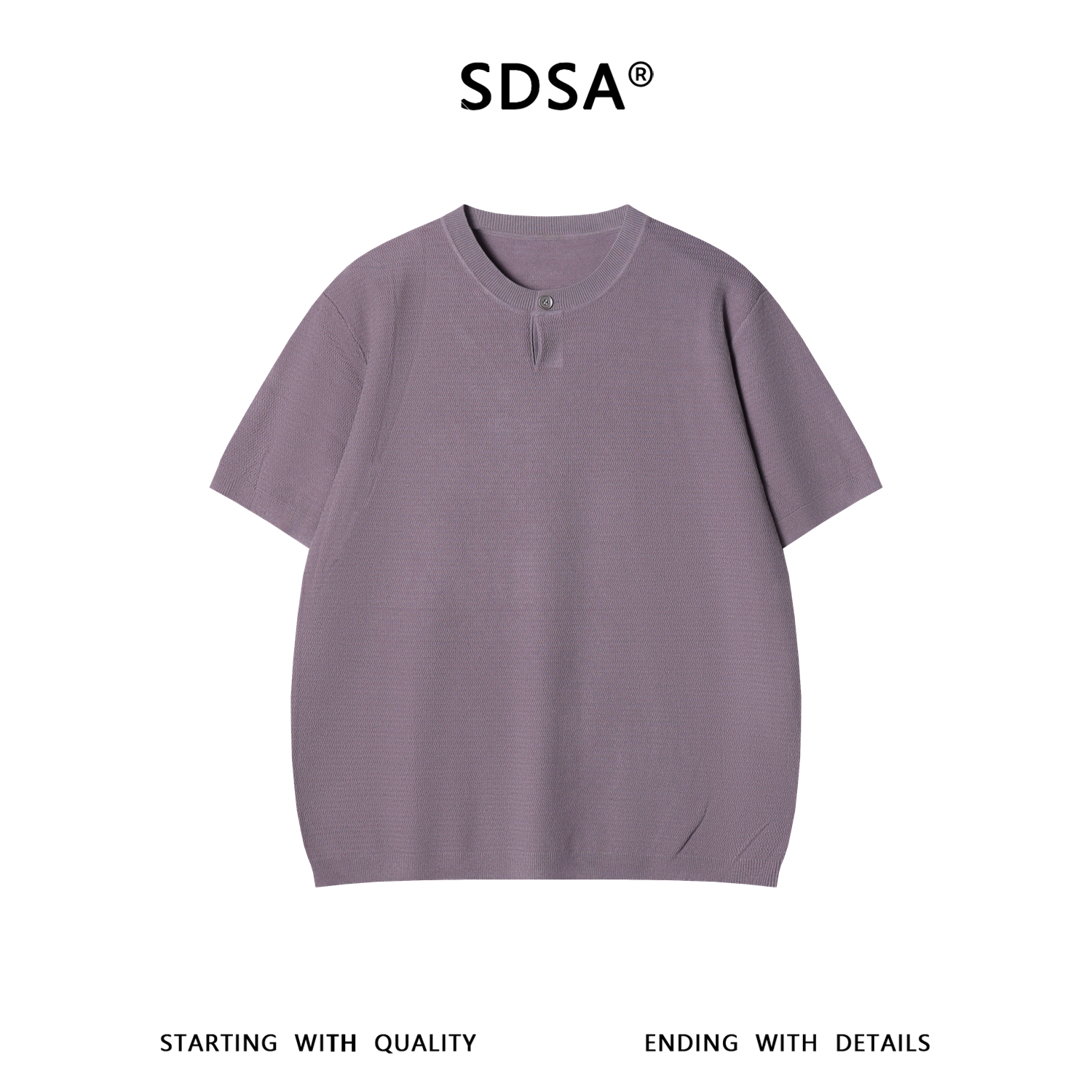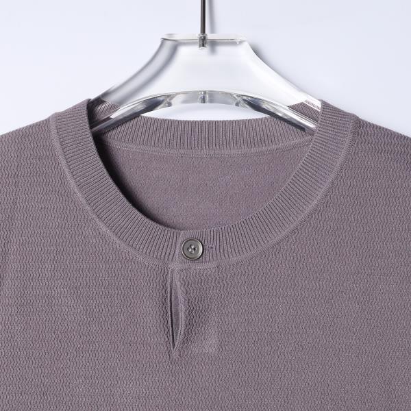 SDSA男装2026新款高贵轻奢美式简约波浪暗纹单扣针织短袖T恤百搭