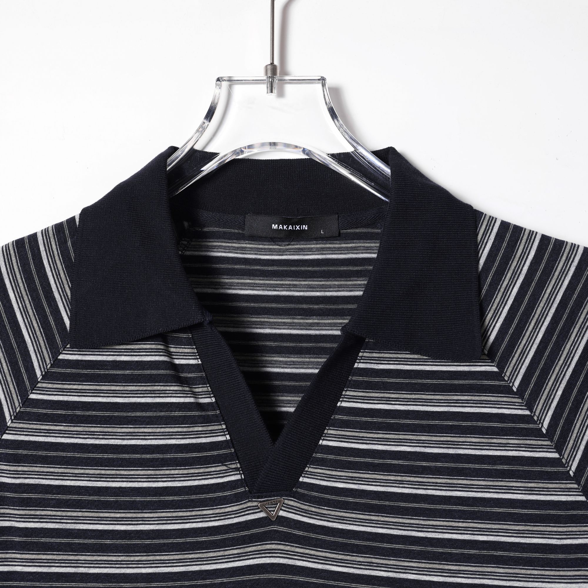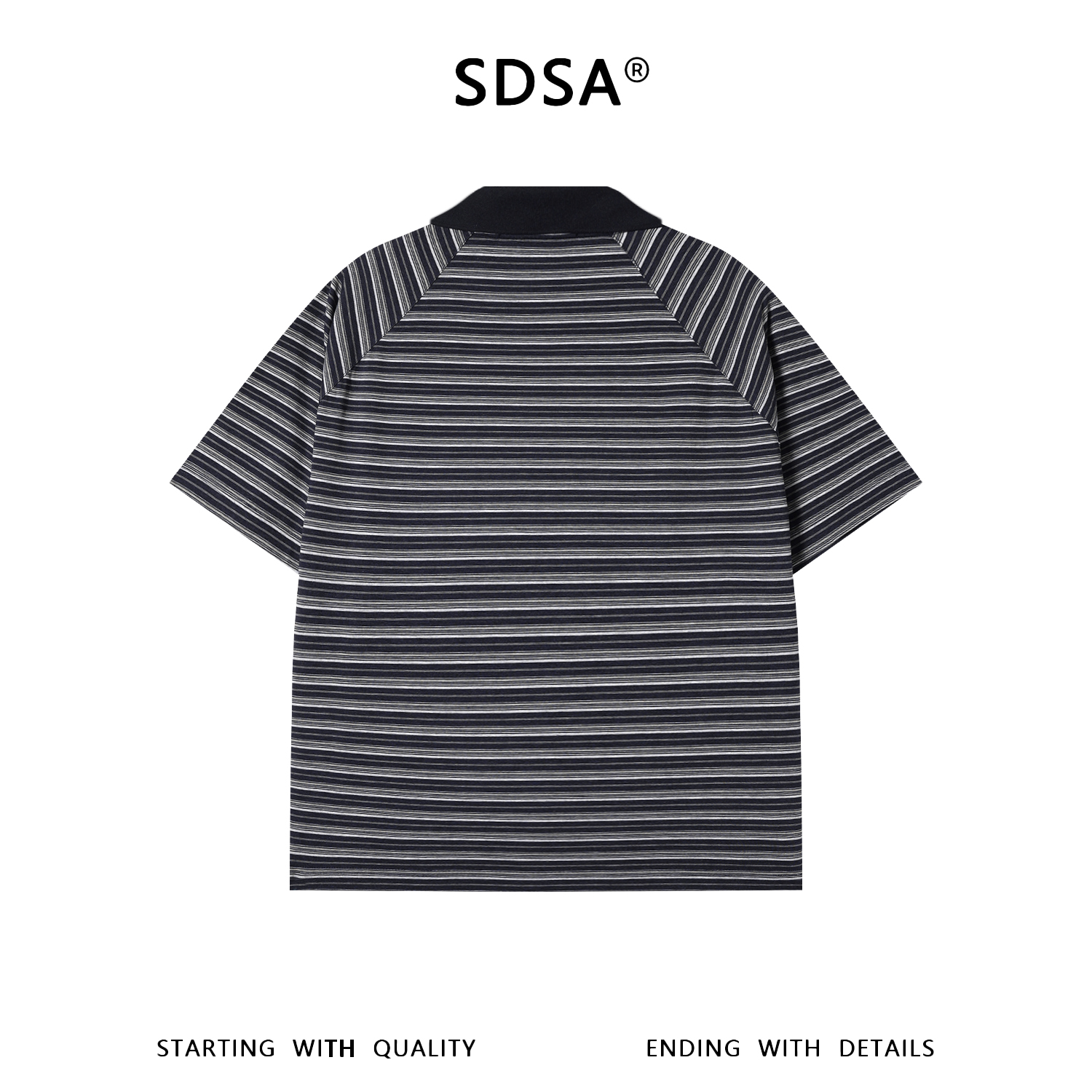 SDSA男装2026新款高贵轻奢潮牌撞色条纹小V翻领短袖T恤百搭时尚