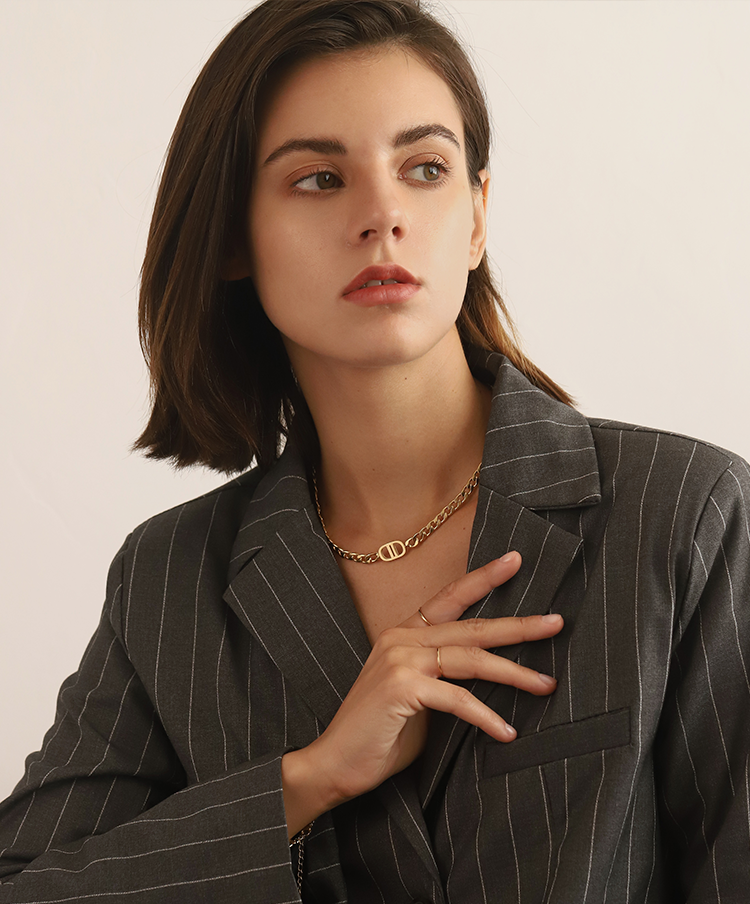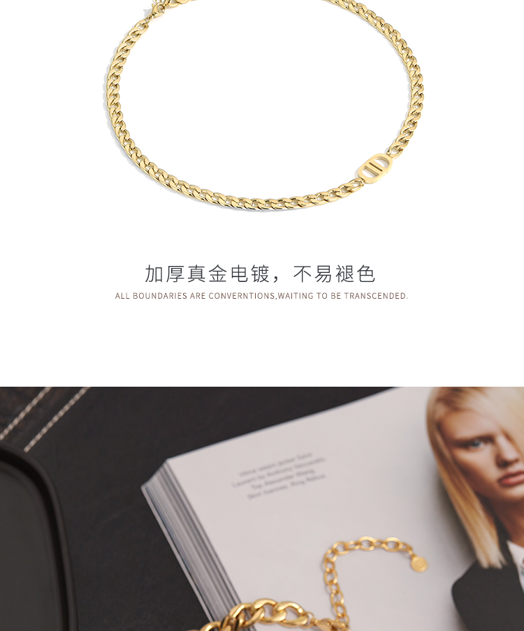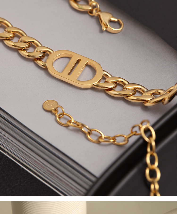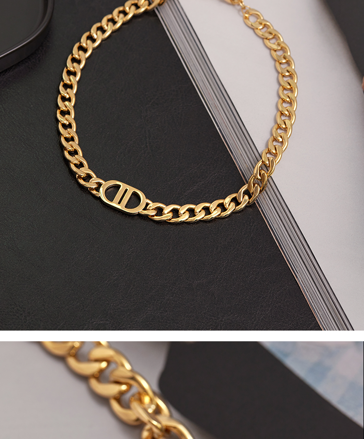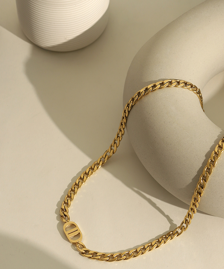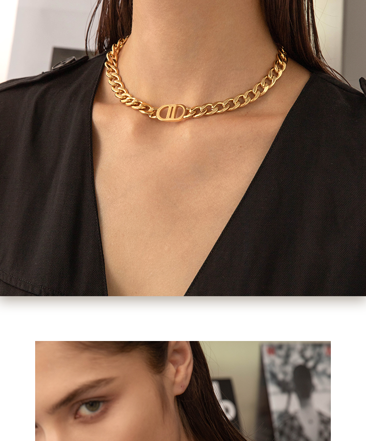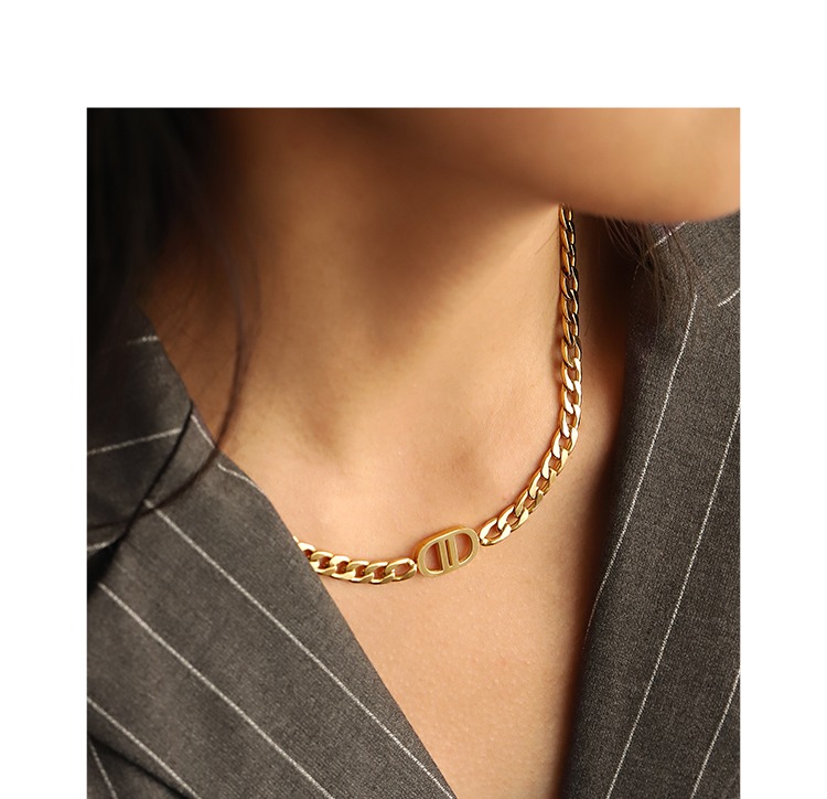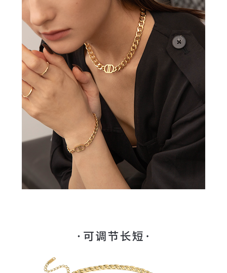 Oflye潮流饰品 古巴个性项链女粗链子金色复古钛钢锁骨链金属感欧美嘻哈潮人饰品