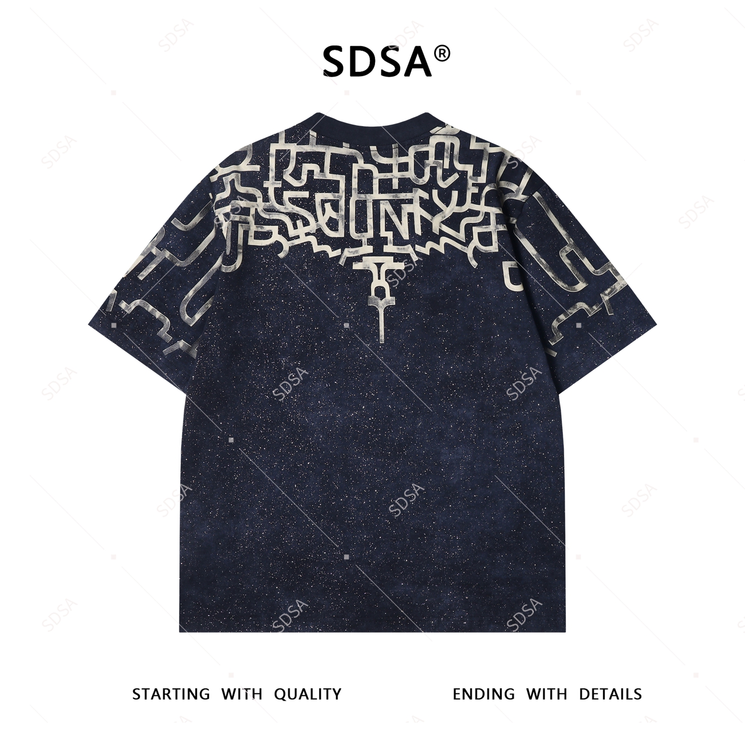T3847夏季高级感新款男士潮牌撞色字母印花短袖T恤满天星设计时尚上衣