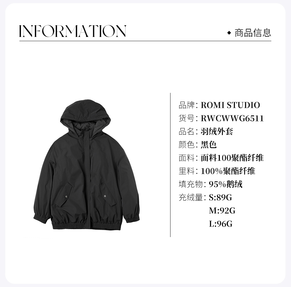 ROMI STUDIO“冬日轻盈”95白鹅绒宽松廓形三防羽绒外套RWCWWG6511