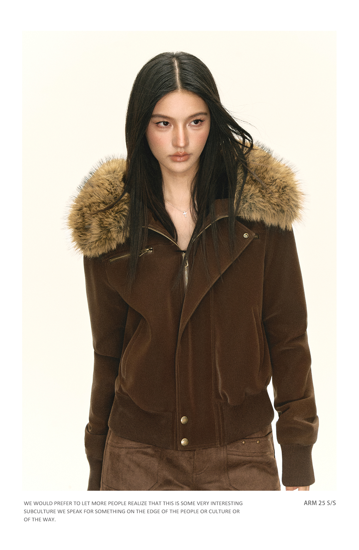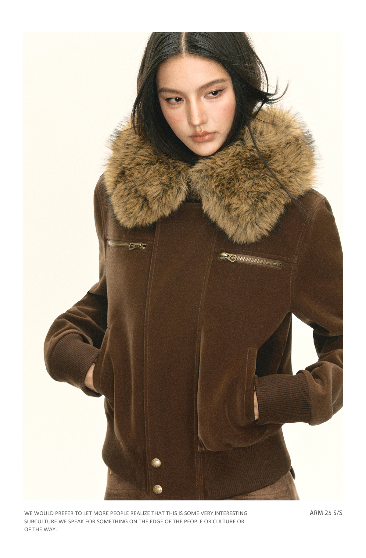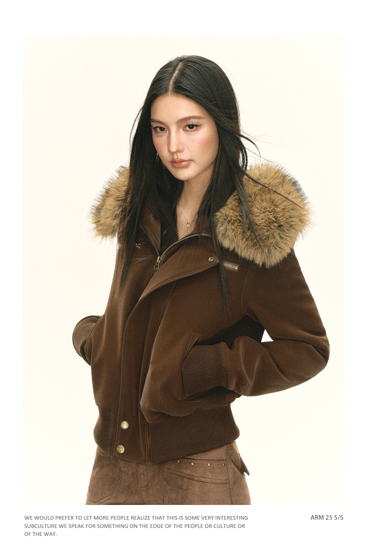 Ariseism 美式复古可脱卸毛领PU皮短外套女秋季新款外套