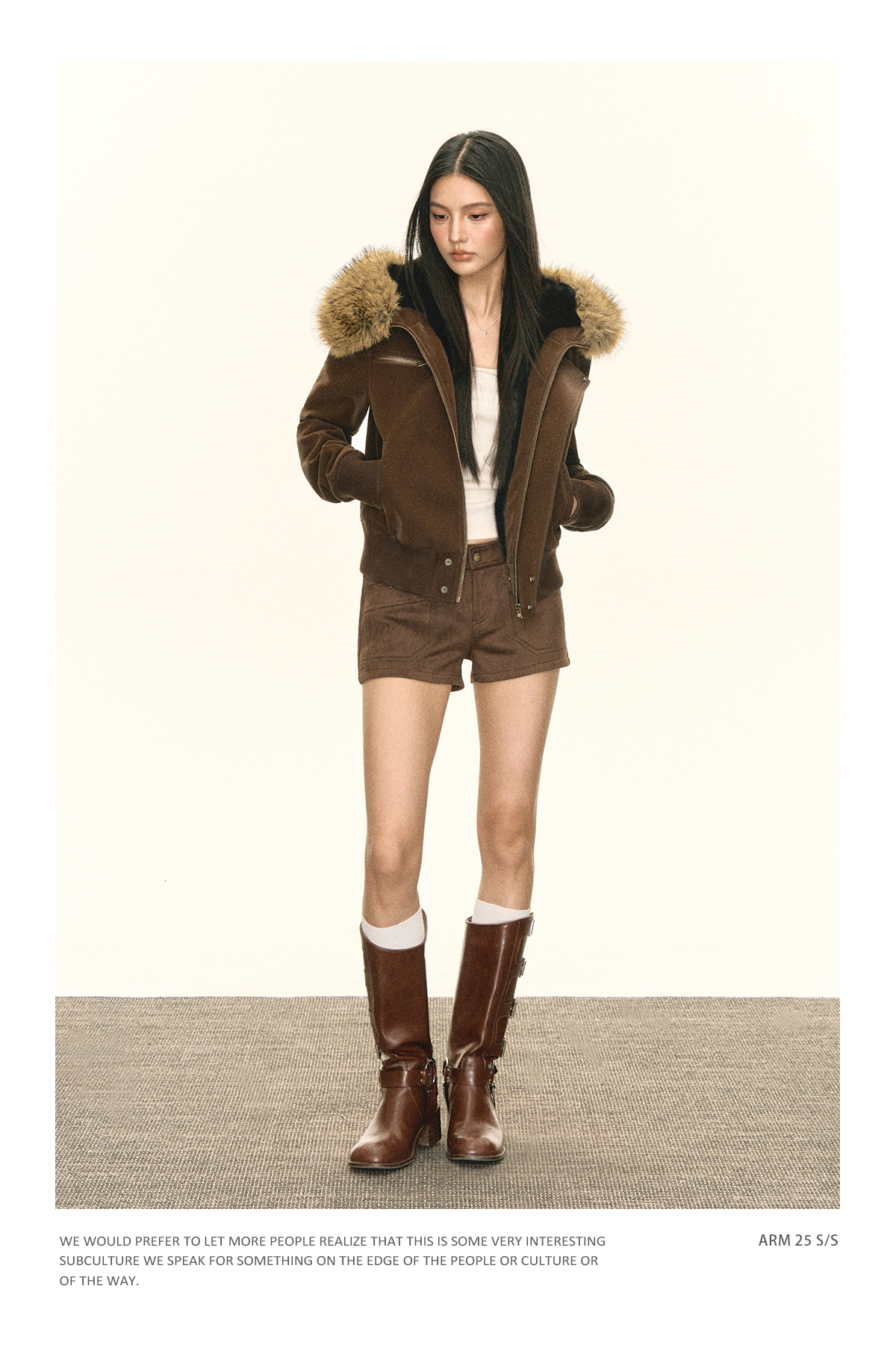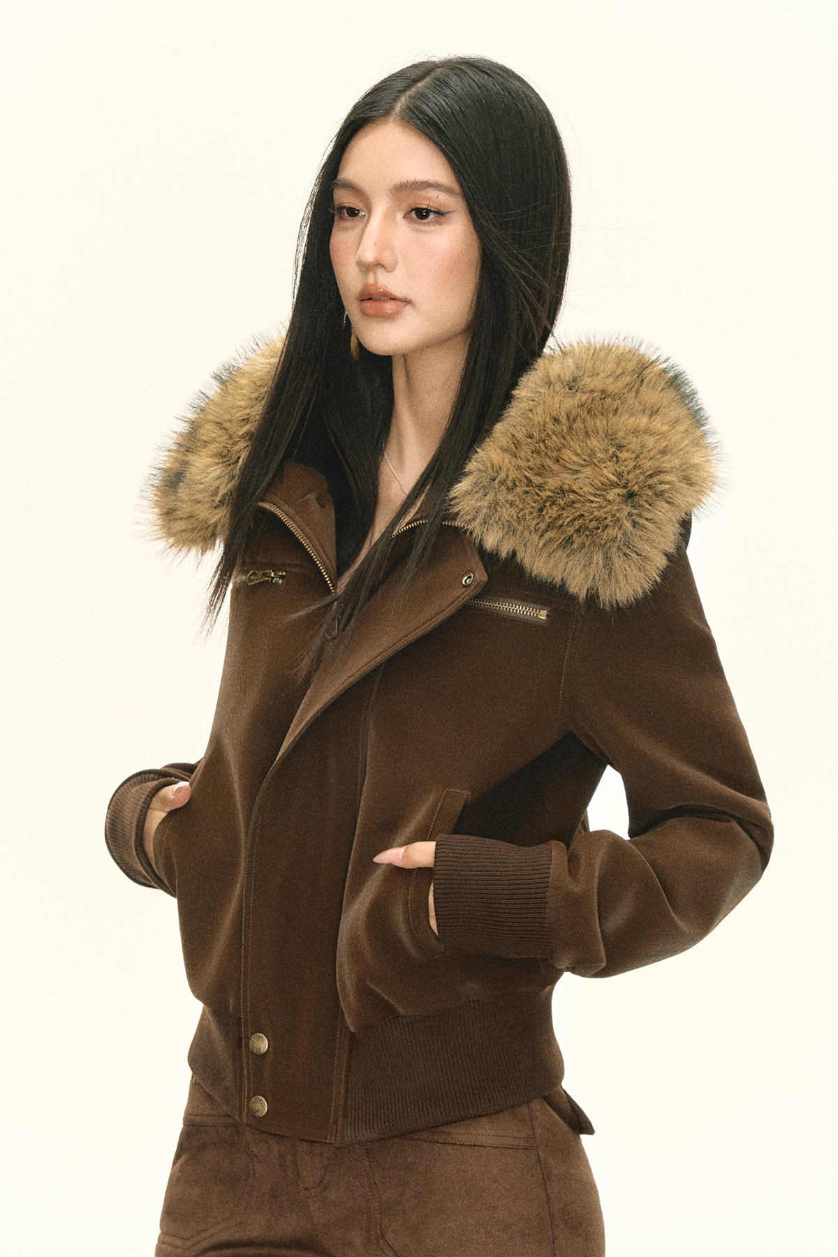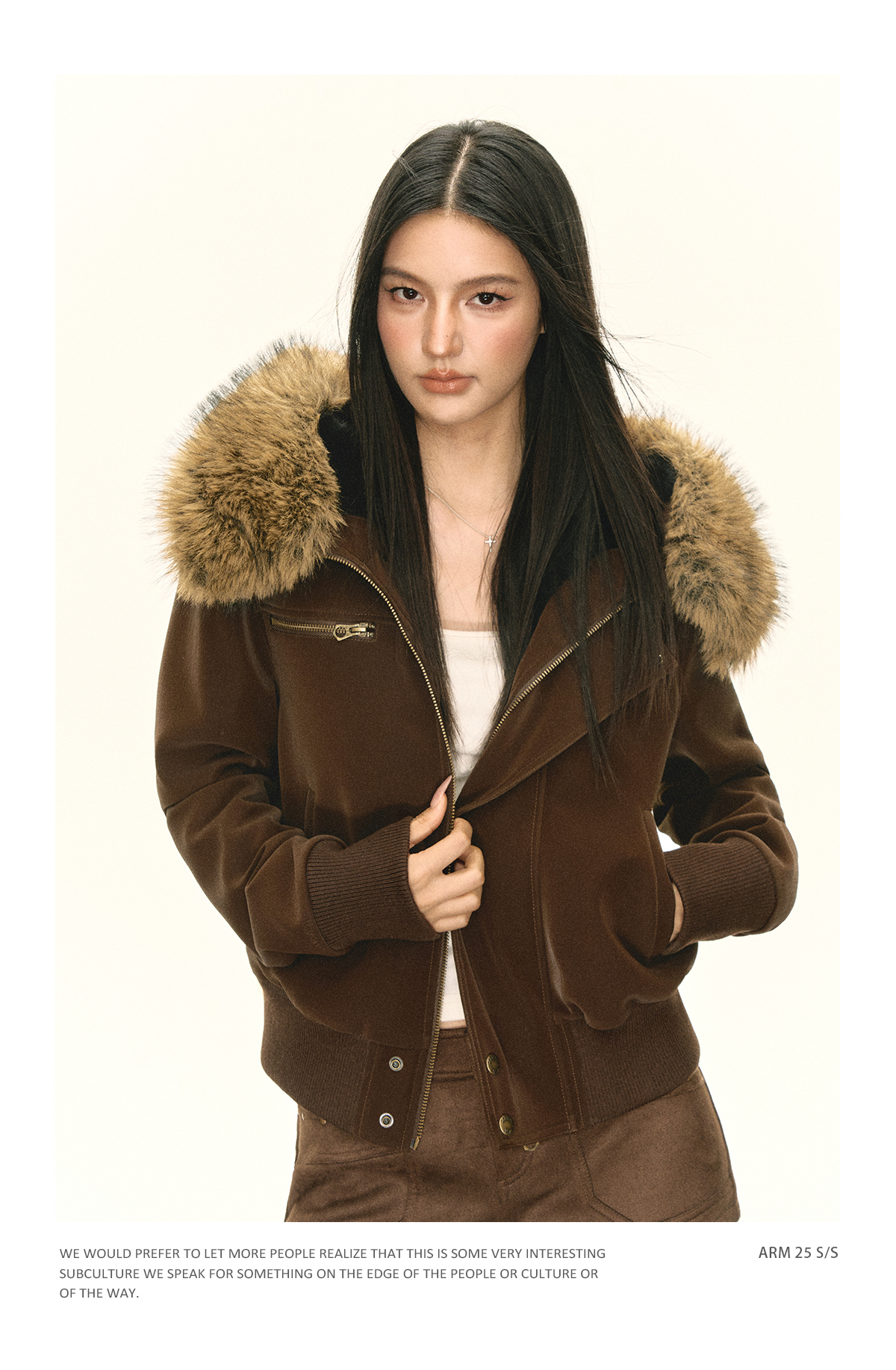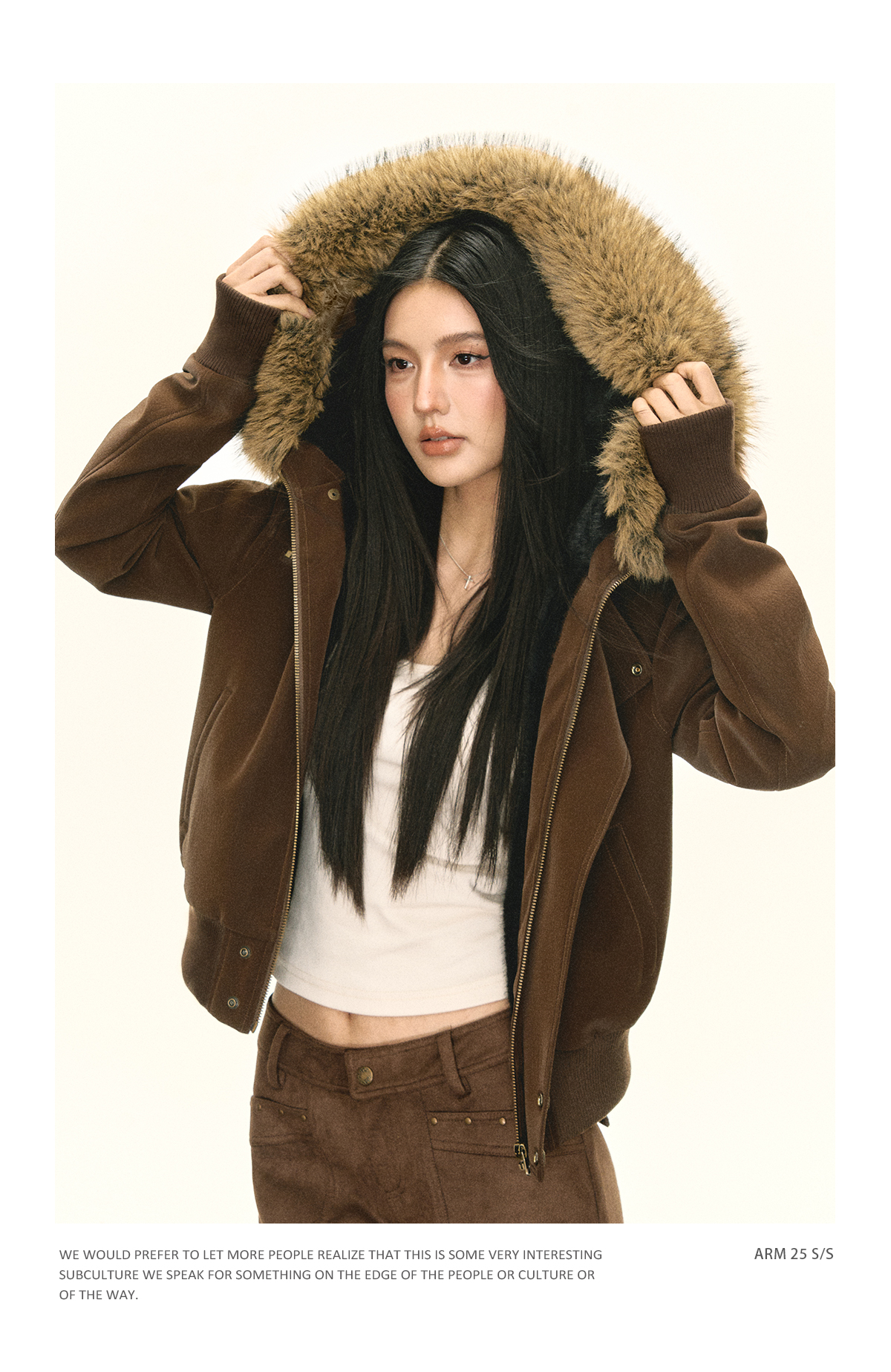 Ariseism 美式复古可脱卸毛领PU皮短外套女秋季新款外套