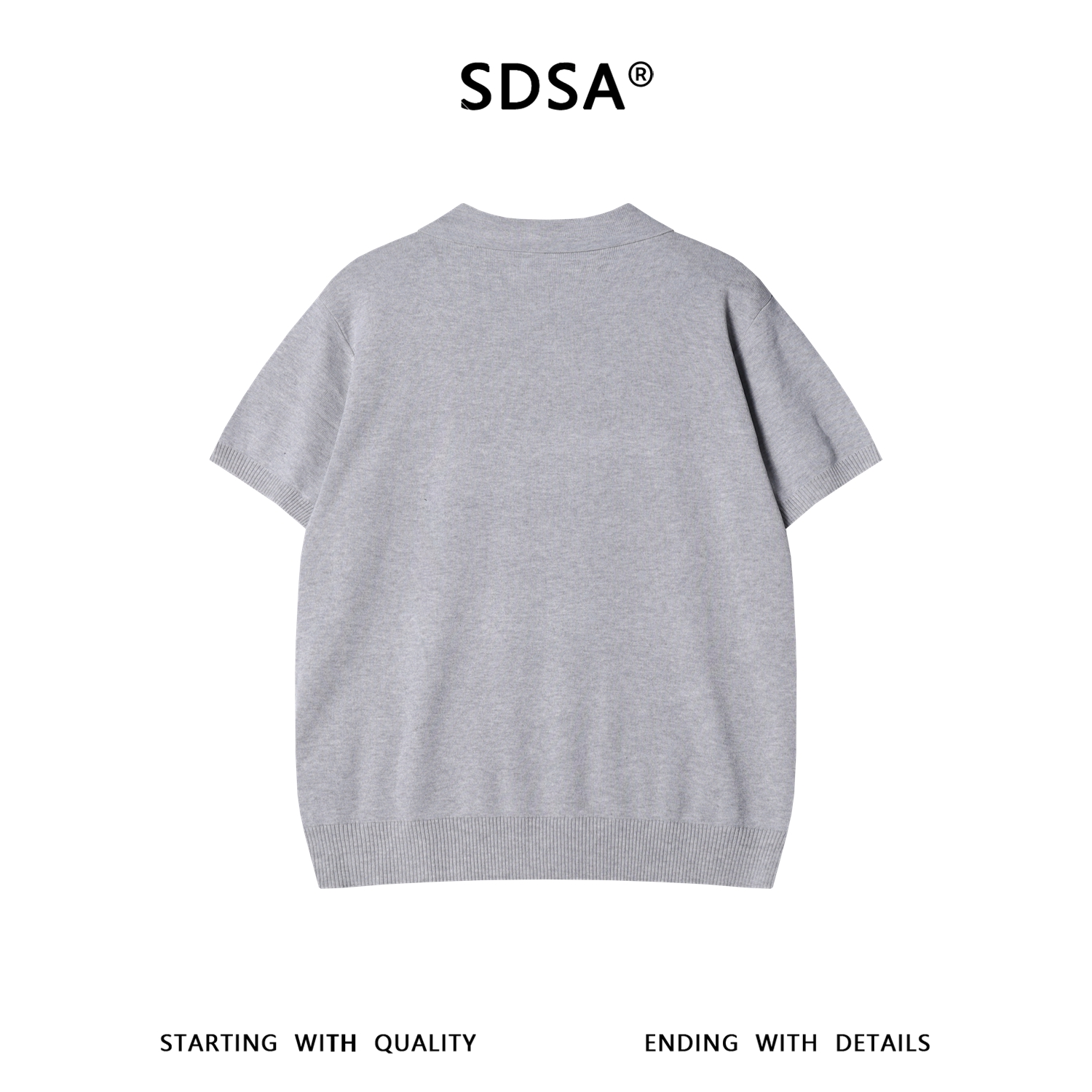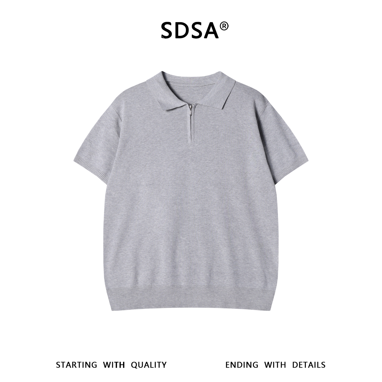 SDSA男装2026新款高贵轻奢老钱风简约纯色半拉链翻领短袖T恤百搭