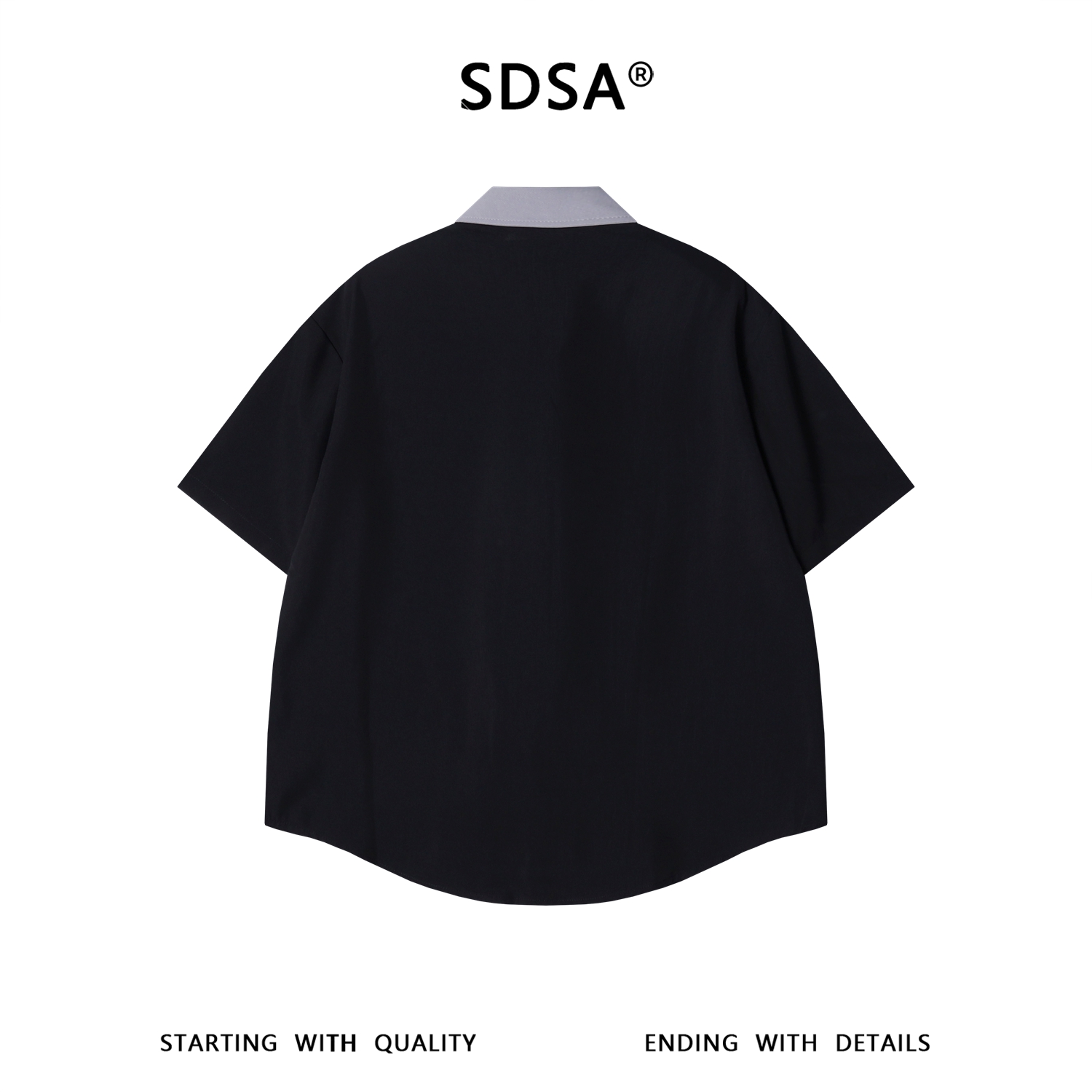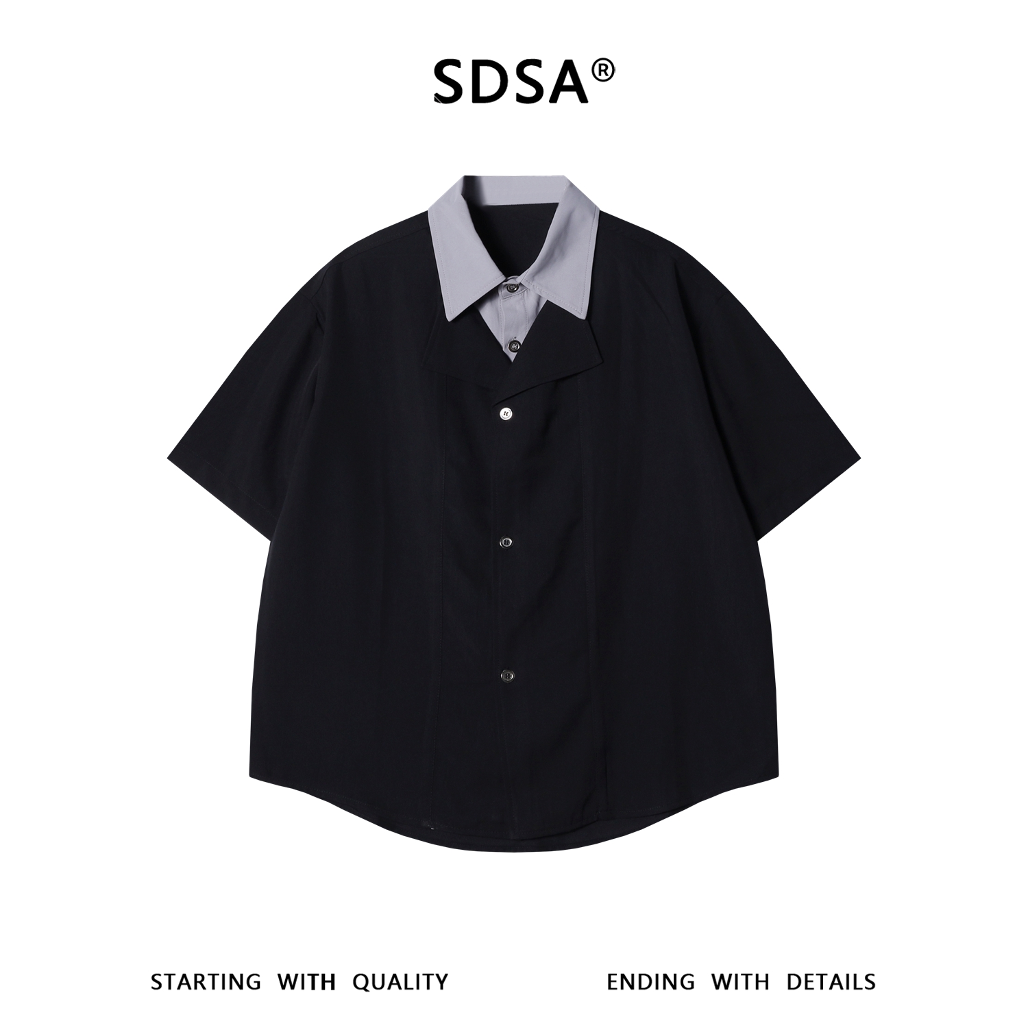SDSA男装2026新款高贵轻奢潮牌拼接撞色假两件短袖衬衫休闲百搭