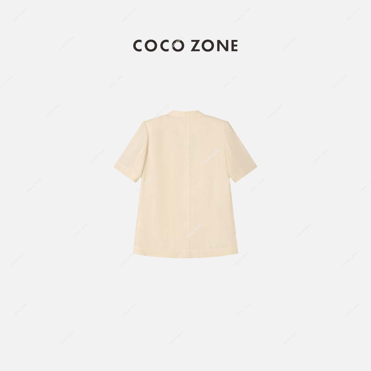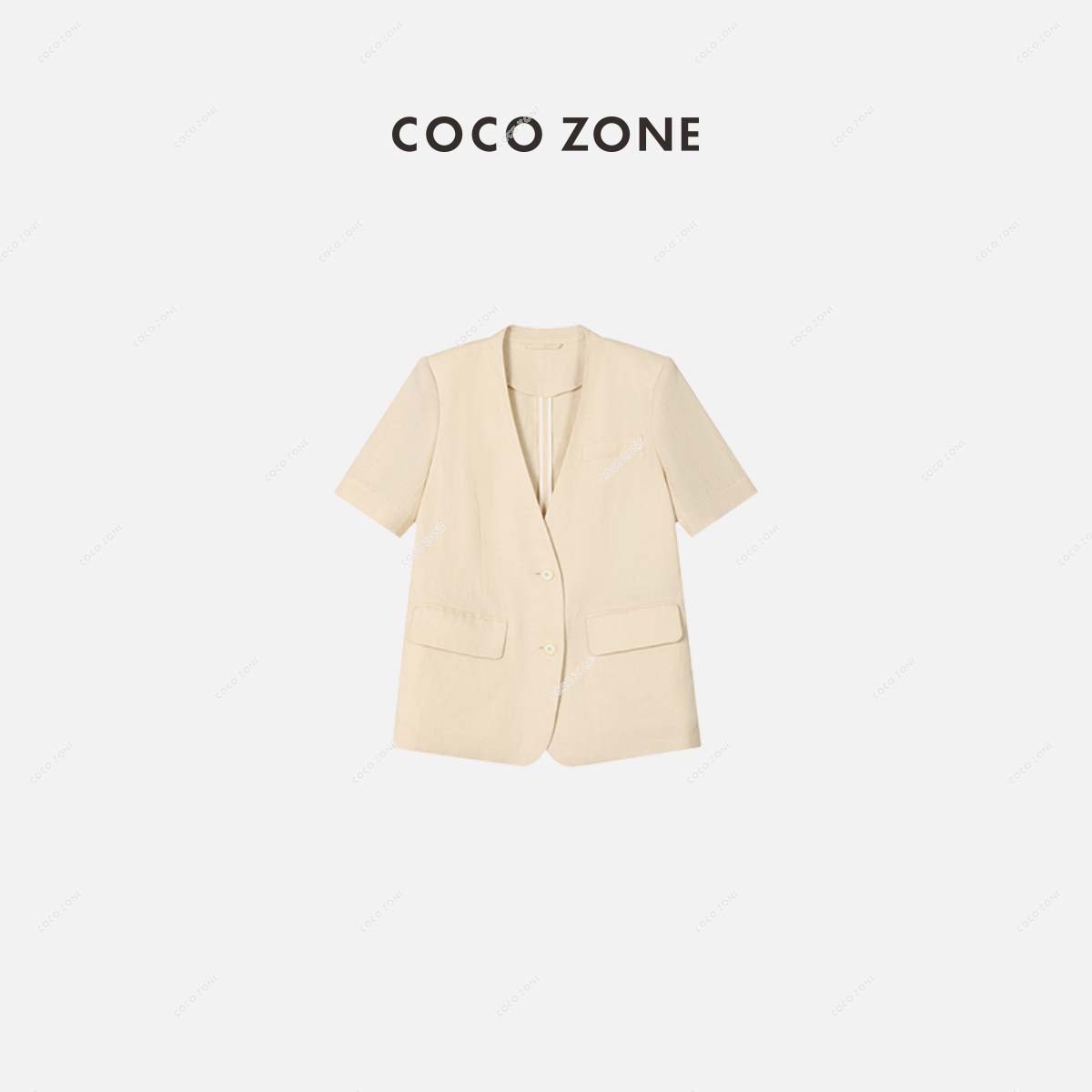 COCO ZONE 气质短袖西装外套V领设计修饰显瘦上衣 23C18743