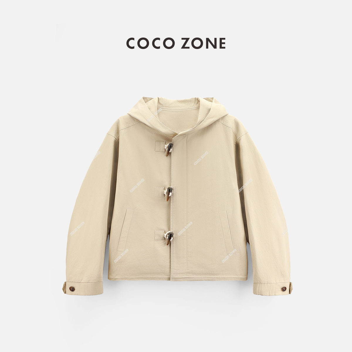 COCO ZONE 2024美式休闲风连帽外套复古牛角扣百搭上衣24C10295