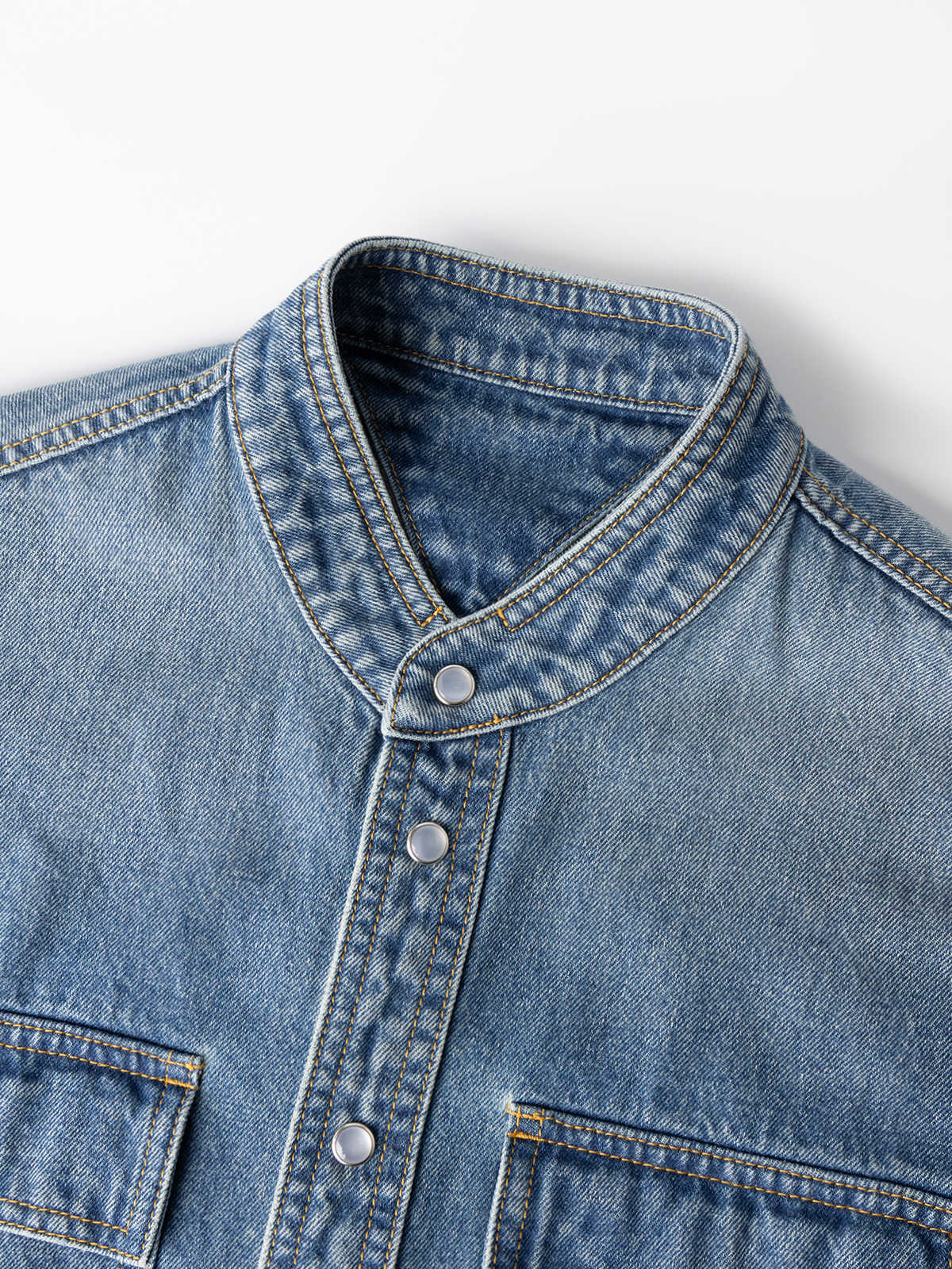 COCO ZONE 100棉复古立领牛仔外套单排扣上衣CC2C1415