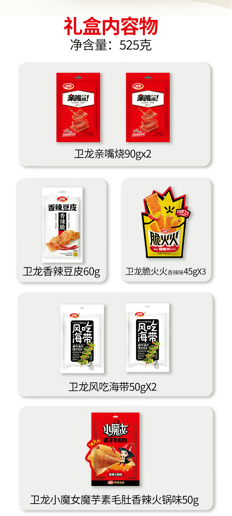 【鼎】卫龙鸿运礼休闲辣条零食礼盒525g